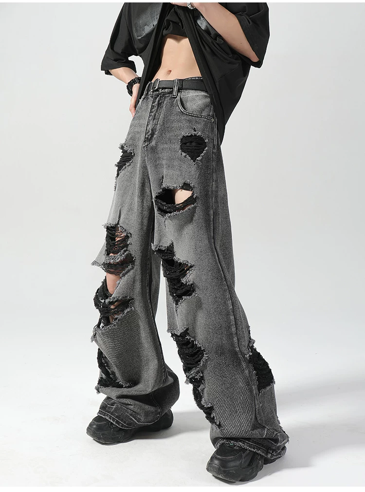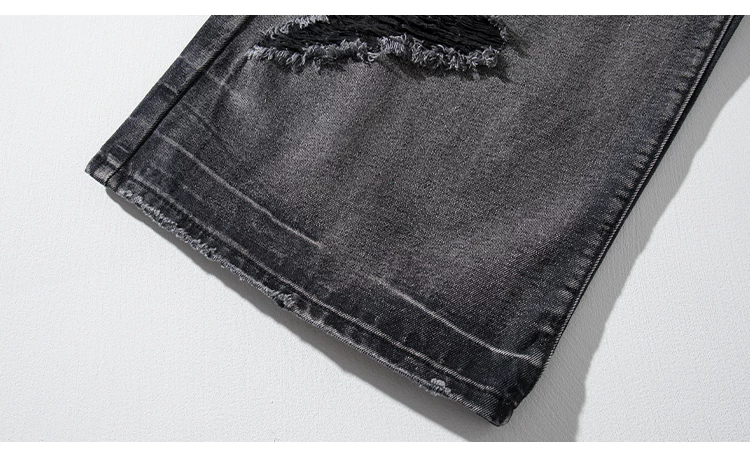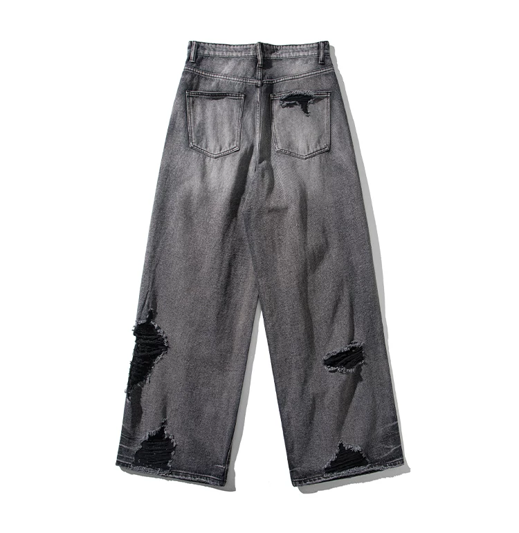 - Quần jeans rách kiểu Mỹ dành cho nam, quần ống rộng thoải mái mùa hè, thiết kế thời thượng phong cách bố.