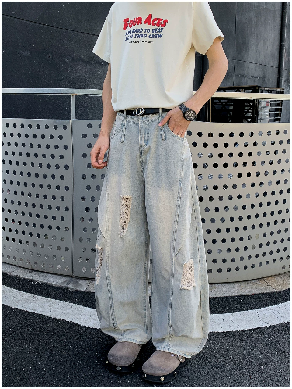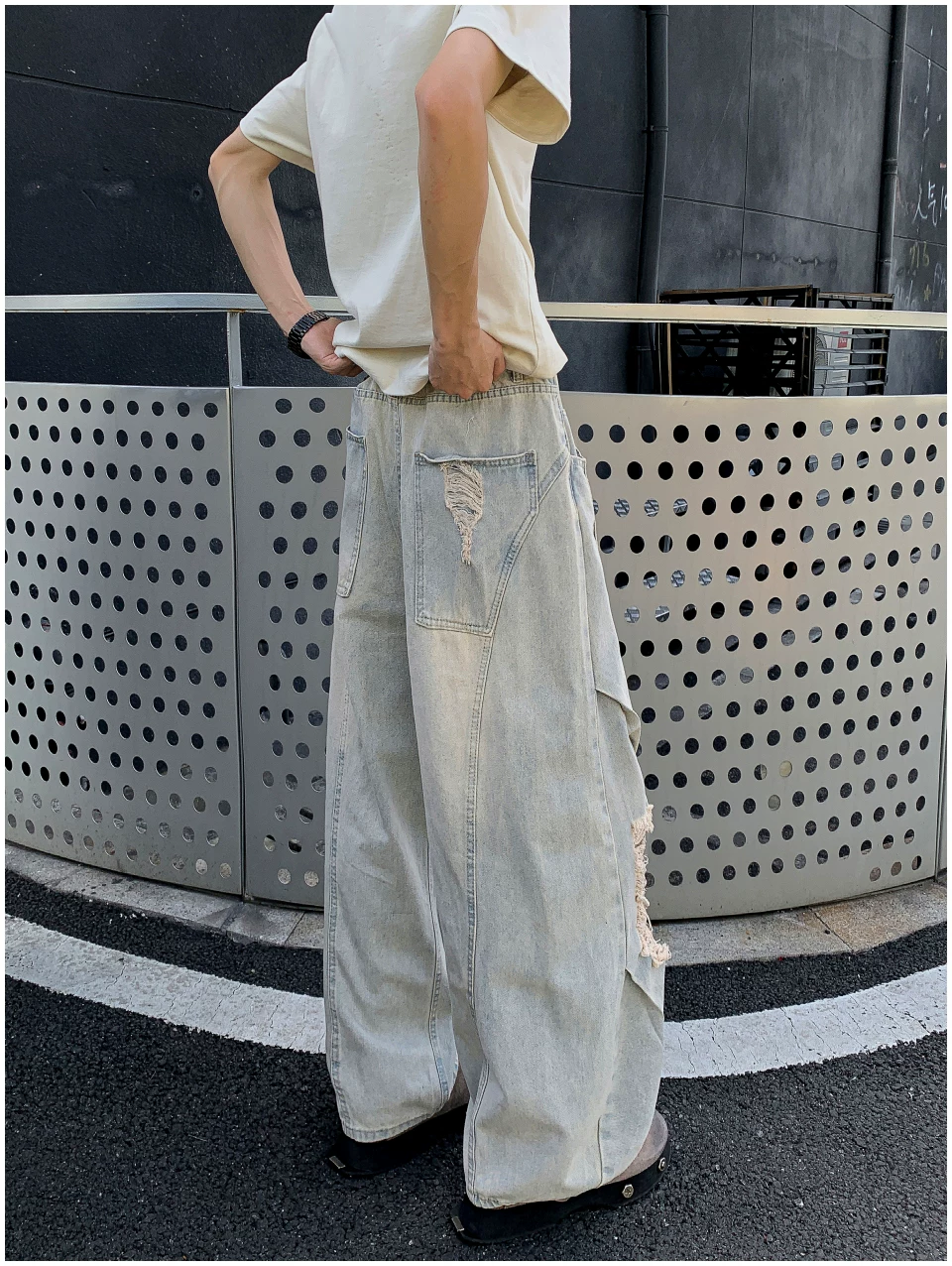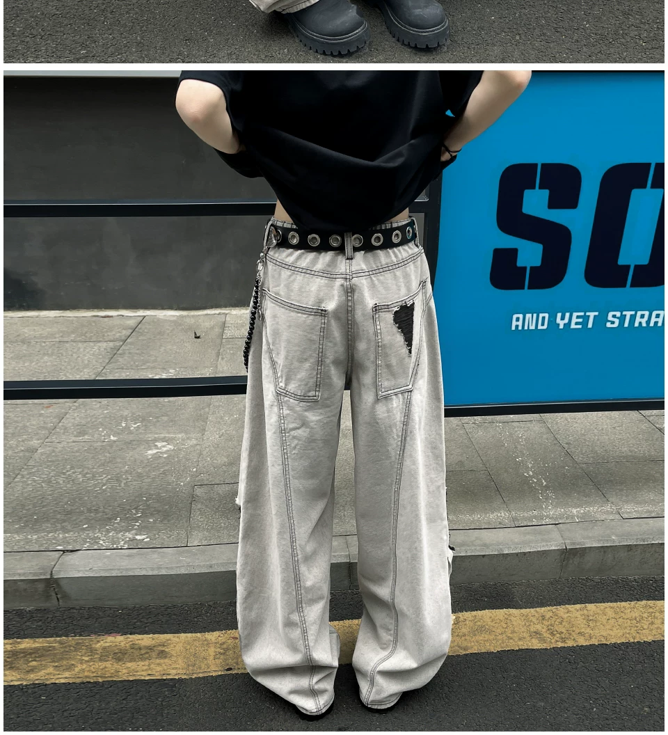 Quần jeans rách kiểu Mỹ dành cho nam, thương hiệu thời thượng, quần dài ống đứng, thiết kế cá tính, quần ống rộng với đường cắt độc đáo.