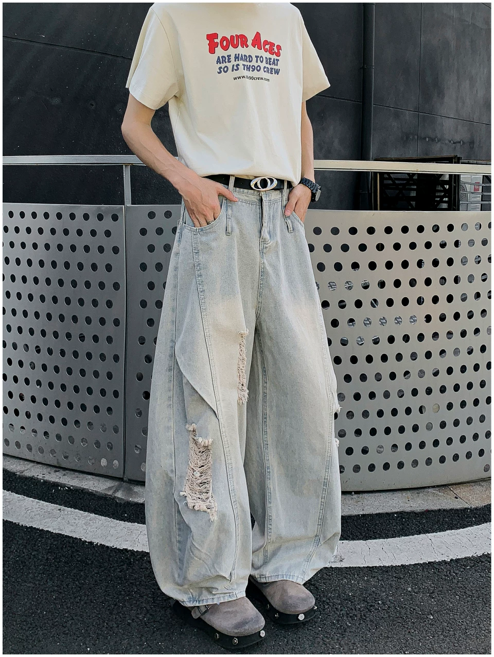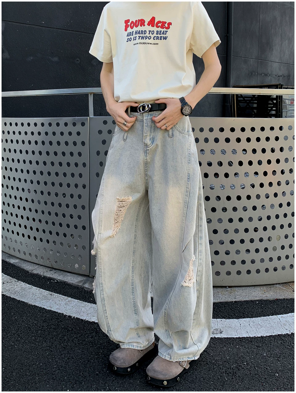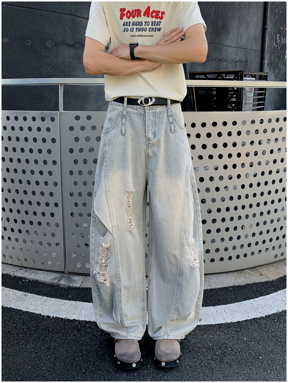 Quần jeans rách kiểu Mỹ dành cho nam, thương hiệu thời thượng, quần dài ống đứng, thiết kế cá tính, quần ống rộng với đường cắt độc đáo.