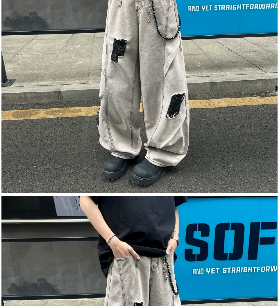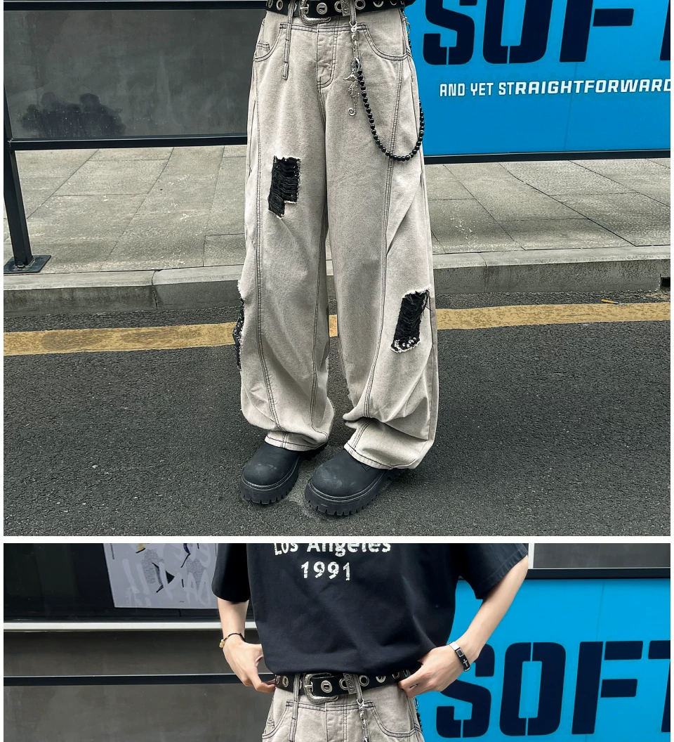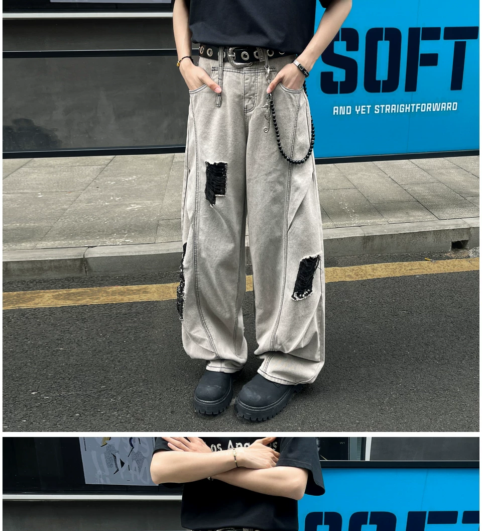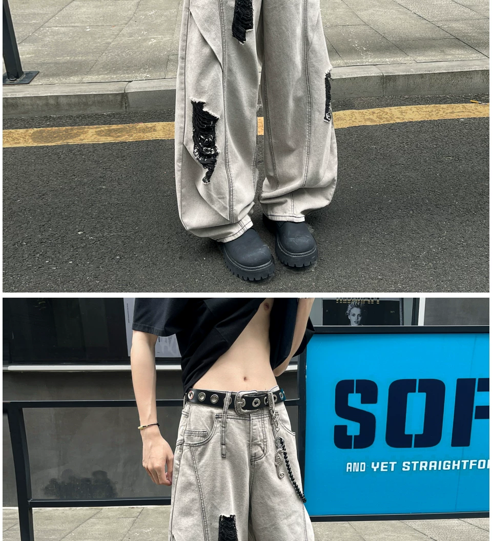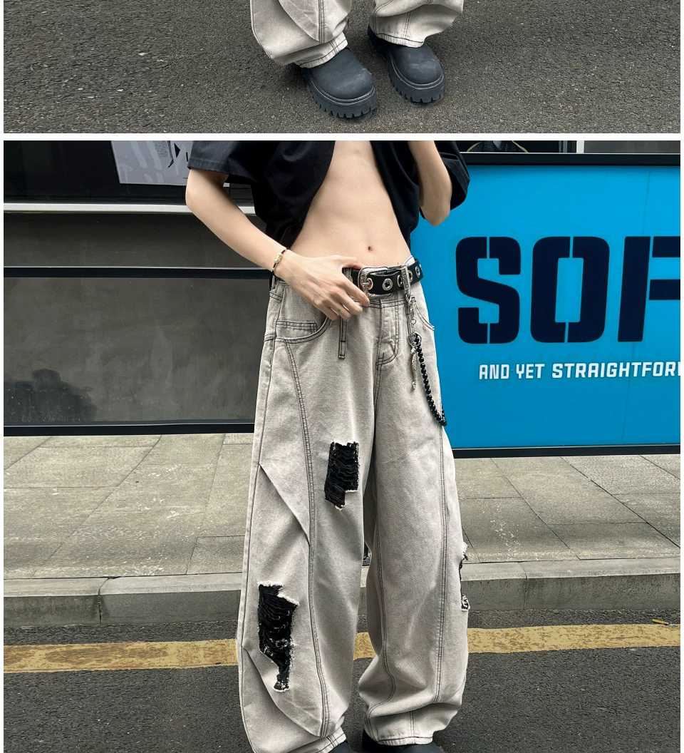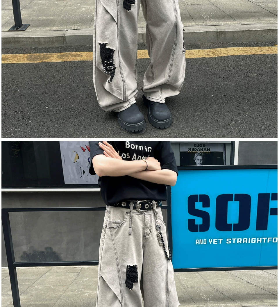 - Quần jeans rách kiểu Mỹ dành cho nam, thương hiệu thời thượng, quần dài ống đứng, thiết kế cá tính, quần ống rộng với đường cắt độc đáo.