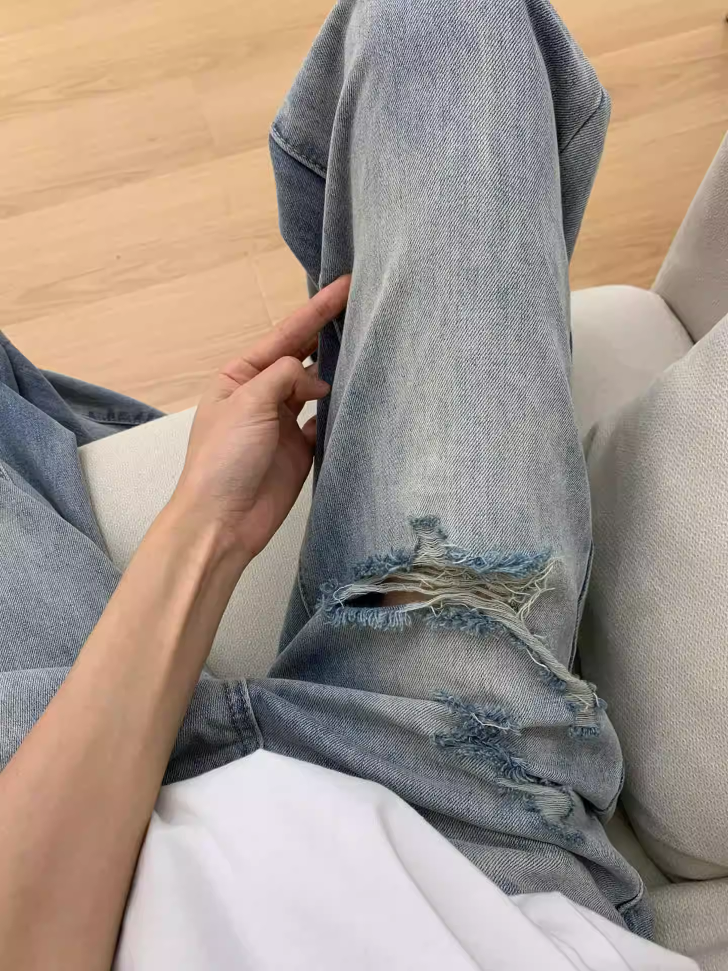 - Quần jeans rách nữ hè 2025 mỏng size lớn plus size lưng cao rộng rãi tôn dáng dáng thẳng ống rộng