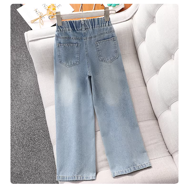 - Quần jeans thời trang cá tính cho bé gái xuân 2025, quần ống rộng xuông trẻ em mới, quần ống đứng xuông mùa xuân thu cho bé gái