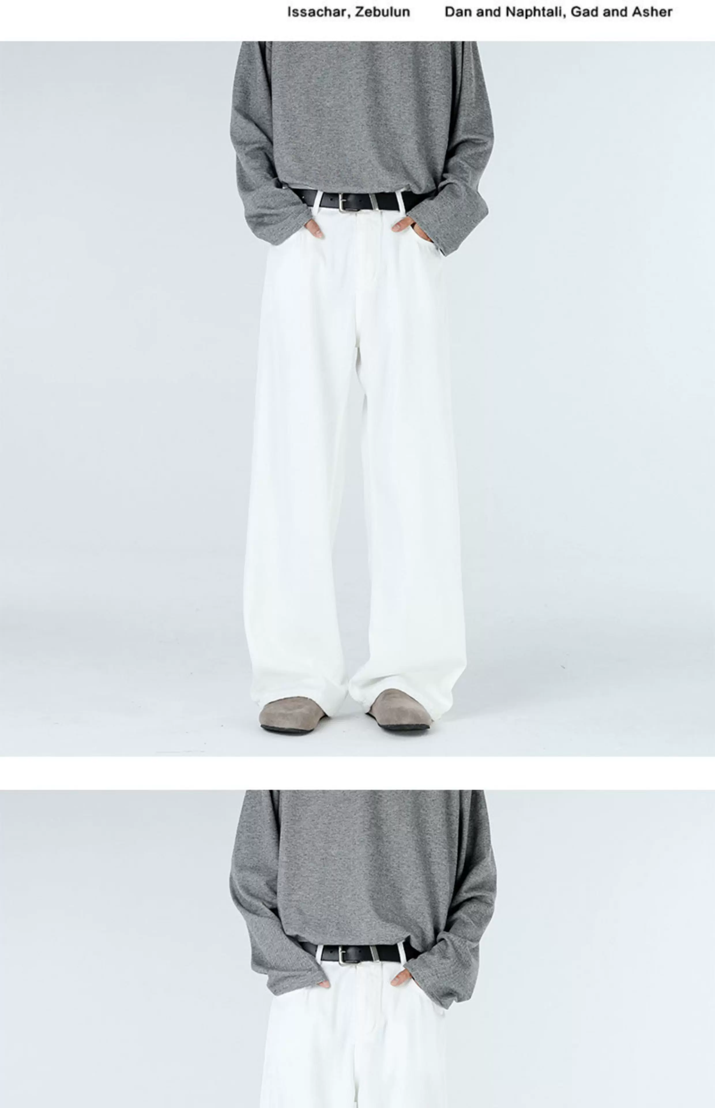 - Quần jeans trắng thời thượng dành cho nam, mẫu mới hè 2025, quần ống đứng mỏng, quần ống rộng dáng suông dài chạm đất phong cách Mỹ.