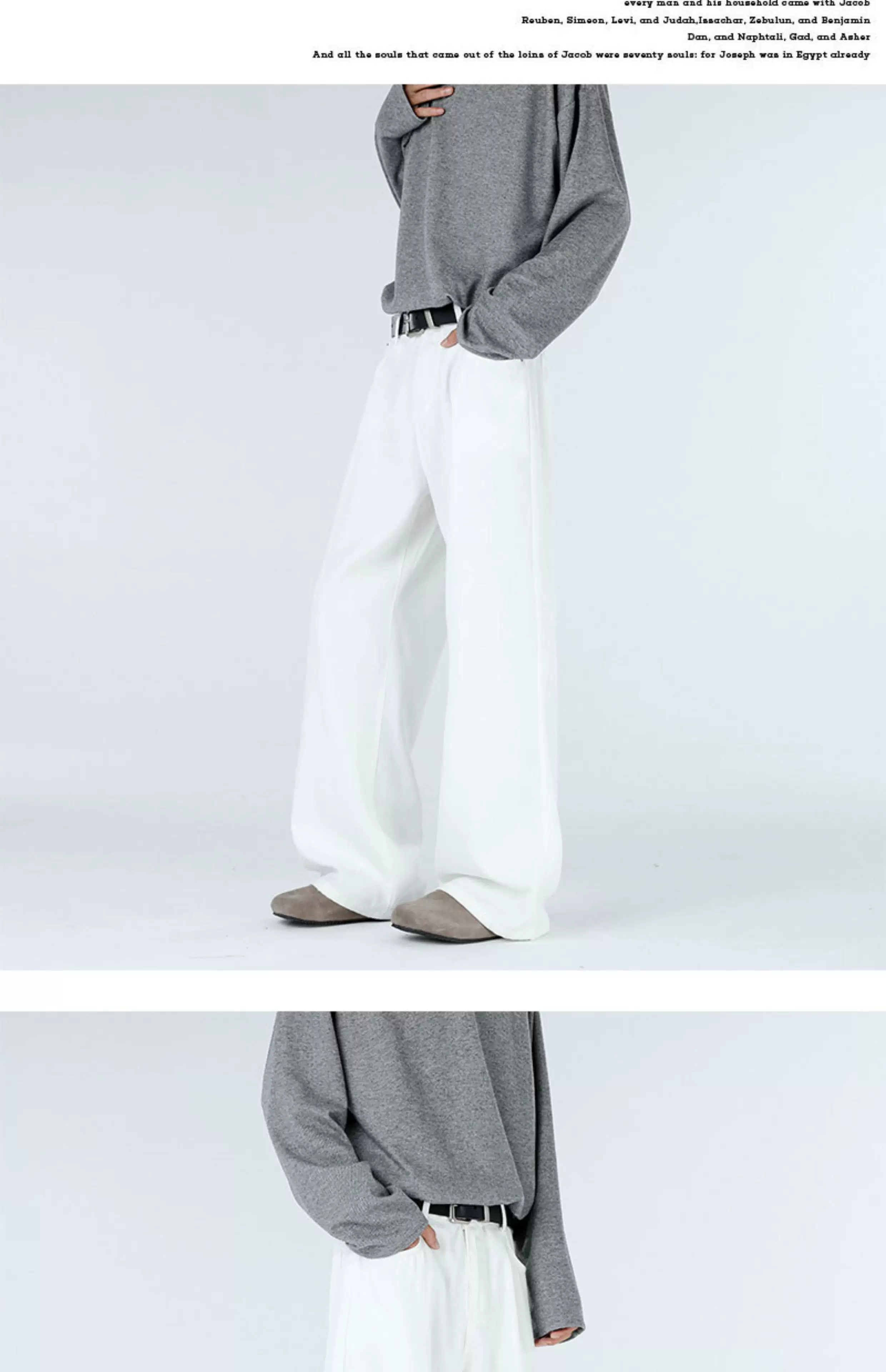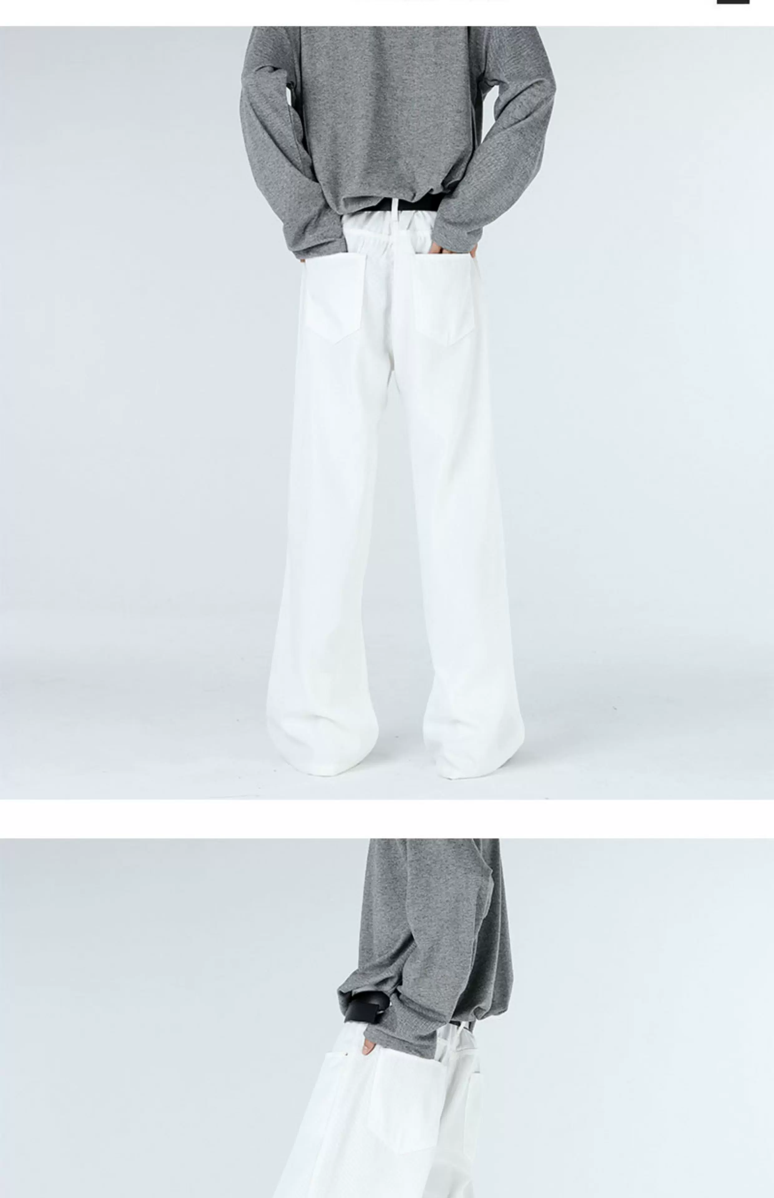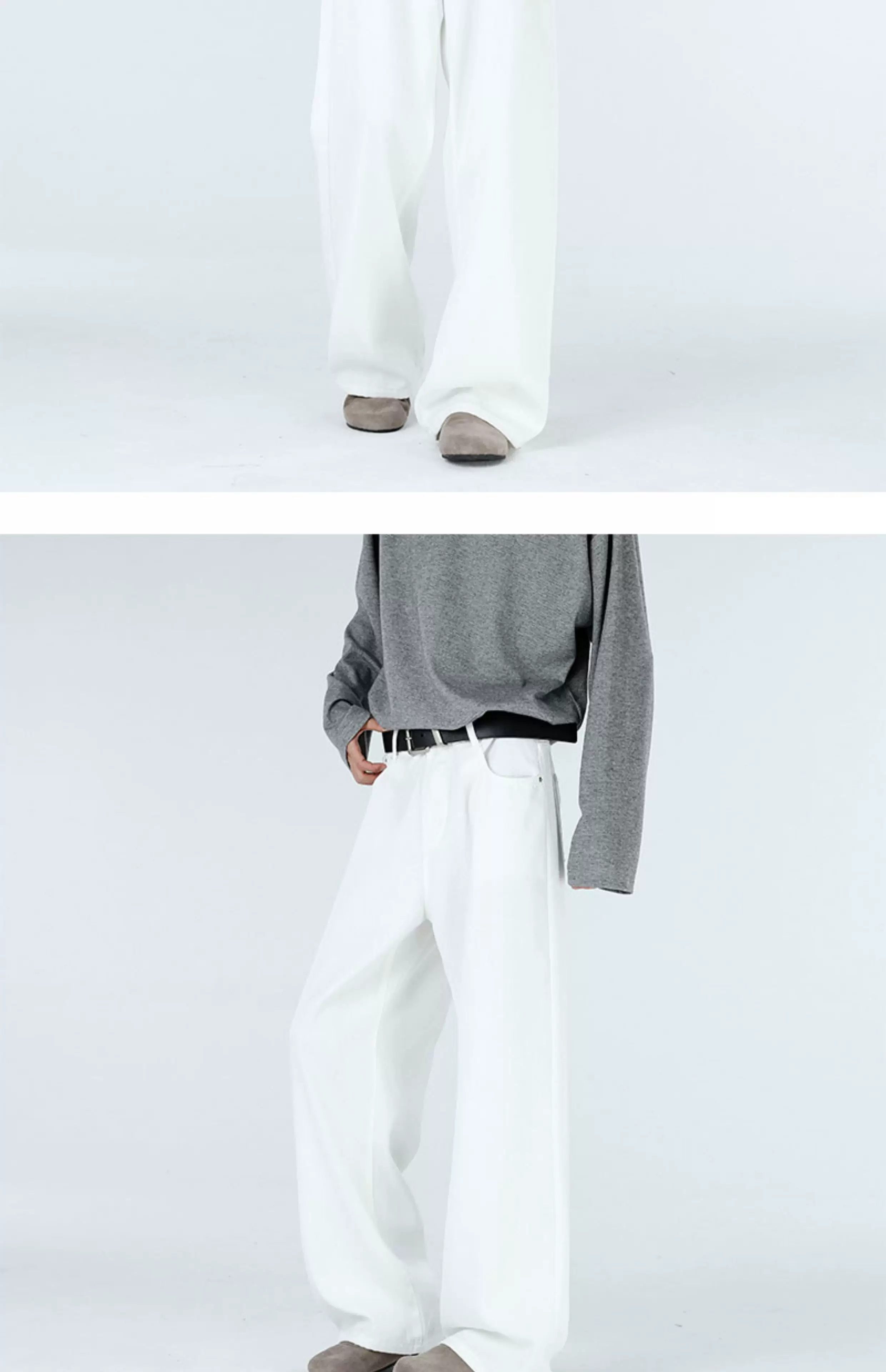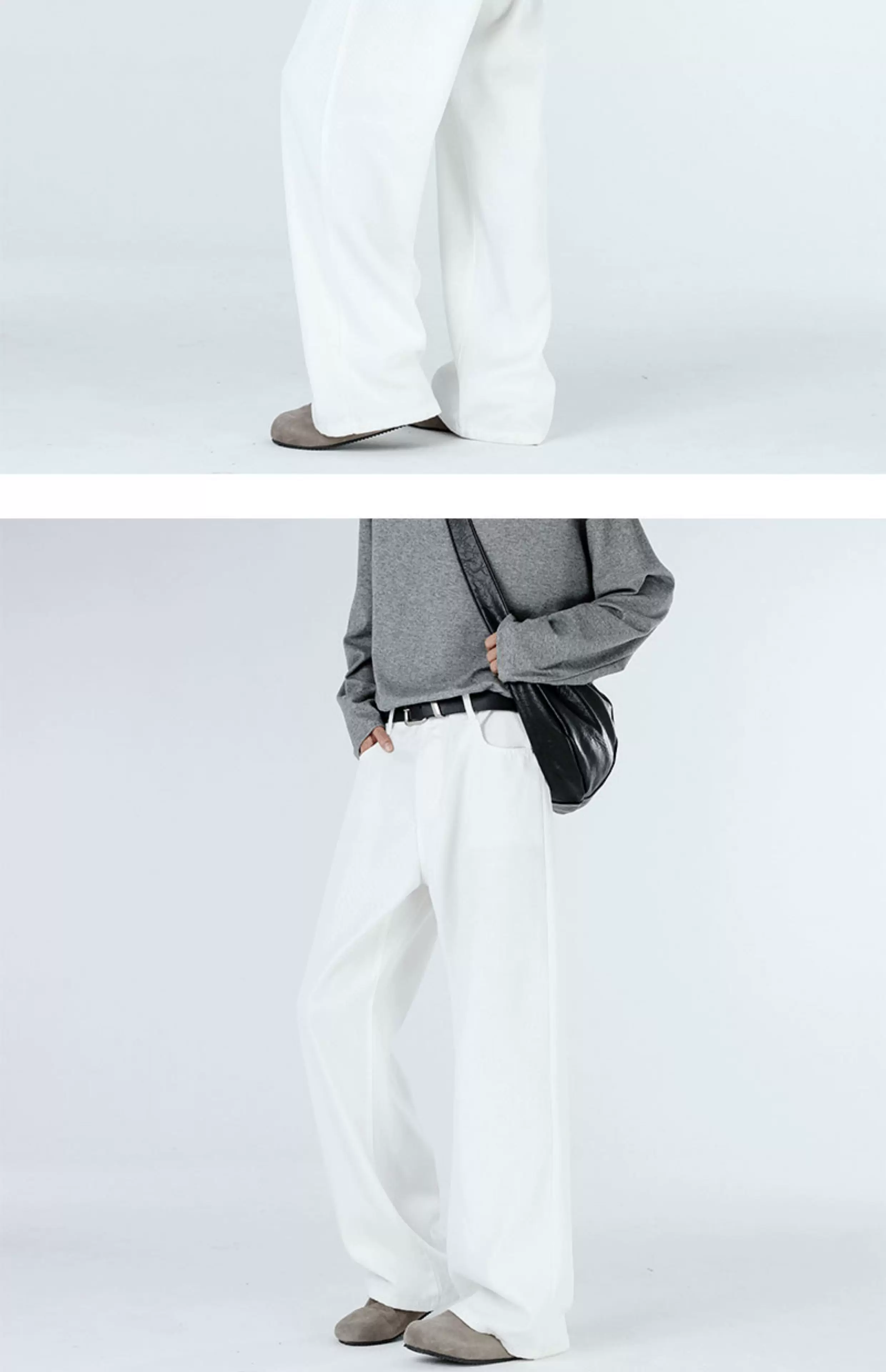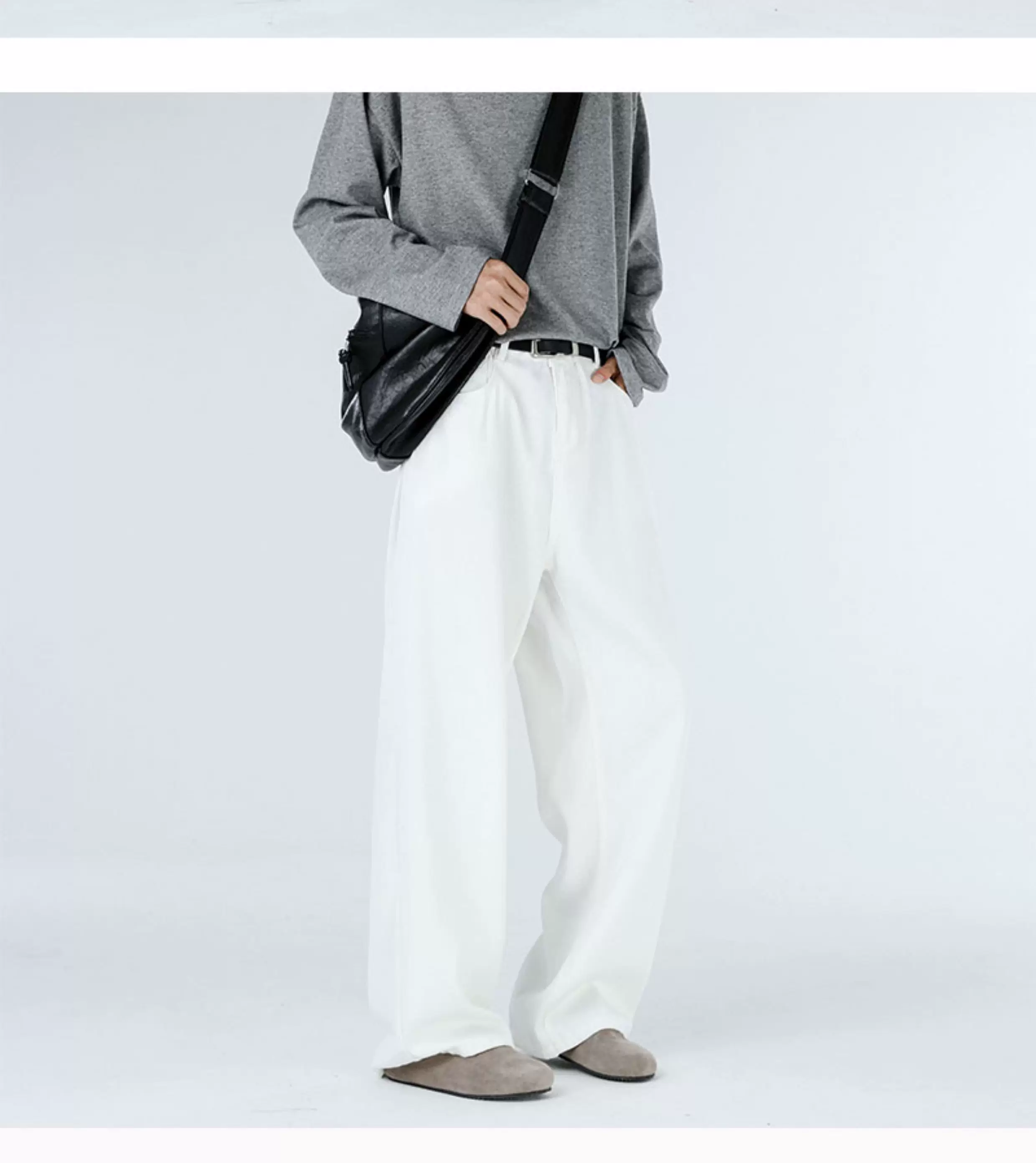 Quần jeans trắng thời thượng dành cho nam, mẫu mới hè 2025, quần ống đứng mỏng, quần ống rộng dáng suông dài chạm đất phong cách Mỹ.