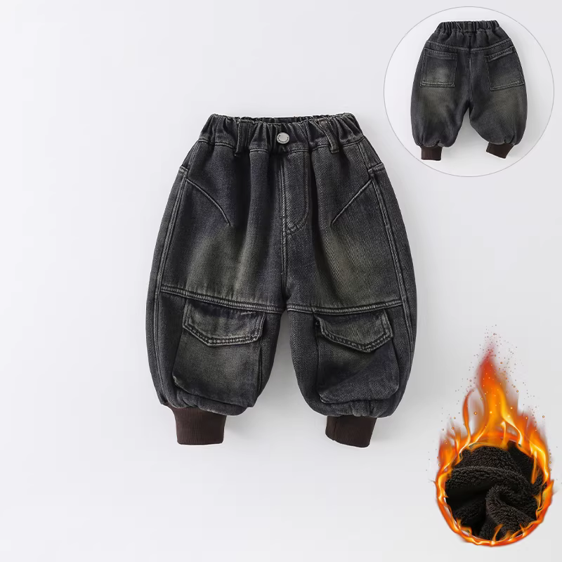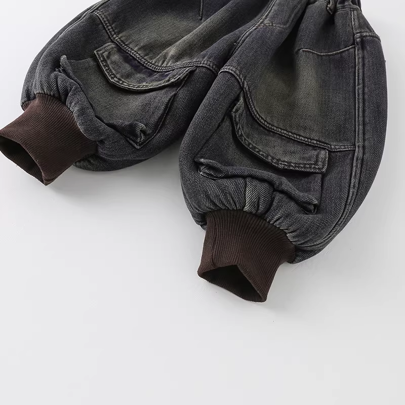 Quần jeans trẻ em mùa đông 2025 kiểu mới quần jogger túi hộp thời trang cho bé trai AK1013