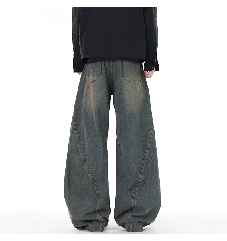 - Quần jeans viền cong đính đá, quần dài ống đứng rách gối phong cách thu đông, quần ống rộng retro Mỹ dành cho nam.