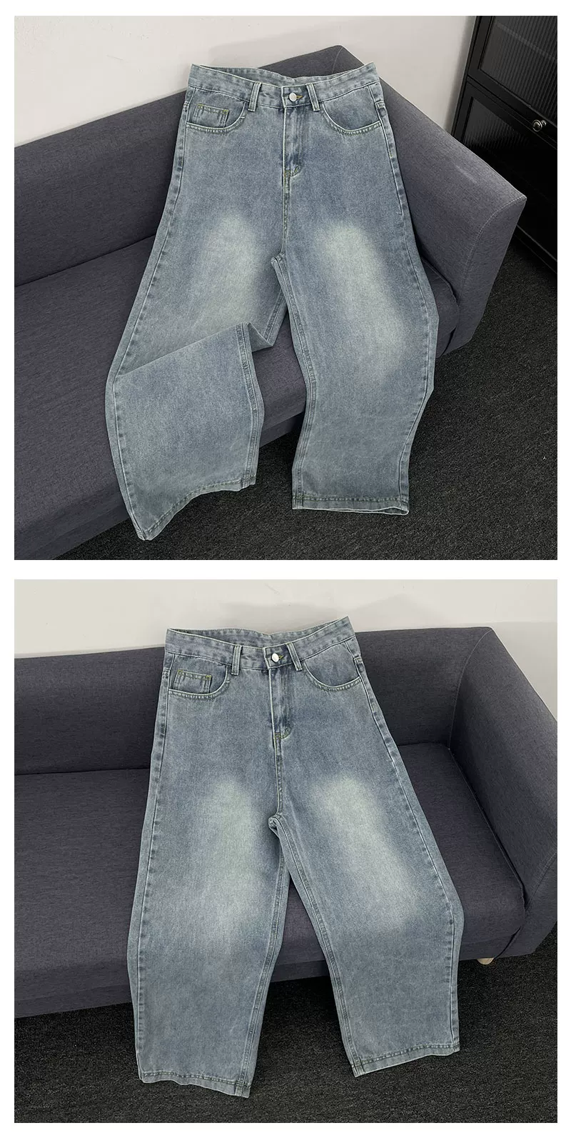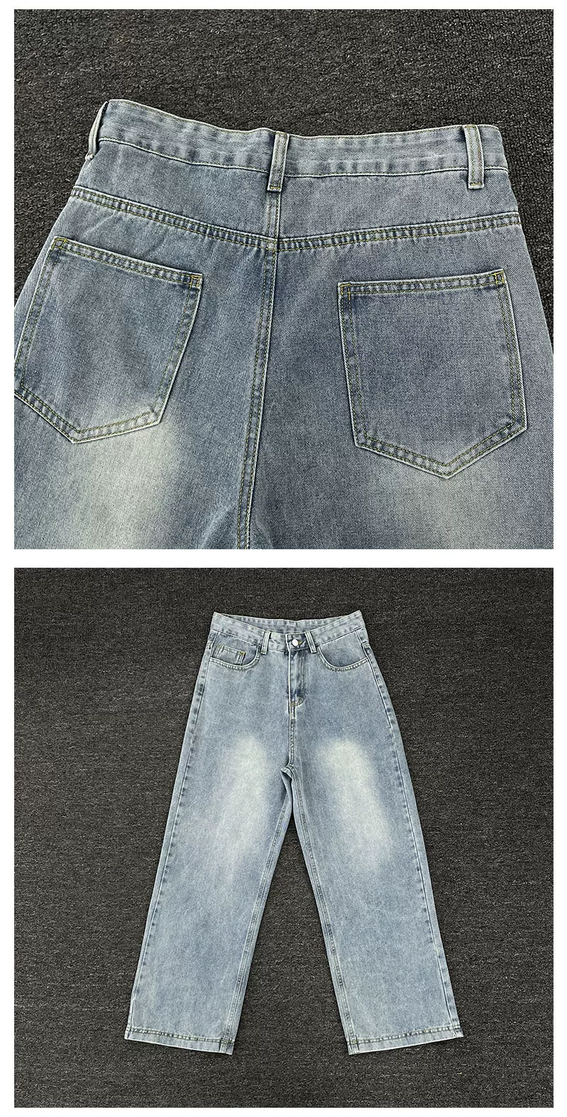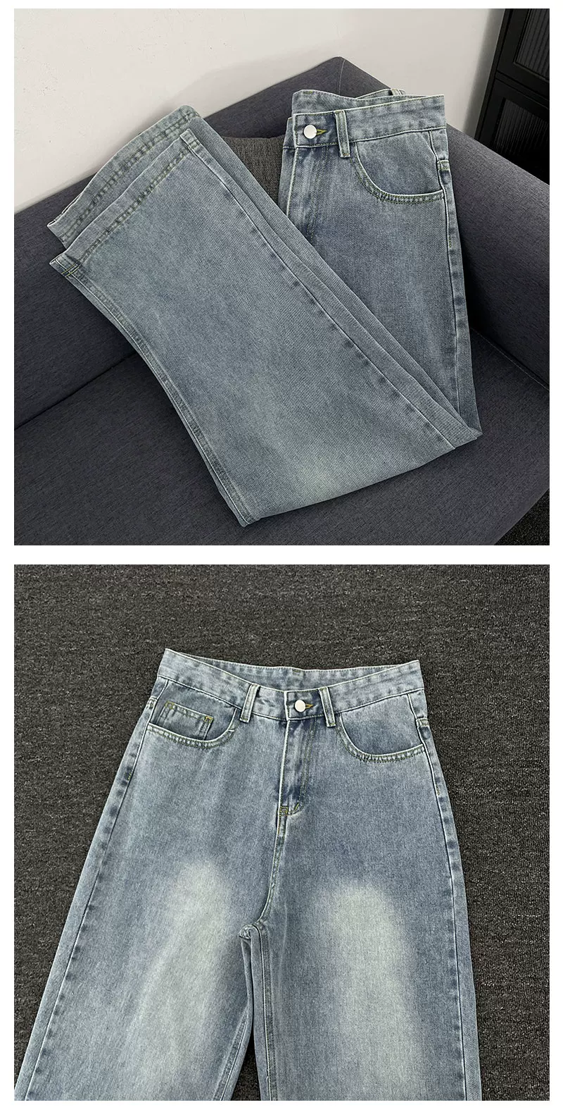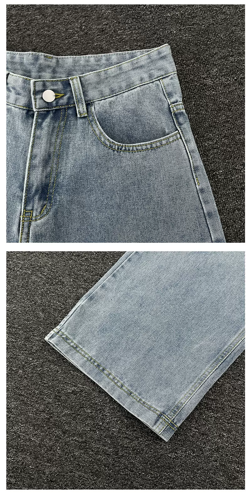 - Quần jeans xanh retro mùa hè kiểu Mỹ, dáng rộng ống thẳng, thời trang đa năng, quần casual nam