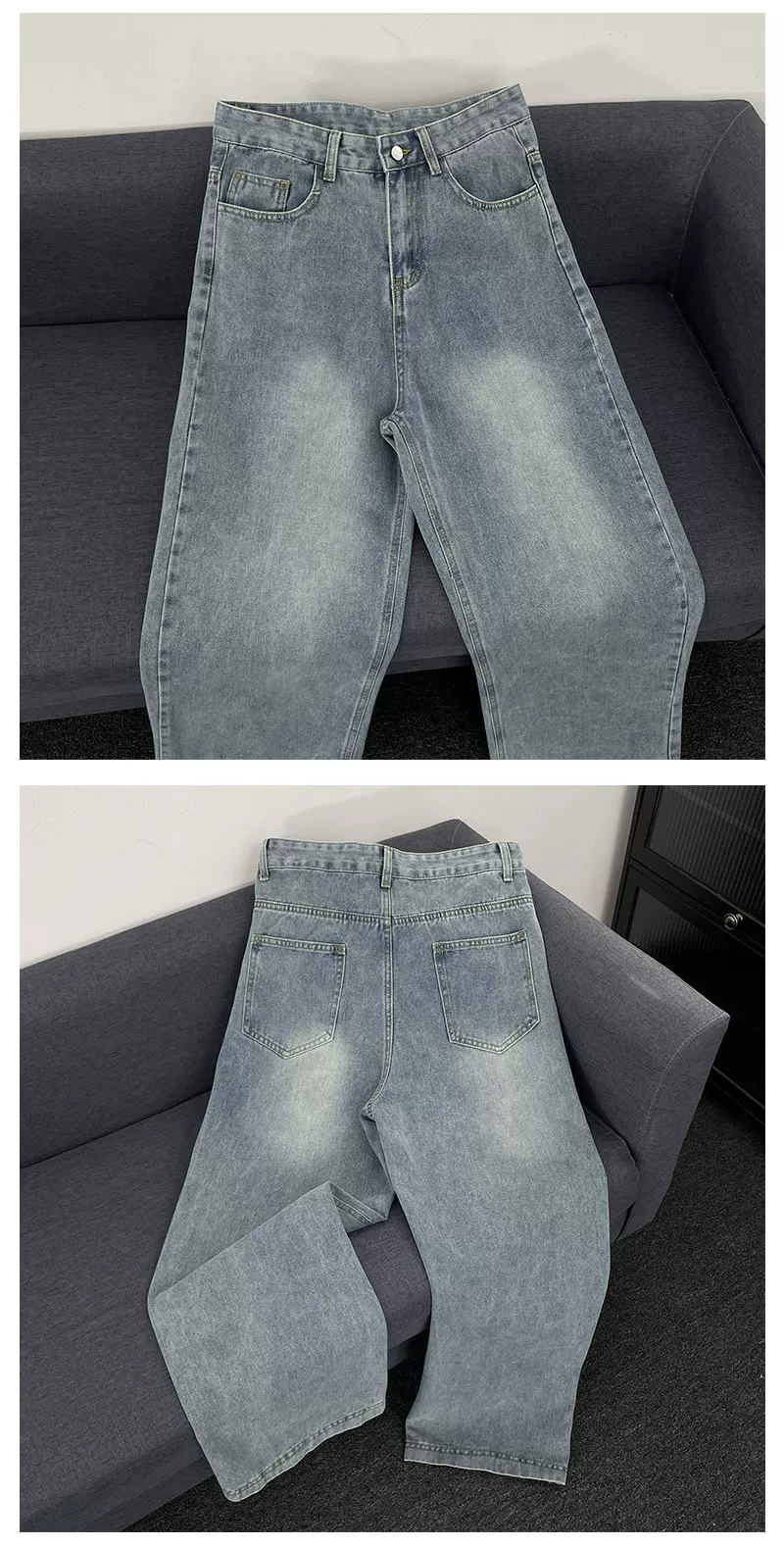 Quần jeans xanh retro mùa hè kiểu Mỹ, dáng rộng ống thẳng, thời trang đa năng, quần casual nam