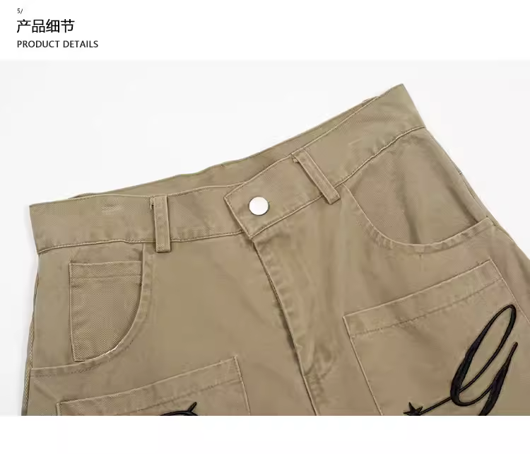- Quần kaki thêu kiểu Mỹ cổ điển K787, chất liệu washed, dáng rộng unisex, phong cách đường phố, kiểu dáng thẳng, ống rộng