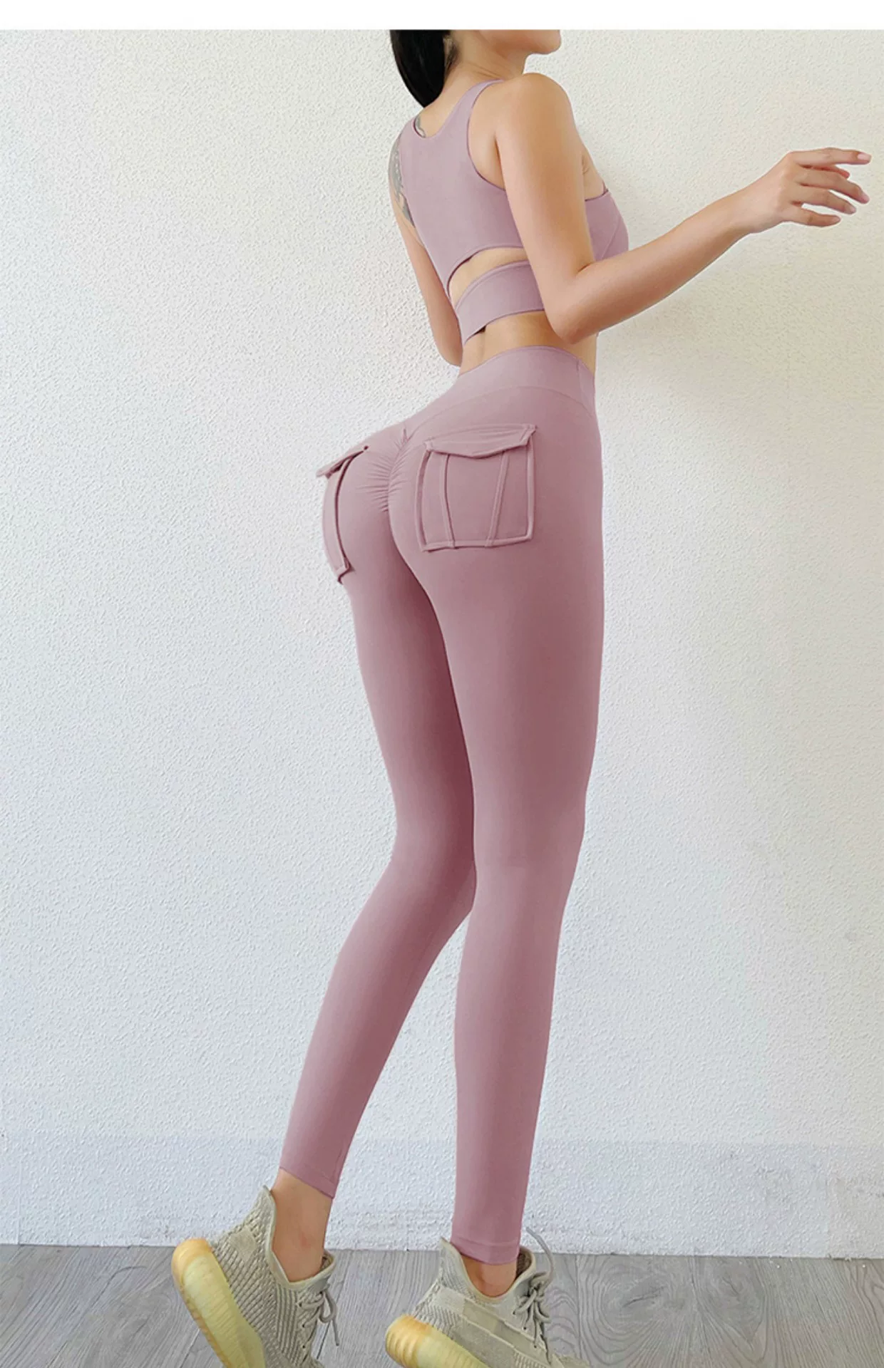 - Quần legging thể thao màu đào dành cho nữ, cạp cao, nâng mông, kiểu dáng công sở, co giãn, ôm sát, tôn dáng, quần yoga cho mùa thu.