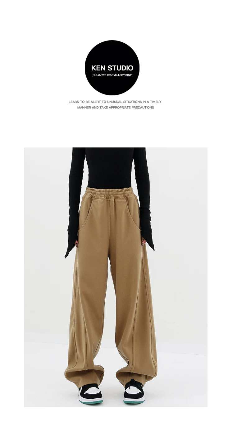 Quần len kaki KEN STUDIO dành cho nữ, quần thể thao dày mùa thu đông, quần thể thao chuối, quần ống rộng, quần thường ngày
