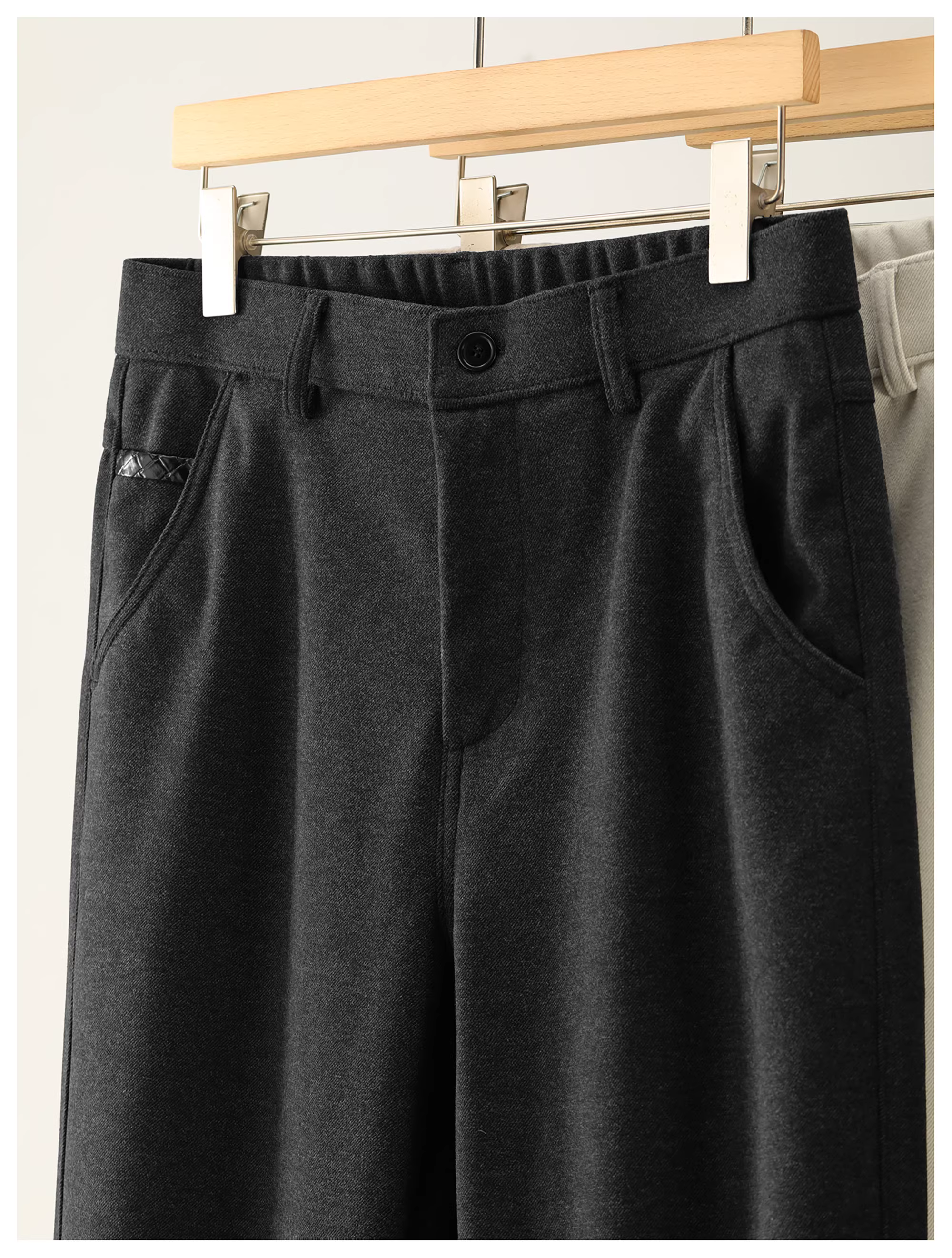 - Quần len may đo eo bán co giãn LUUD dành cho nam, viền da mùa đông, lớp lót chải kỹ, quần âu ống thẳng