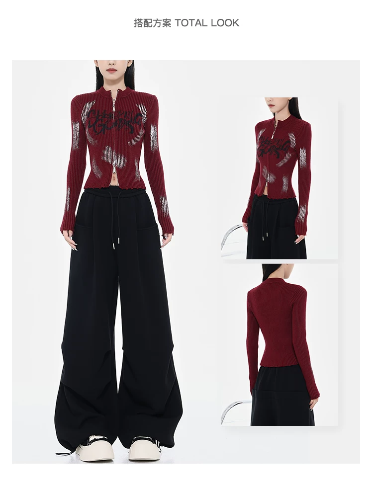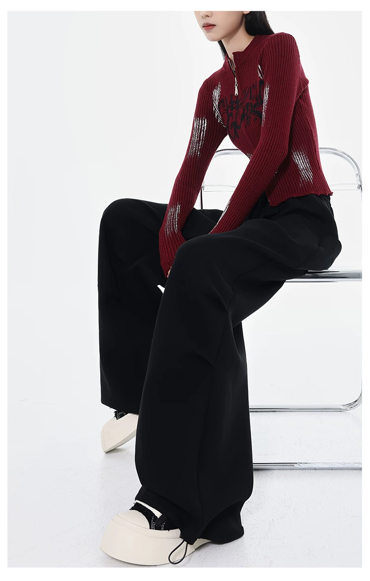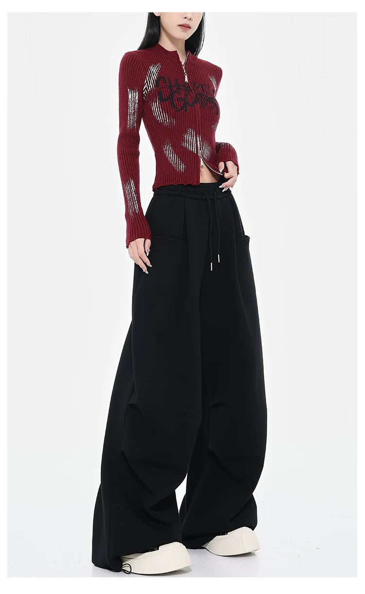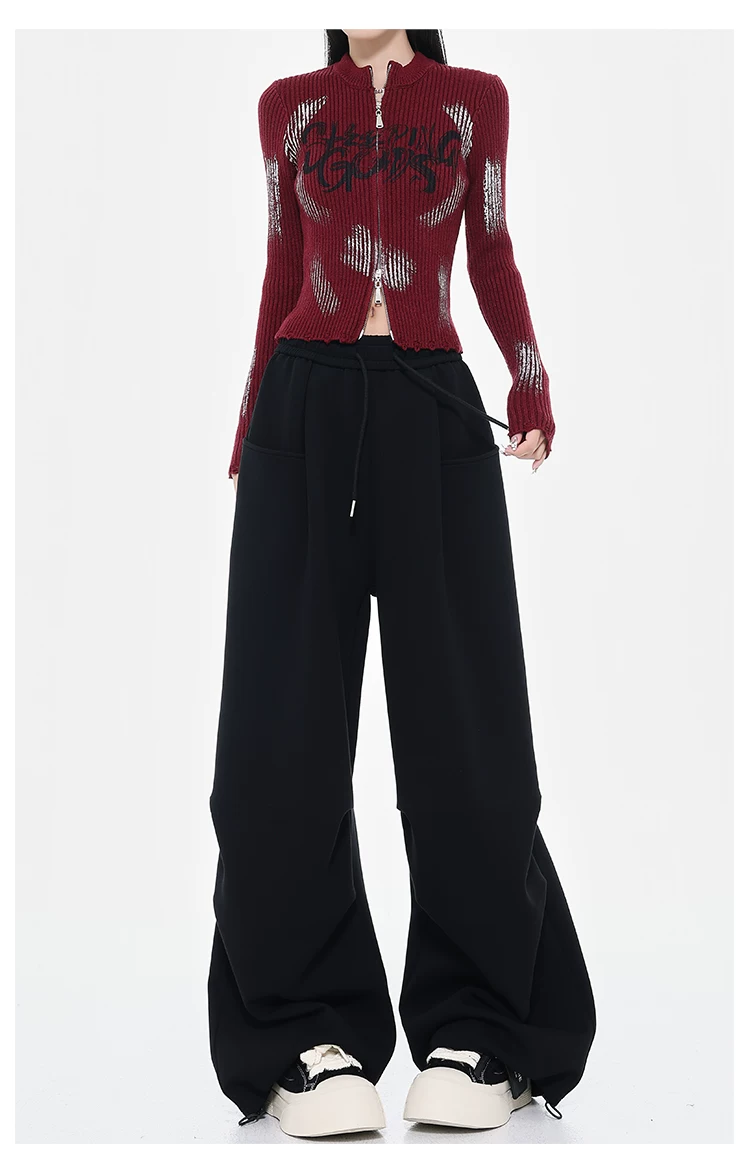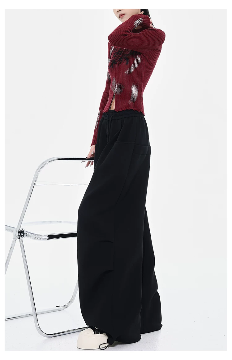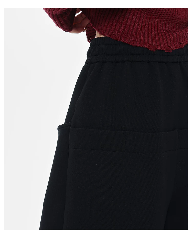 Quần lính dù màu đen thu đông của KEN STUDIO dành cho phụ nữ cao, quần ống rộng dài đến sàn, quần thể thao, quần dài