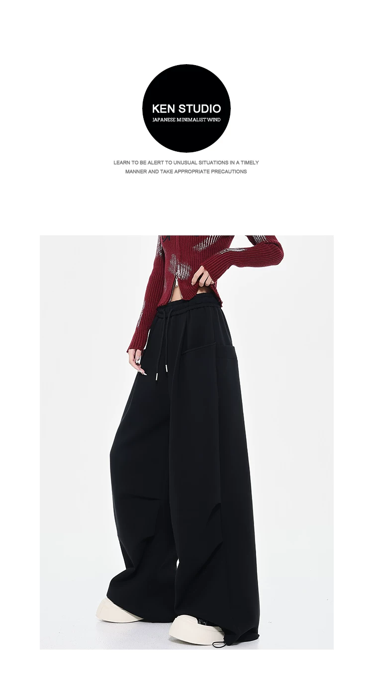 - Quần lính dù màu đen thu đông của KEN STUDIO dành cho phụ nữ cao, quần ống rộng dài đến sàn, quần thể thao, quần dài