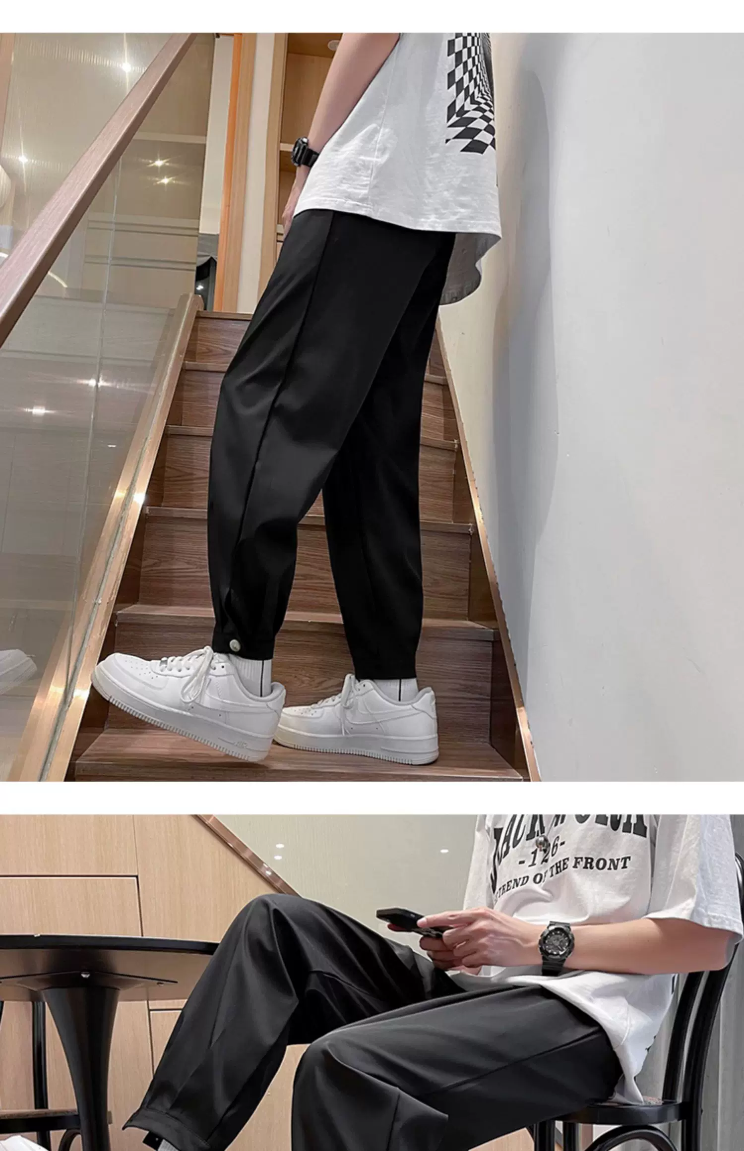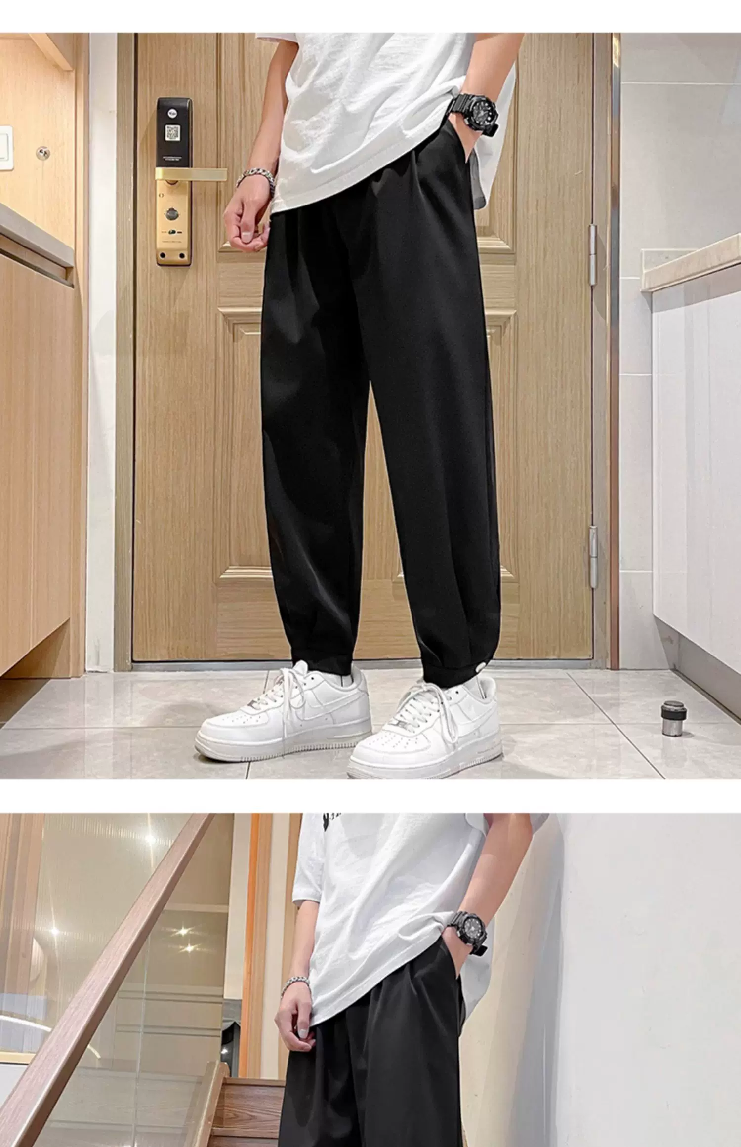 Quần lụa băng phong cách Hàn Quốc thời thượng, quần lửng rộng rãi, quần jogger nam mùa hè mỏng, đa năng, kiểu harem