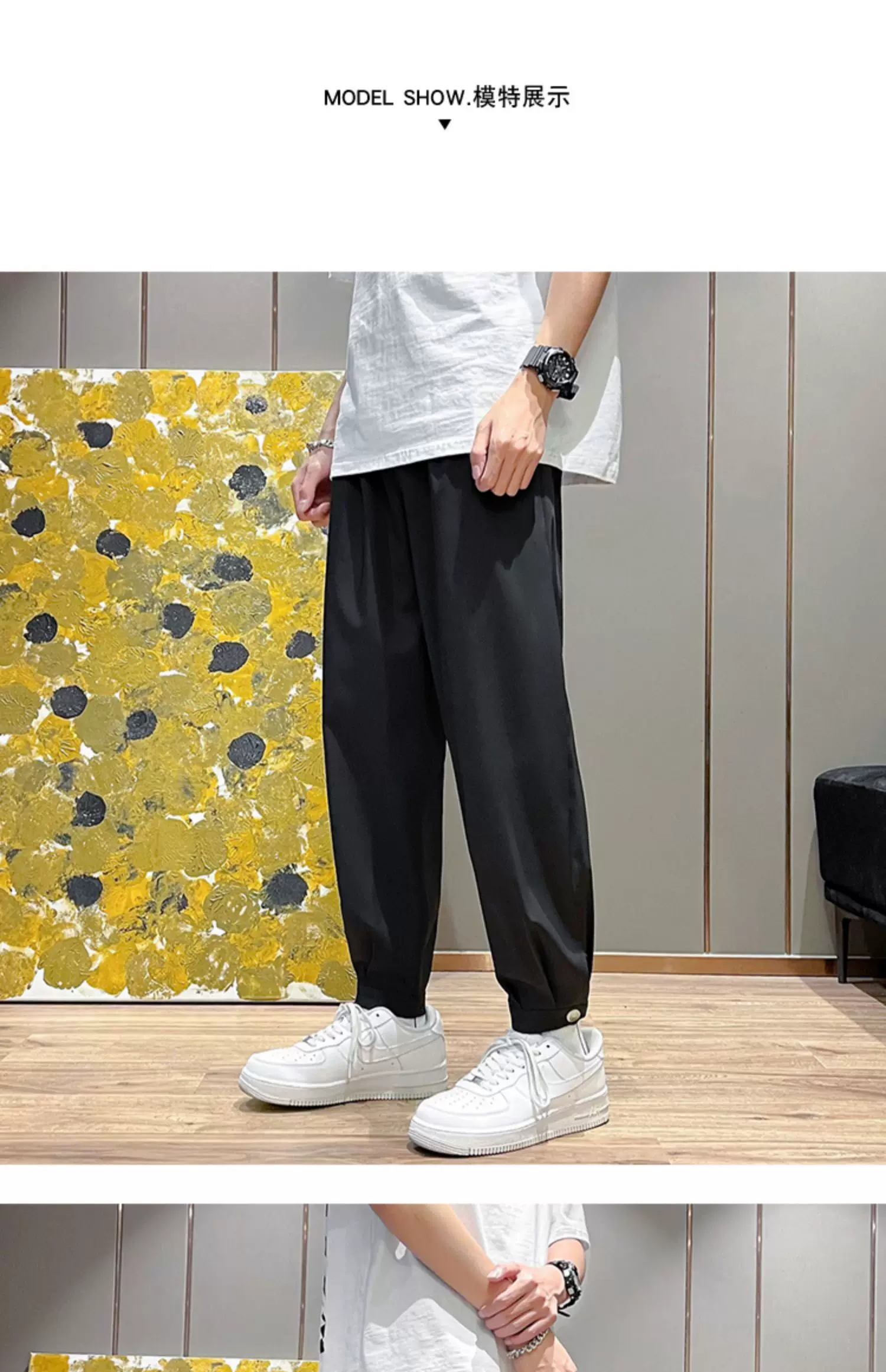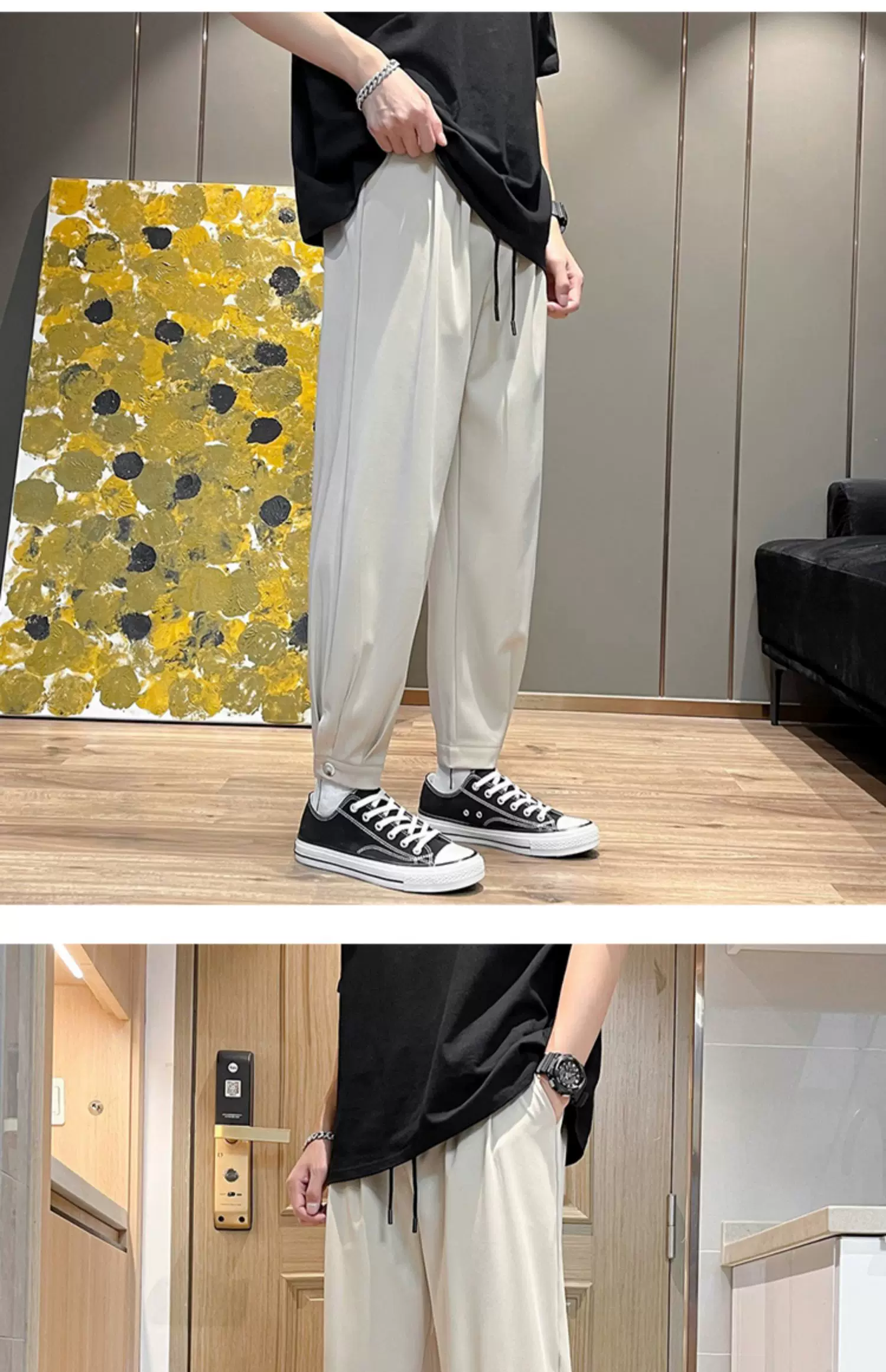 - Quần lụa băng phong cách Hàn Quốc thời thượng, quần lửng rộng rãi, quần jogger nam mùa hè mỏng, đa năng, kiểu harem