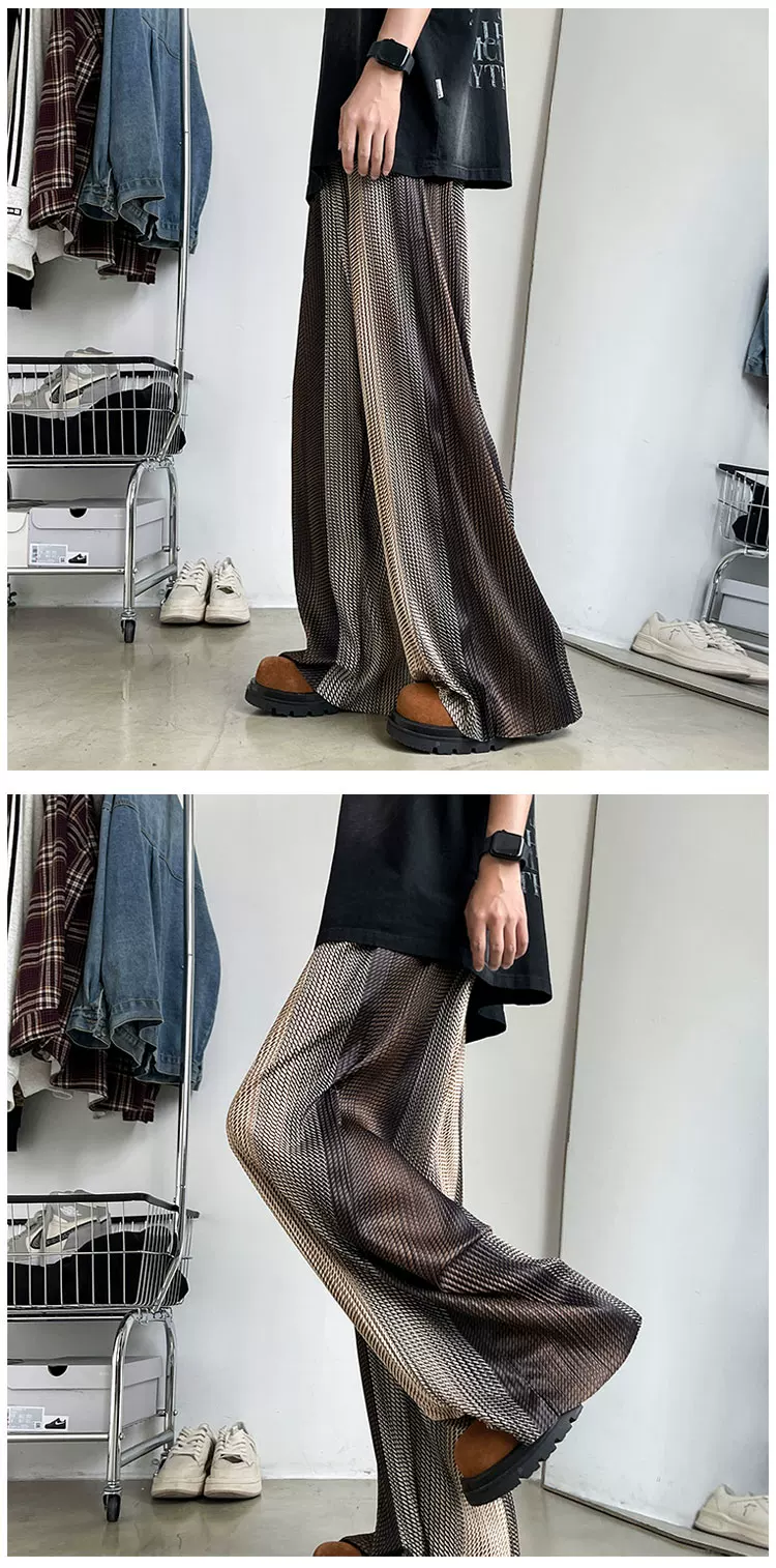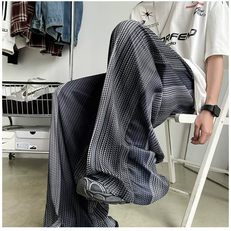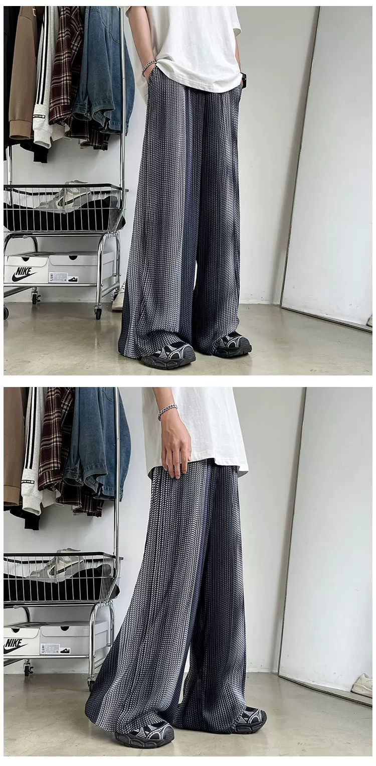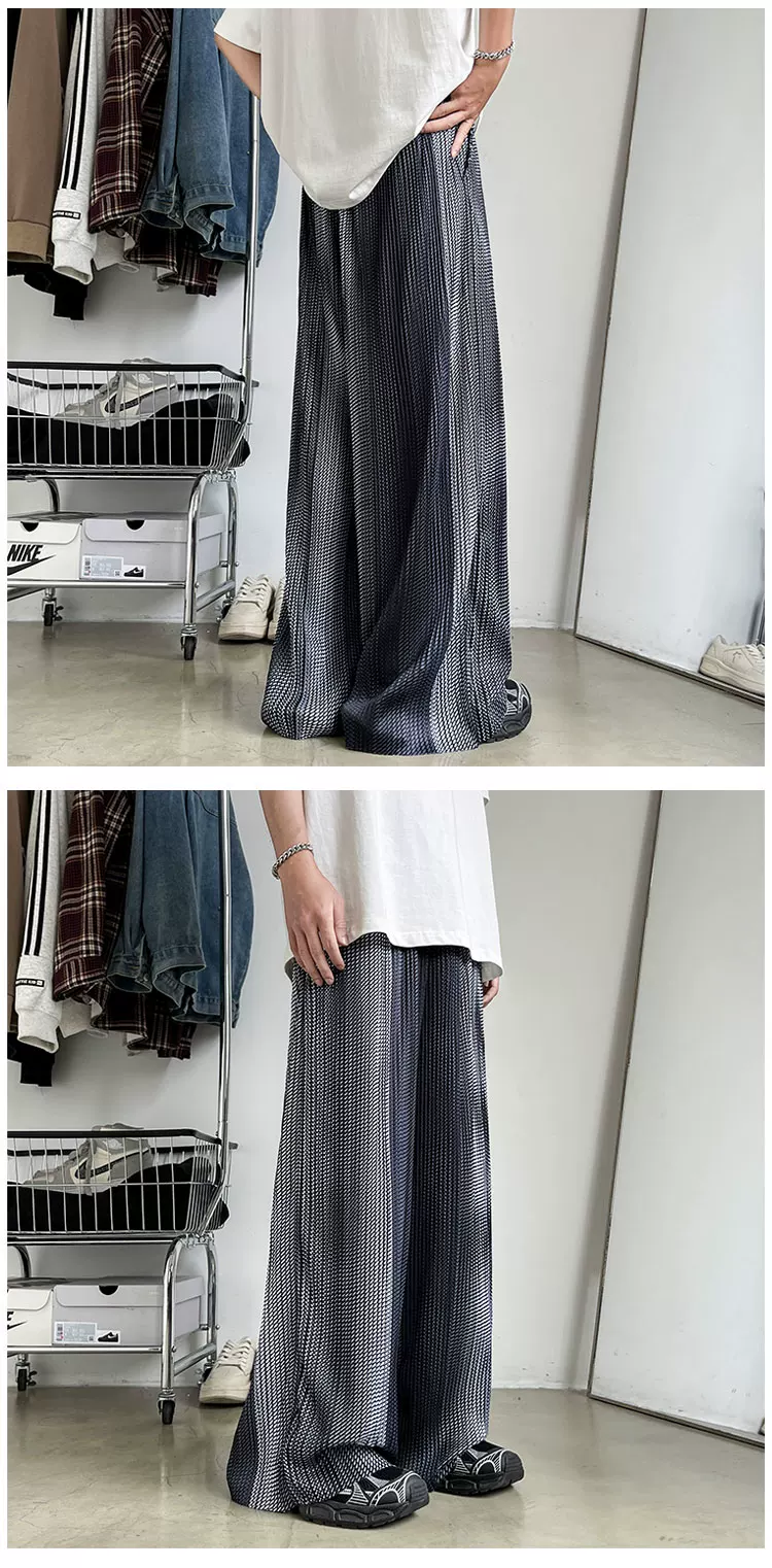 Quần lụa băng xếp ly phối màu dành cho nam, quần cặp đôi phong cách hip-hop Mỹ thời thượng, quần ống rộng suông dài chạm đất mặc mùa hè.