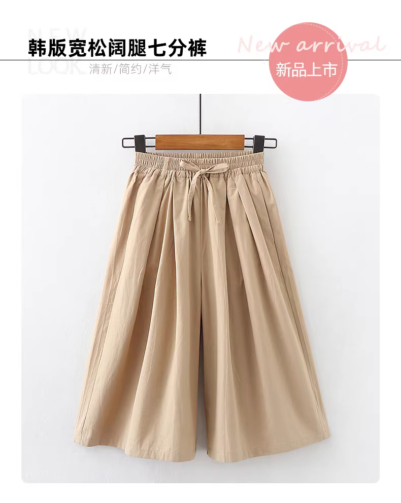 - Quần lửng bé gái, trẻ lớn, kiểu mới hè 2025, quần cotton rộng rãi, quần váy trẻ em, quần mỏng mặc hè, quần ống rộng
