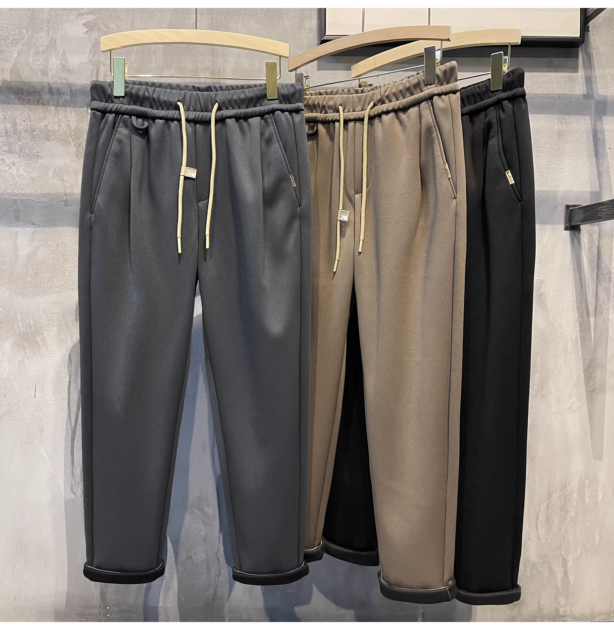 Quần nam LUUD 2025 mới, màu trơn, đa năng, lưng thun, kiểu dáng xuông hơi rộng, đơn giản, ôm dáng, dài.