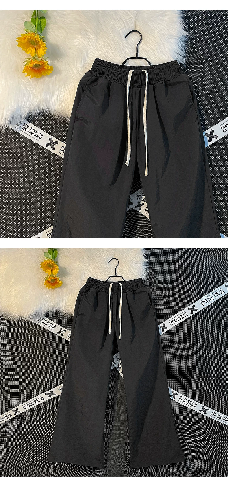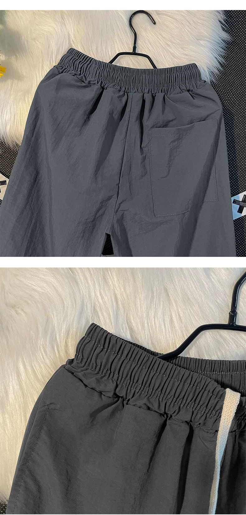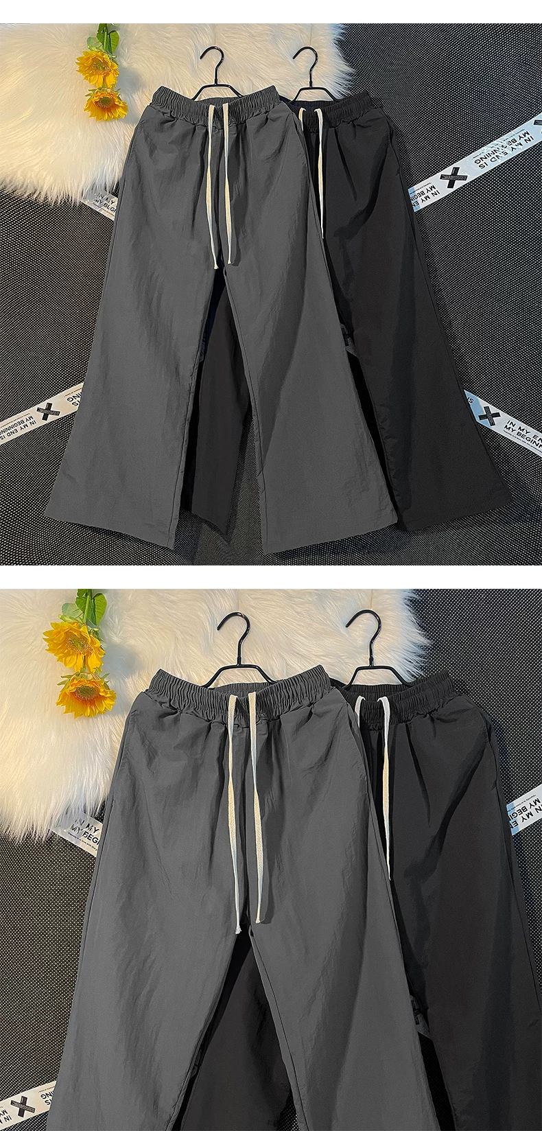 - Quần nam nhẹ, nhanh khô, kiểu dáng thường ngày, quần ống loe rộng rãi mùa hè, phong cách Mỹ thời thượng, quần dù thể thao.