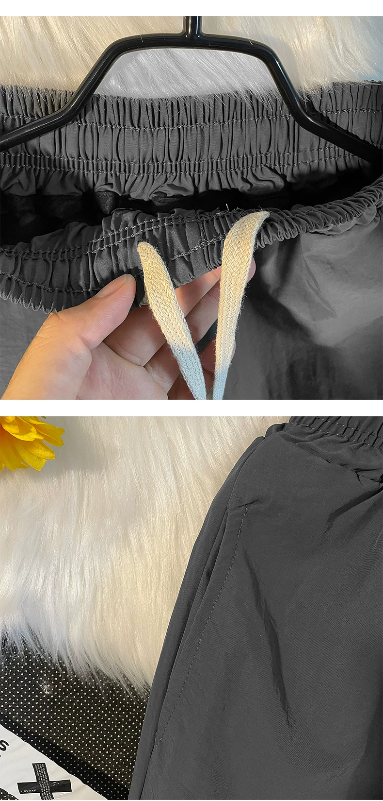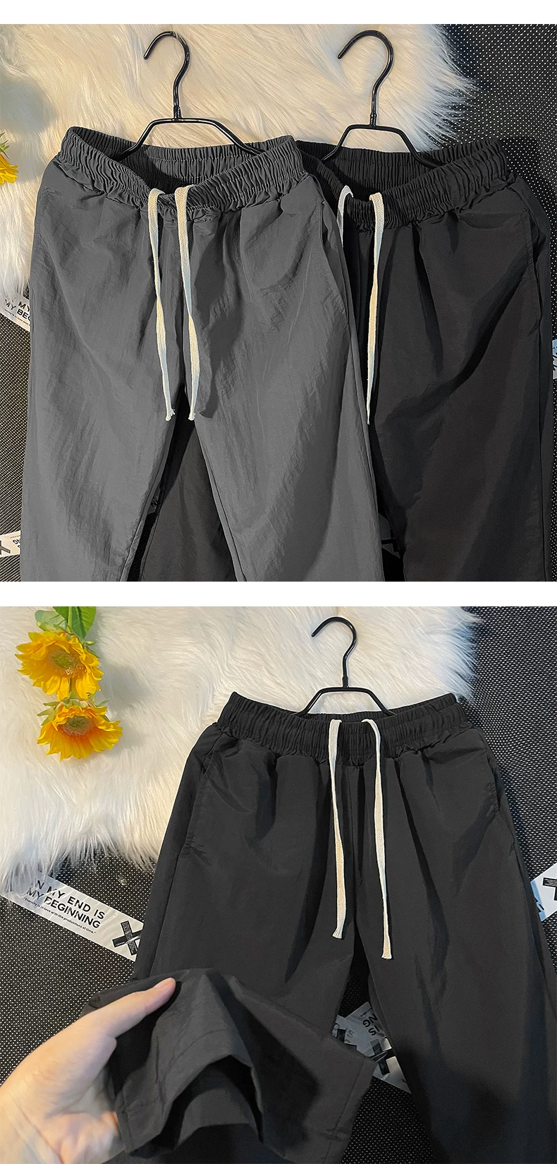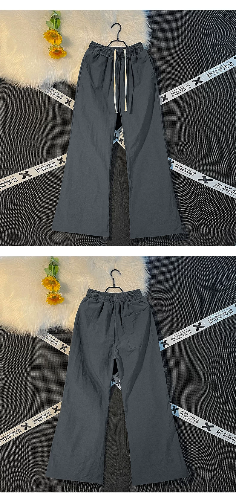 - Quần nam nhẹ, nhanh khô, kiểu dáng thường ngày, quần ống loe rộng rãi mùa hè, phong cách Mỹ thời thượng, quần dù thể thao.