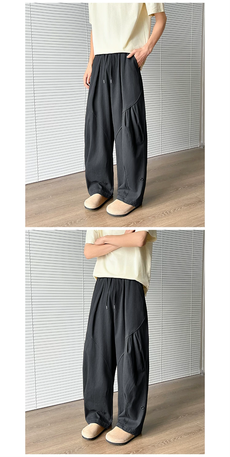 Quần nam thiết kế dáng độc đáo, quần công sở kiểu Mỹ thời thượng mùa xuân thu, quần dài ống rộng dáng cong thoải mái.