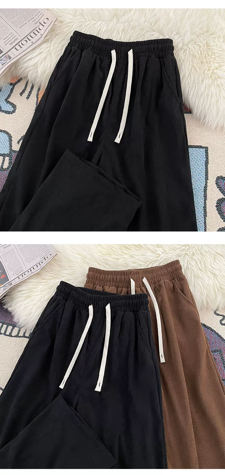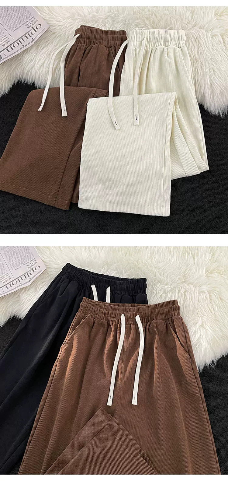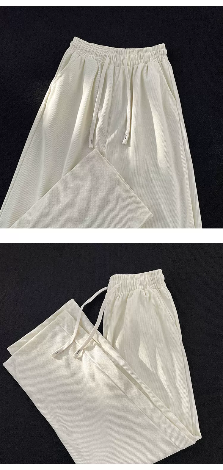 - Quần nhung kẻ sọc nam có hiệu ứng xếp ly, quần thể thao ống rộng dáng thẳng, thời trang thu đông, có dây rút, đa năng, dành cho cặp đôi.