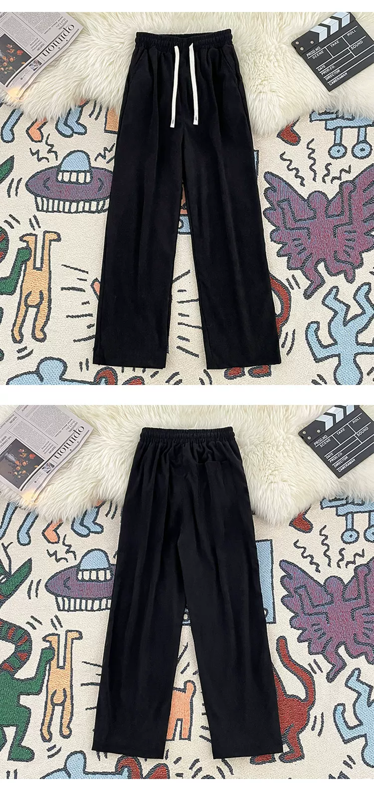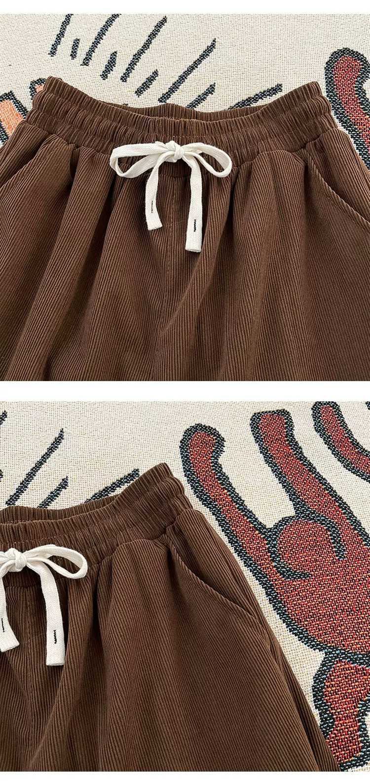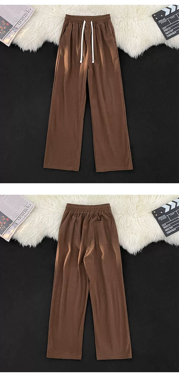- Quần nhung kẻ sọc nam có hiệu ứng xếp ly, quần thể thao ống rộng dáng thẳng, thời trang thu đông, có dây rút, đa năng, dành cho cặp đôi.