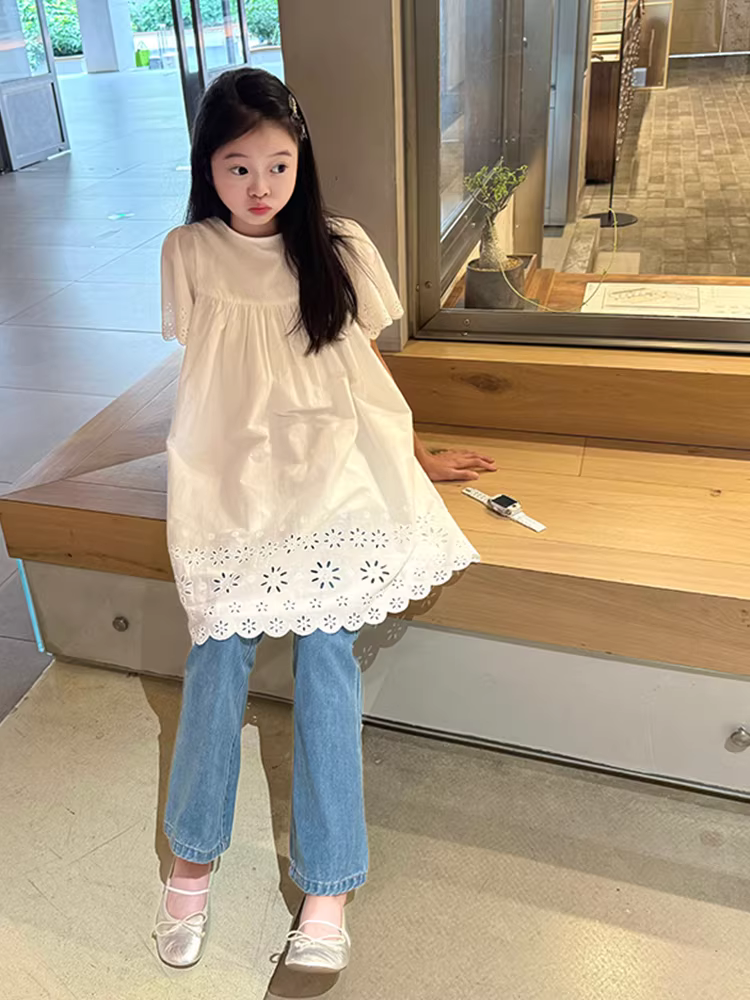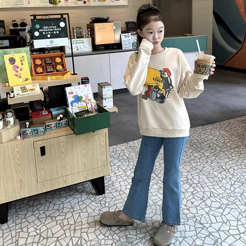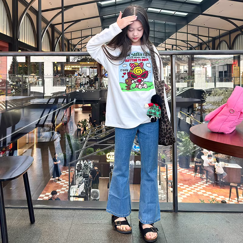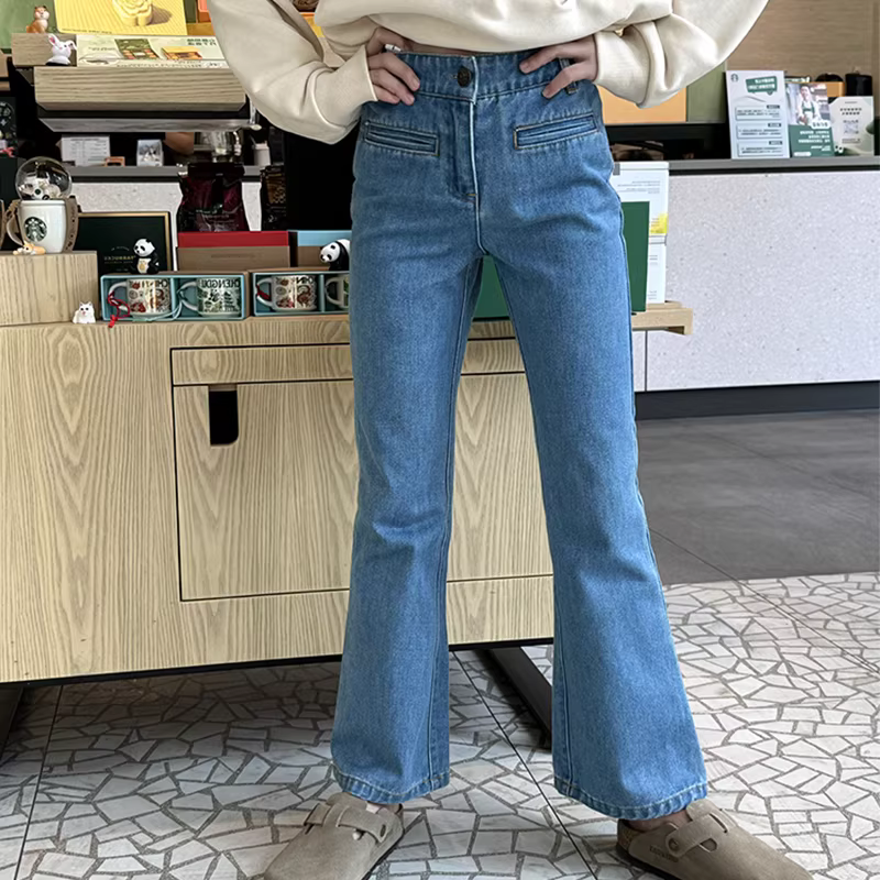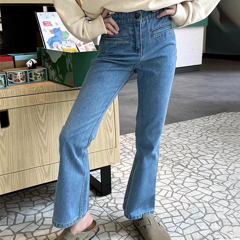 - Quần nữ bé gái xuân hè 2025 kiểu dáng mới, quần loe cho trẻ lớn, chất liệu co giãn, tôn dáng, quần denim mỏng, quần trẻ em mặc thường ngày