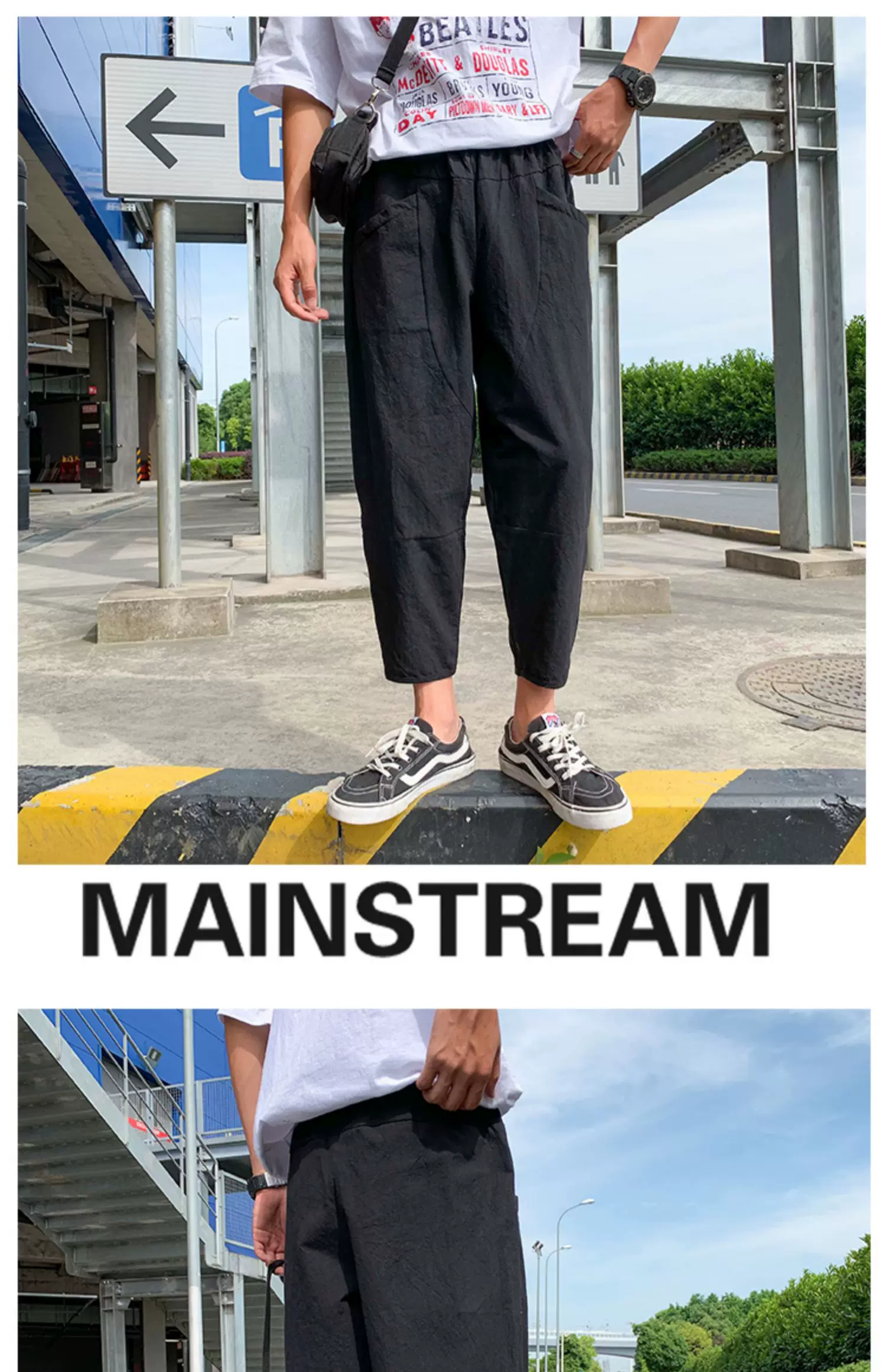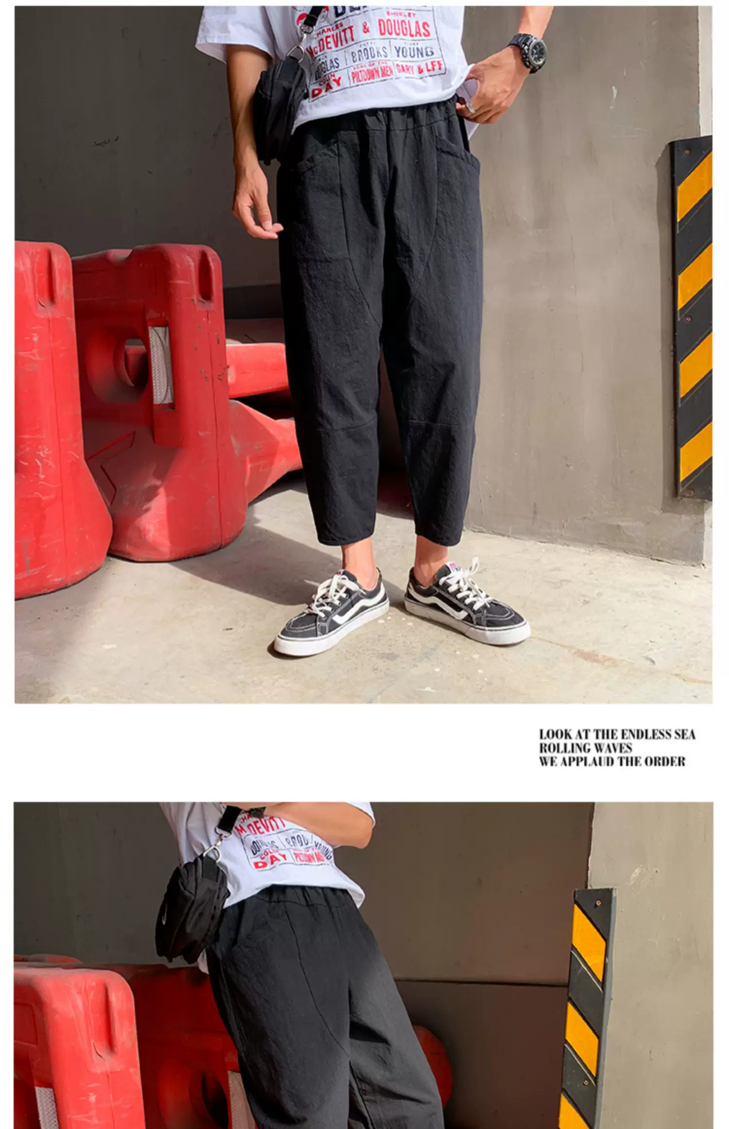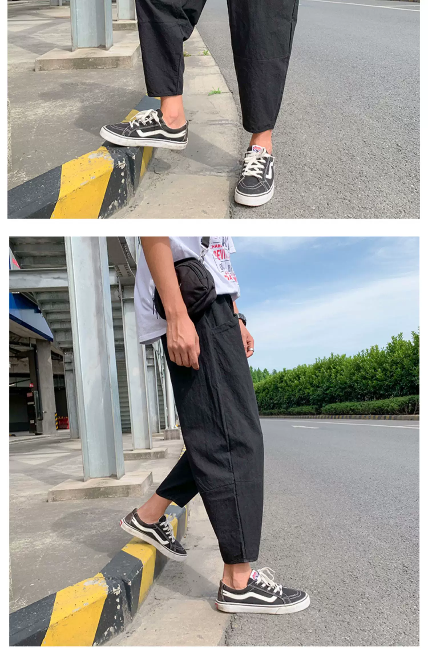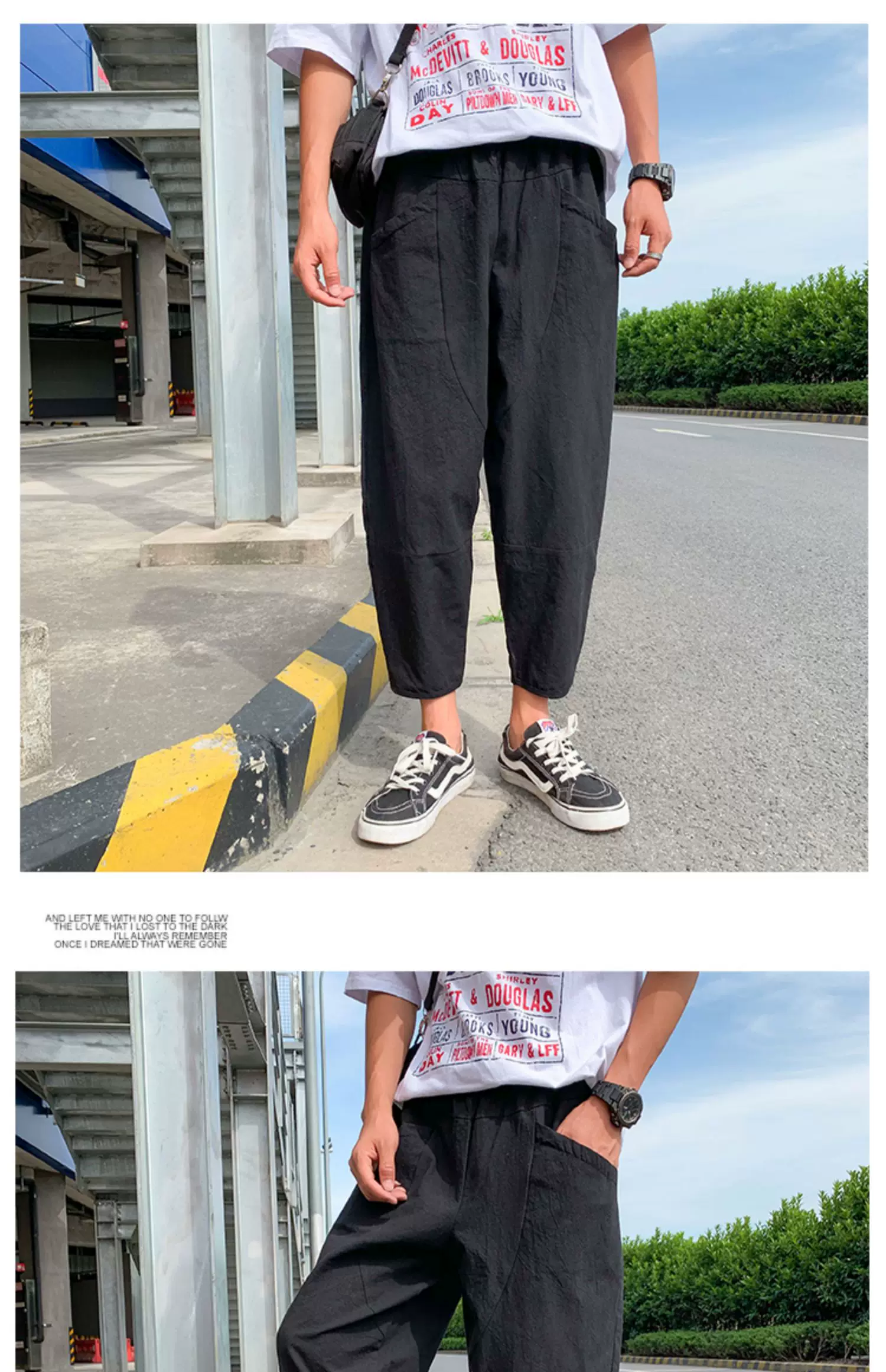 - Quần ống đứng màu trơn mỏng phong cách Harajuku mùa hè dành cho nam, quần lửng thời trang Nhật Bản, dáng rộng, dài 9/10, quần thường ngày