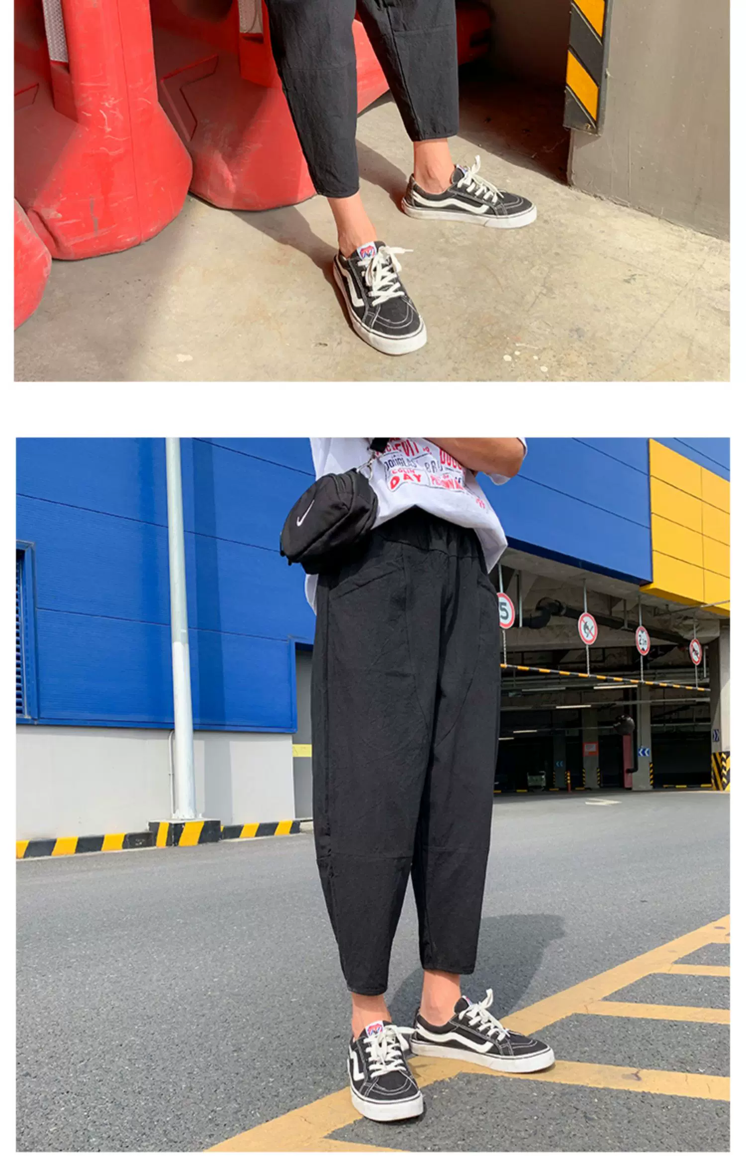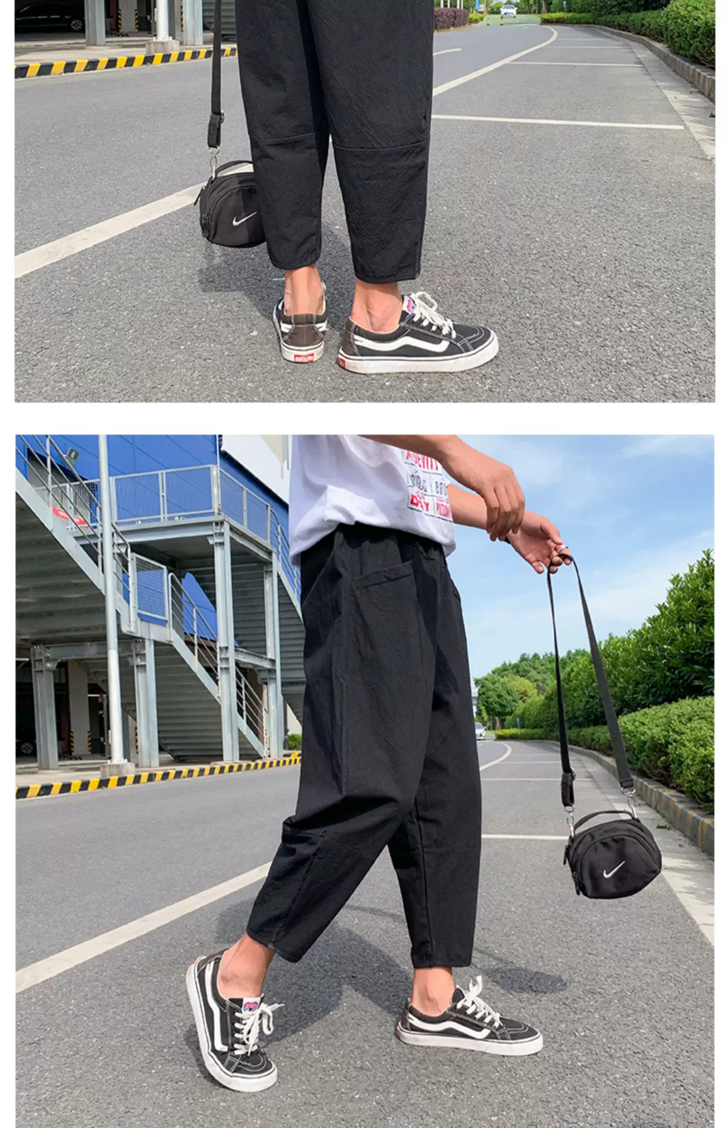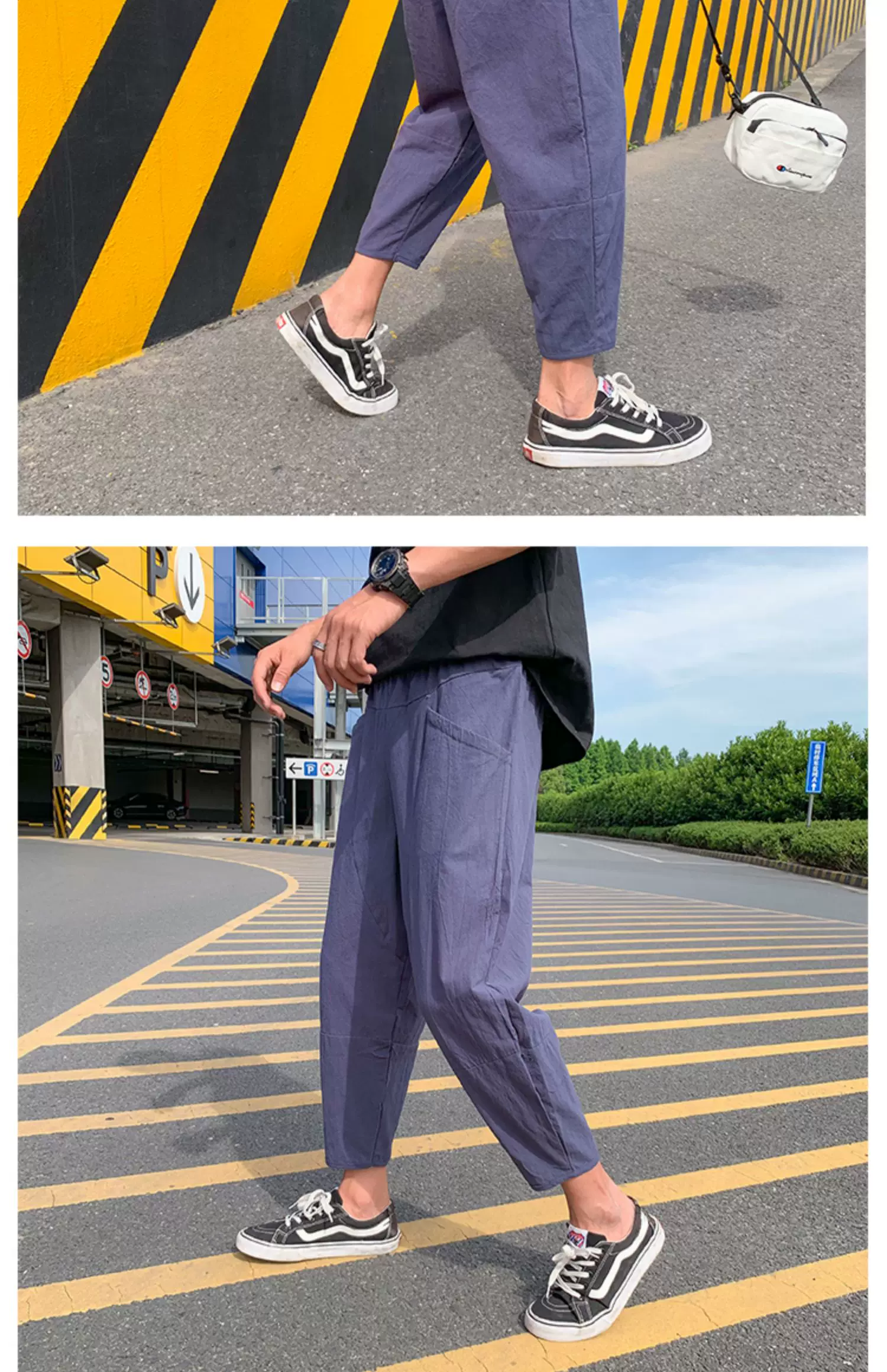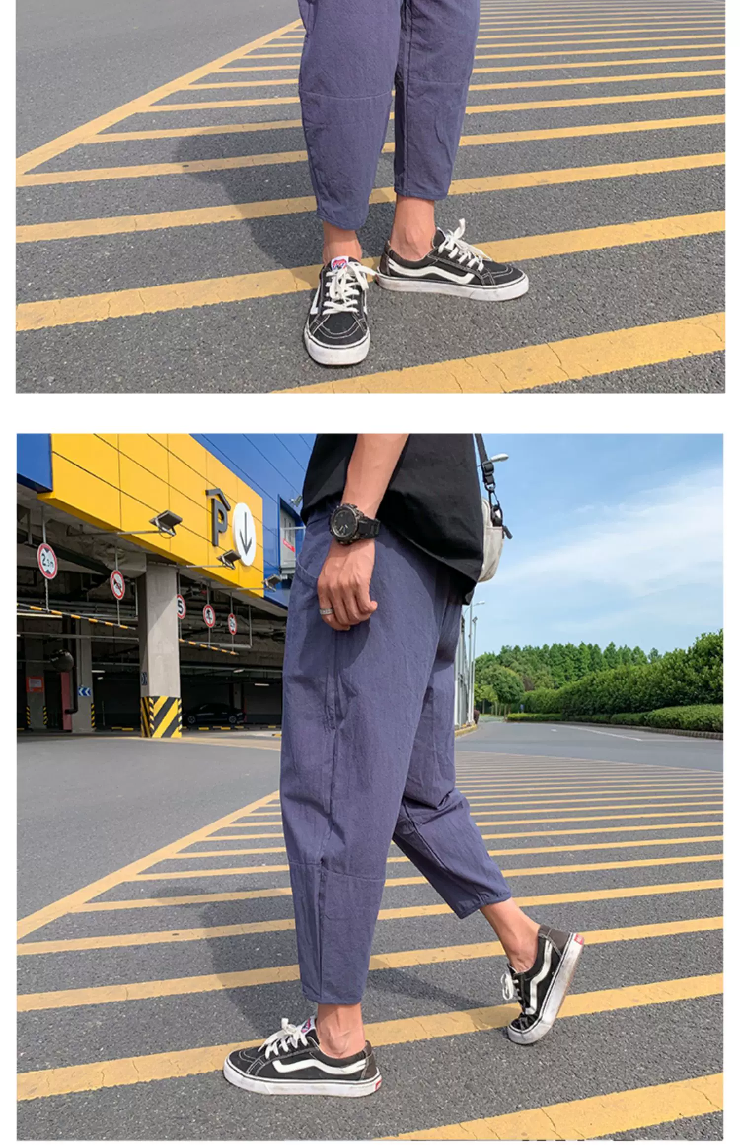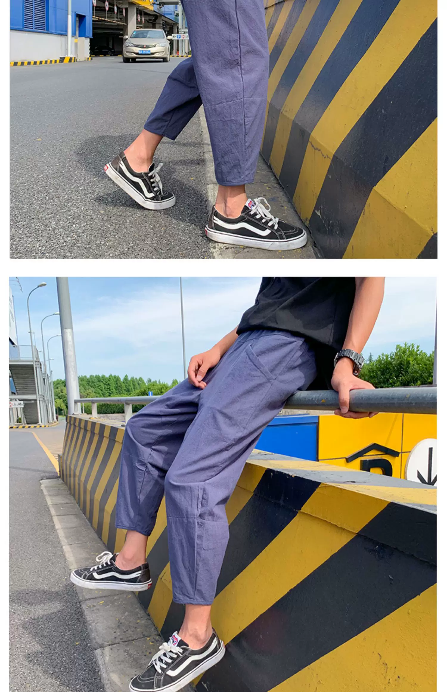 - Quần ống đứng màu trơn mỏng phong cách Harajuku mùa hè dành cho nam, quần lửng thời trang Nhật Bản, dáng rộng, dài 9/10, quần thường ngày