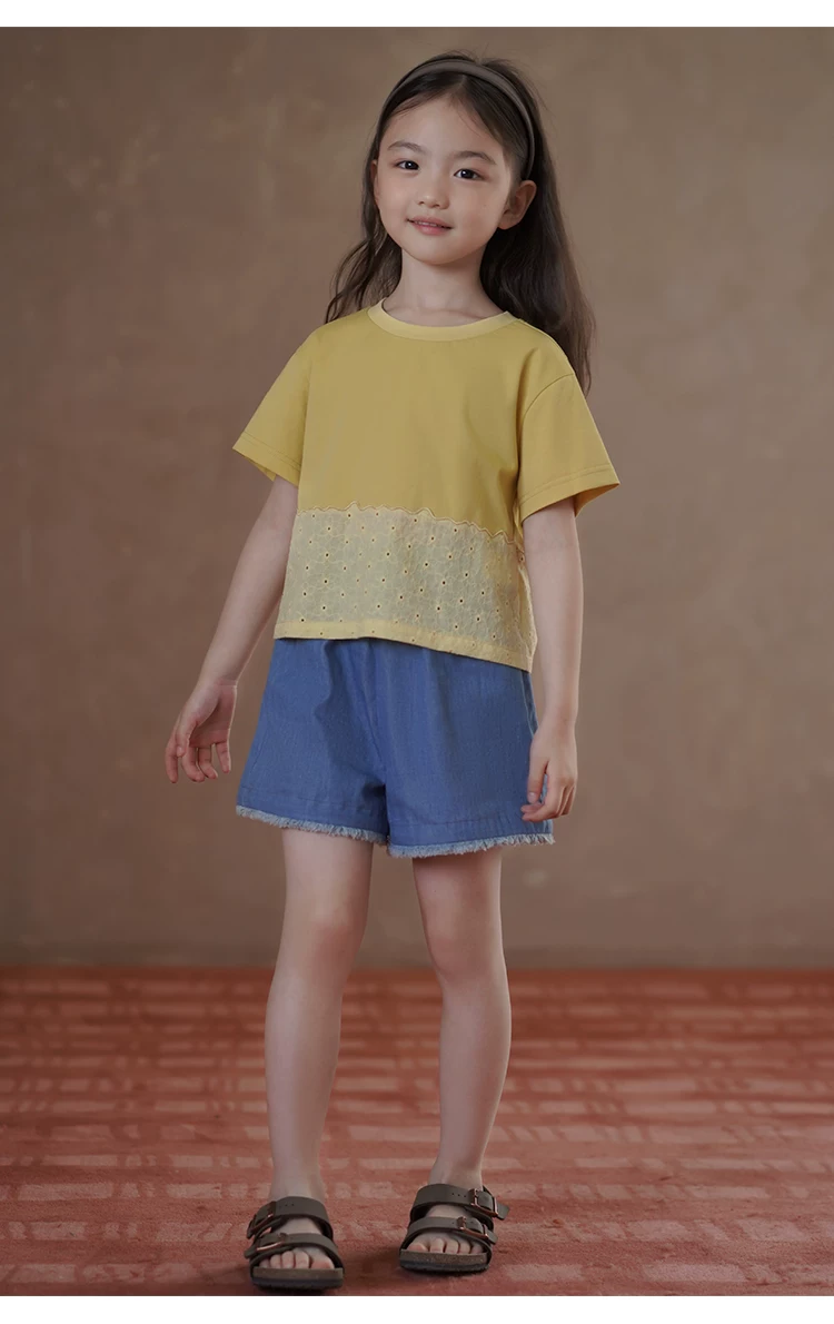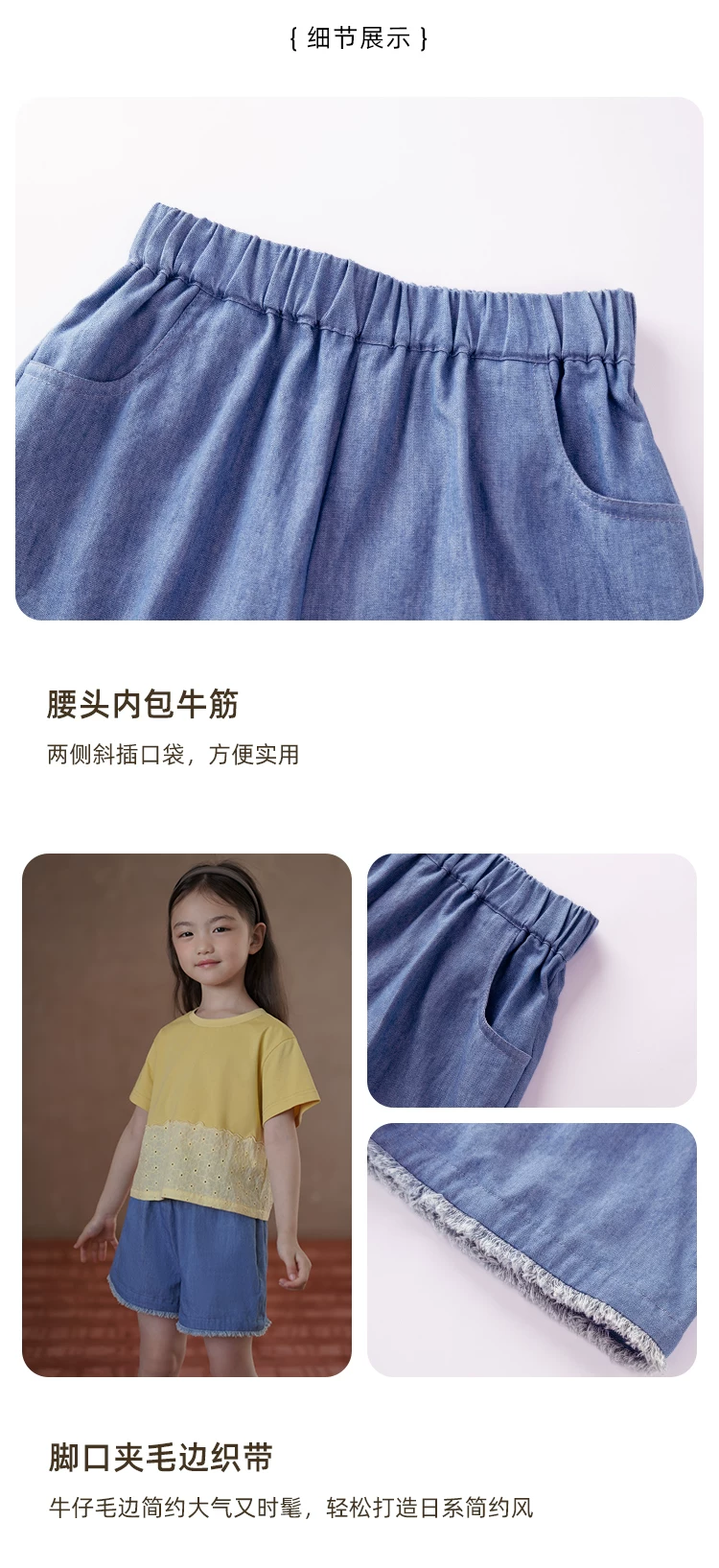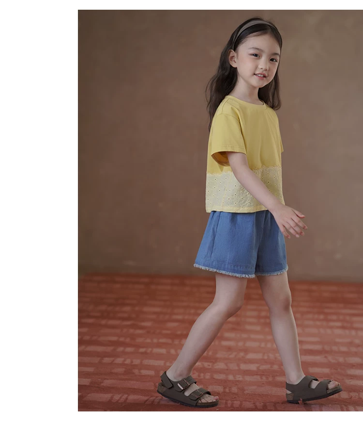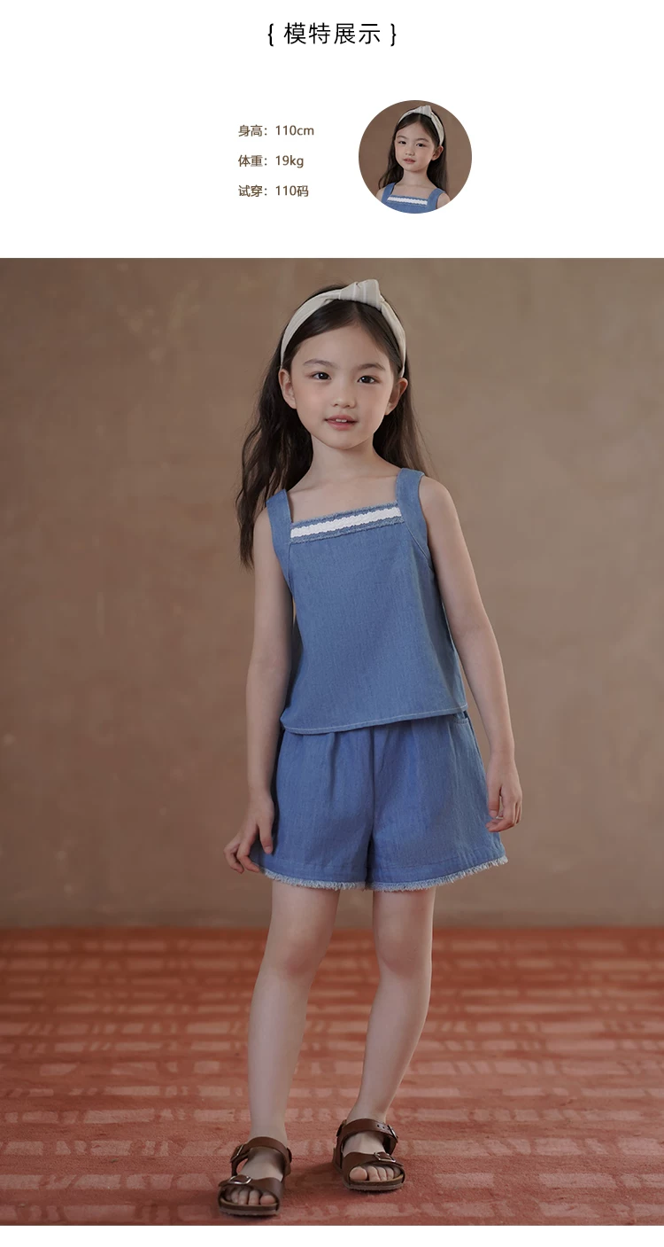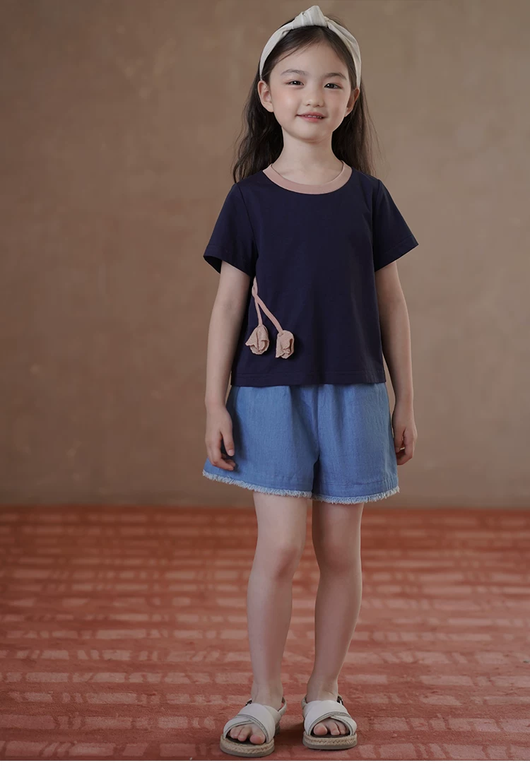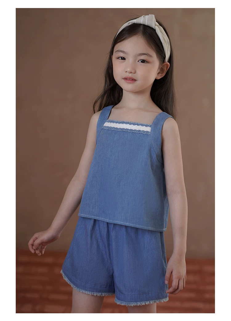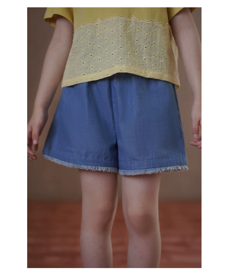 - Quần ống đứng mùa hè cho bé gái, quần short denim thiết kế đơn giản, quần dài đến đầu gối cho trẻ lớn hơn.