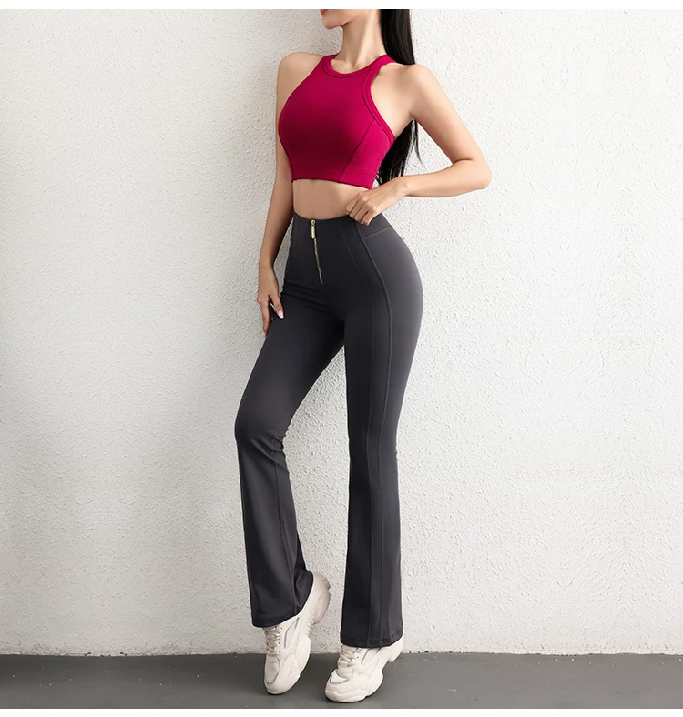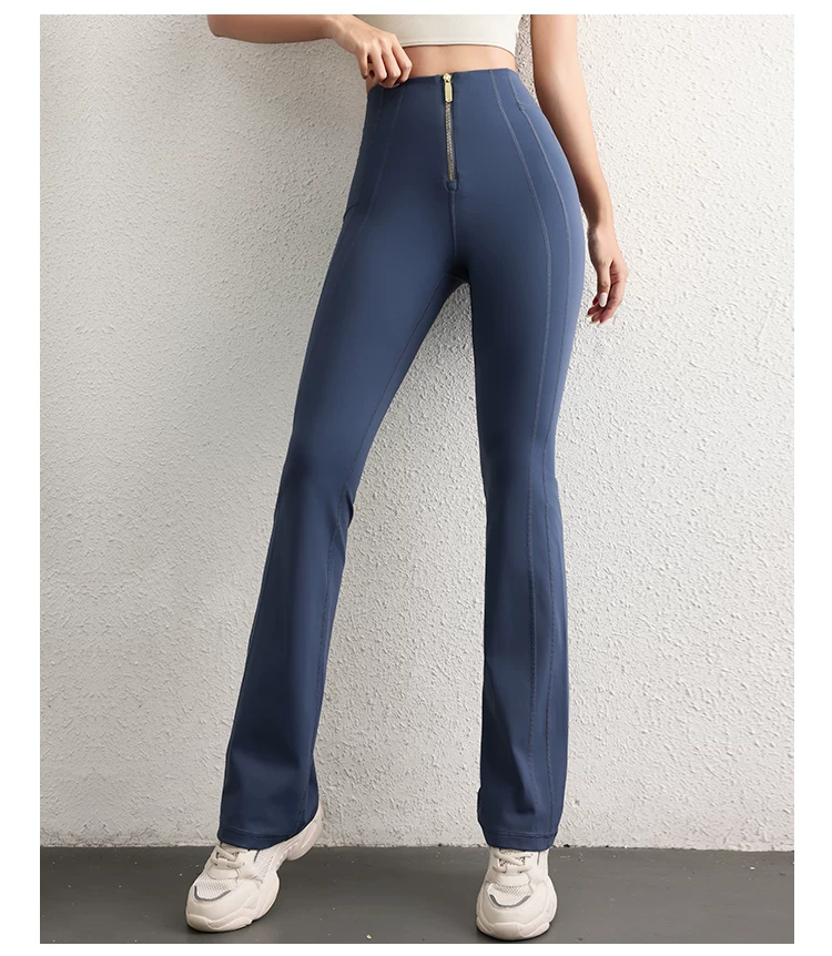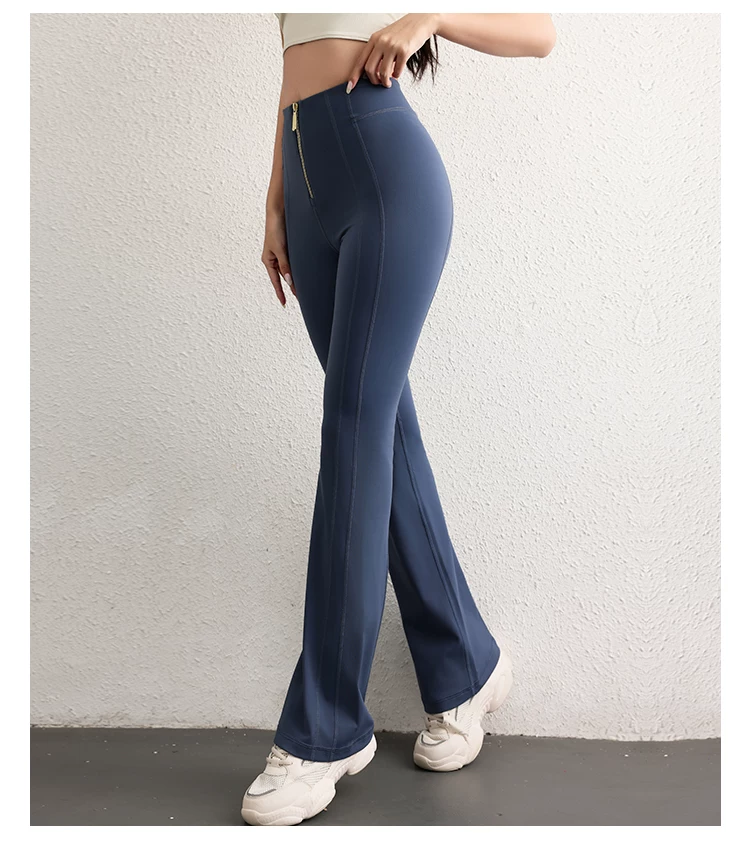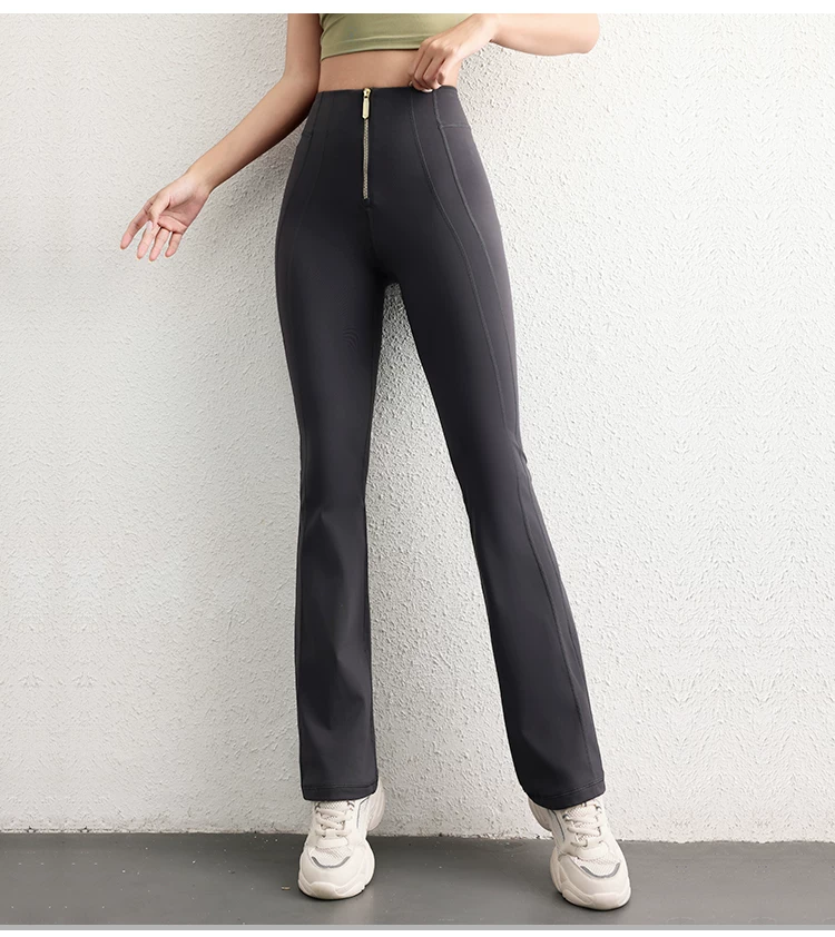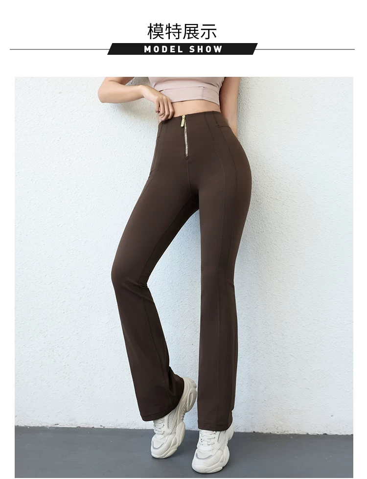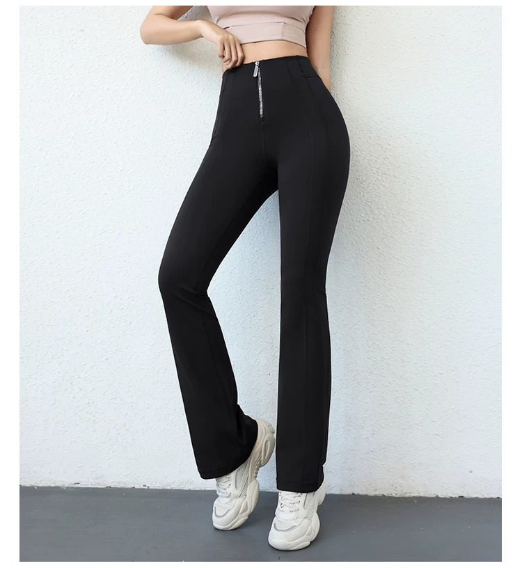 Quần ống loe có khóa kéo bằng lông cừu ấm áp cao cấp Jiumai Quần tập yoga thể thao dành cho nữ Xuân Thu Quần cạp cao nâng mông nâng mông Quần cá mập