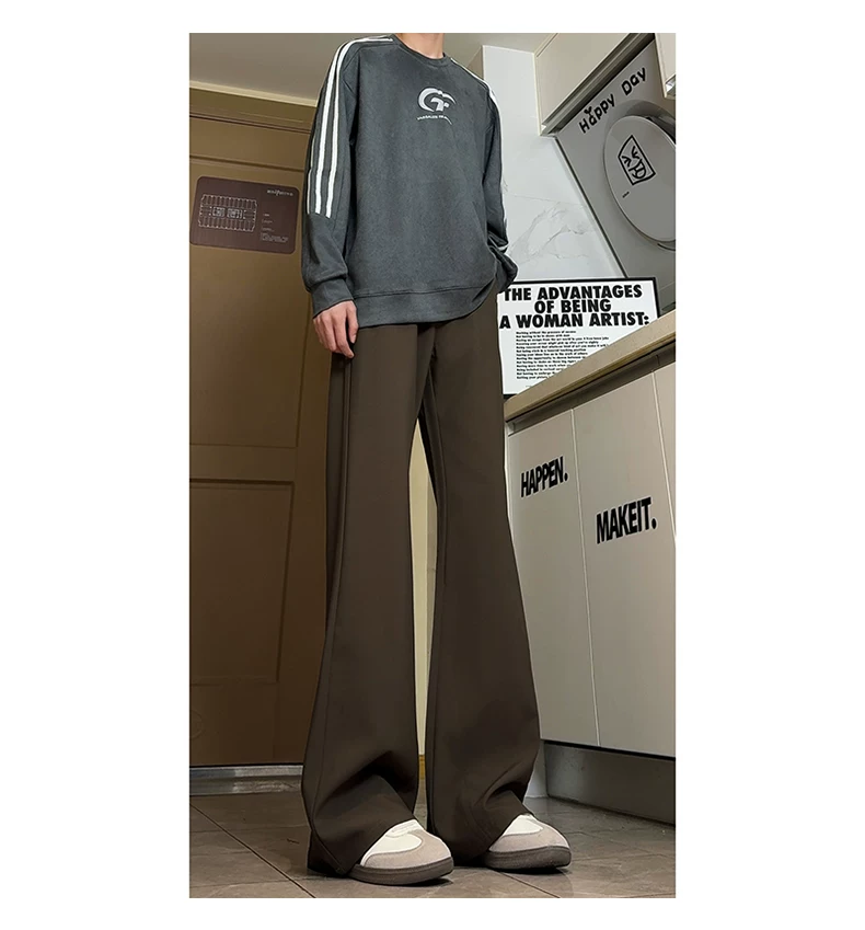 Quần ống loe kiểu Mỹ mùa thu dành cho nam, quần âu cao cấp dáng suông, quần tây ống đứng thời thượng cá tính.