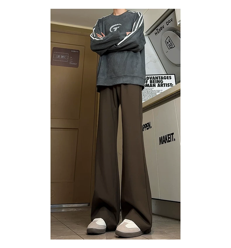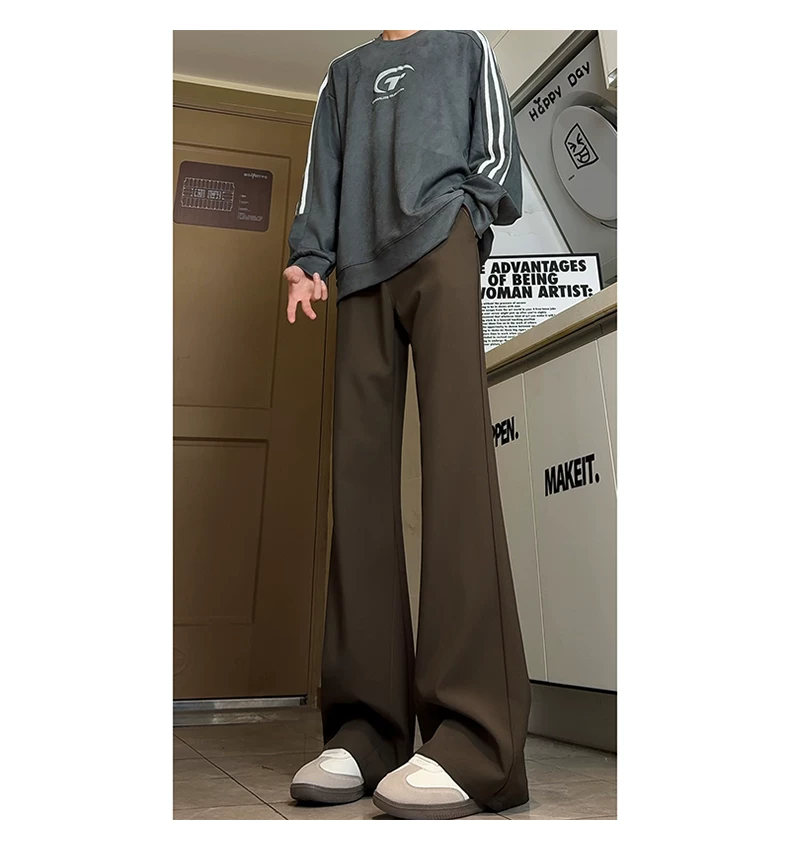 - Quần ống loe kiểu Mỹ mùa thu dành cho nam, quần âu cao cấp dáng suông, quần tây ống đứng thời thượng cá tính.