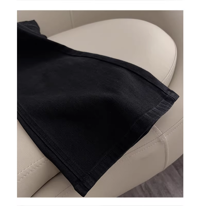 Quần ống loe lưng cao màu đen dành cho trẻ em dành cho bé gái, lót lông cừu, dày dặn, giảm béo, quần dài dáng suông, quần ống loe mùa đông