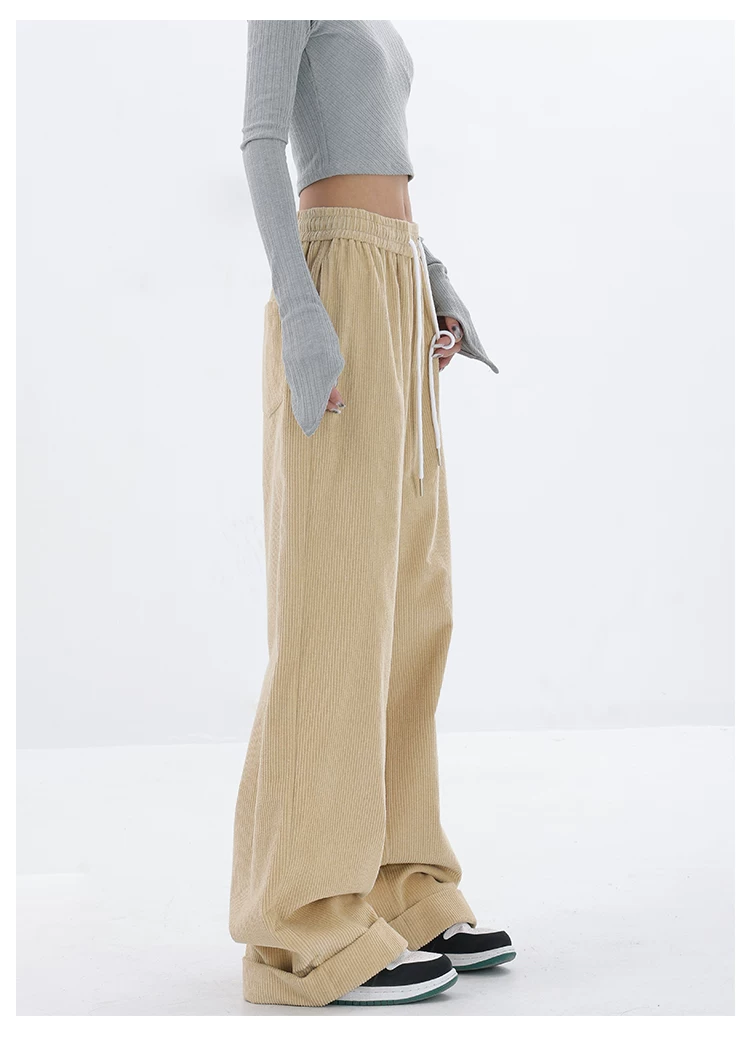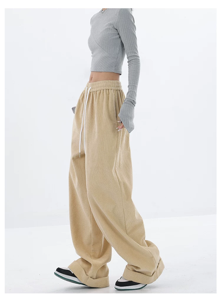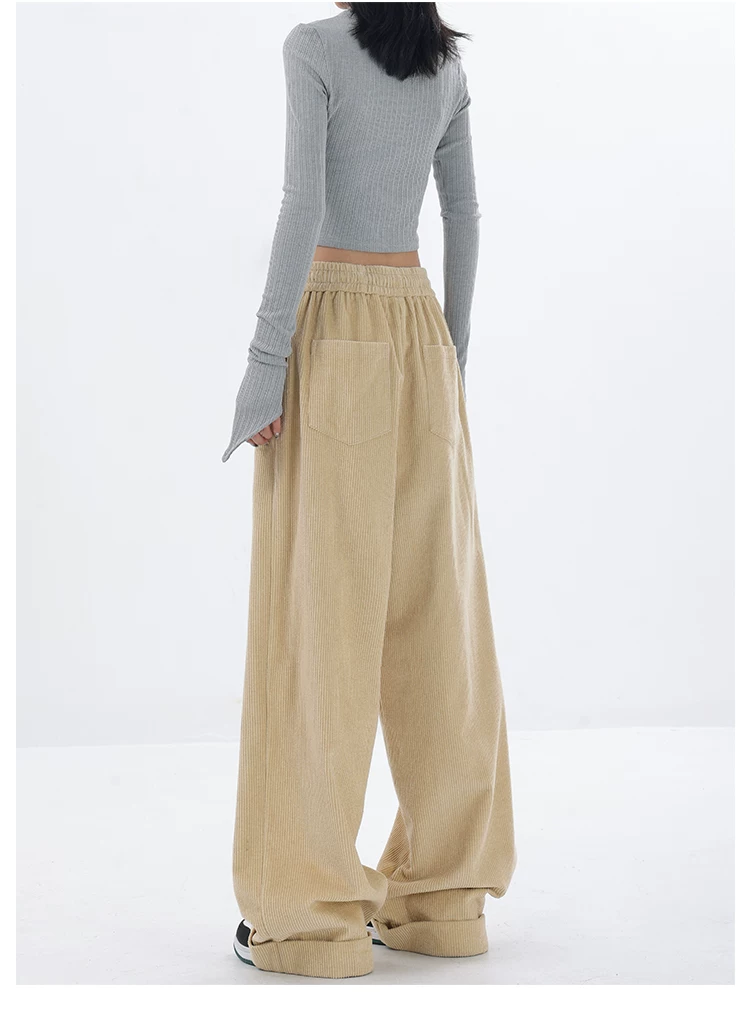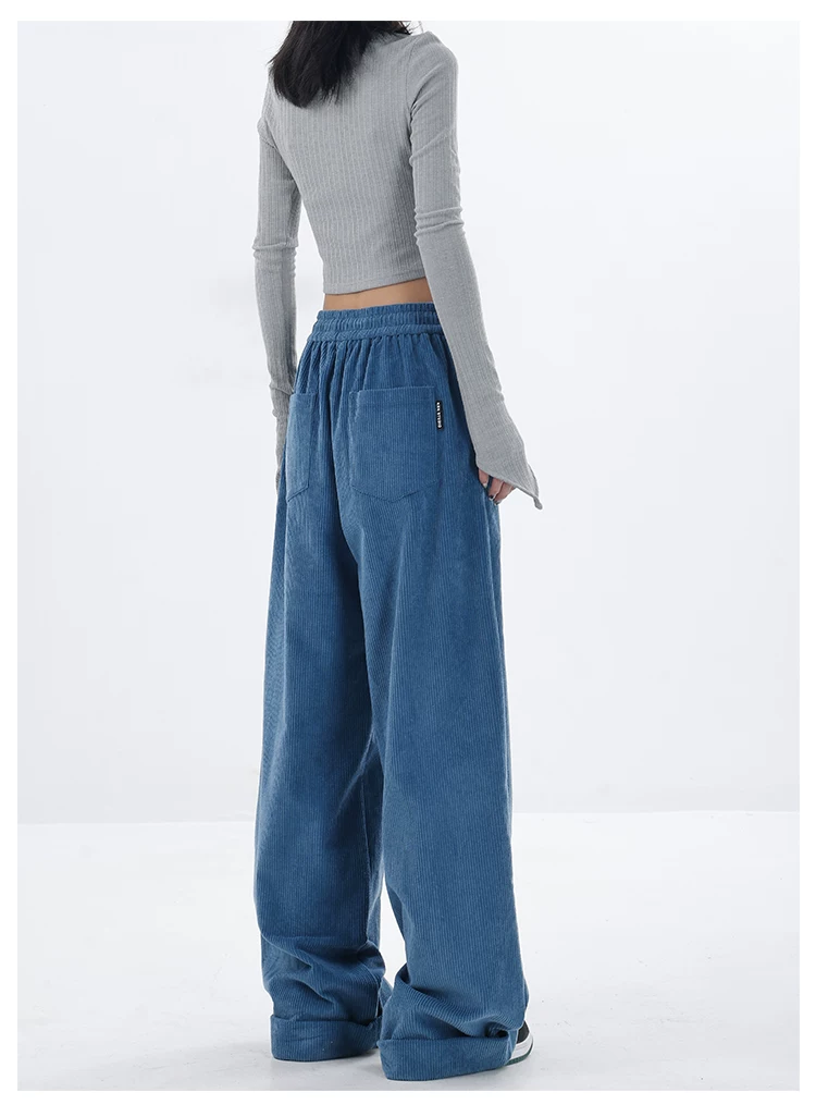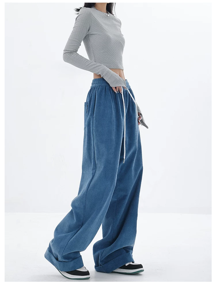 - Quần ống rộng bằng vải nhung KEN STUDIO dành cho nữ, quần thường ngày mùa đông mới, quần dài ống thẳng đa năng, dáng rộng.