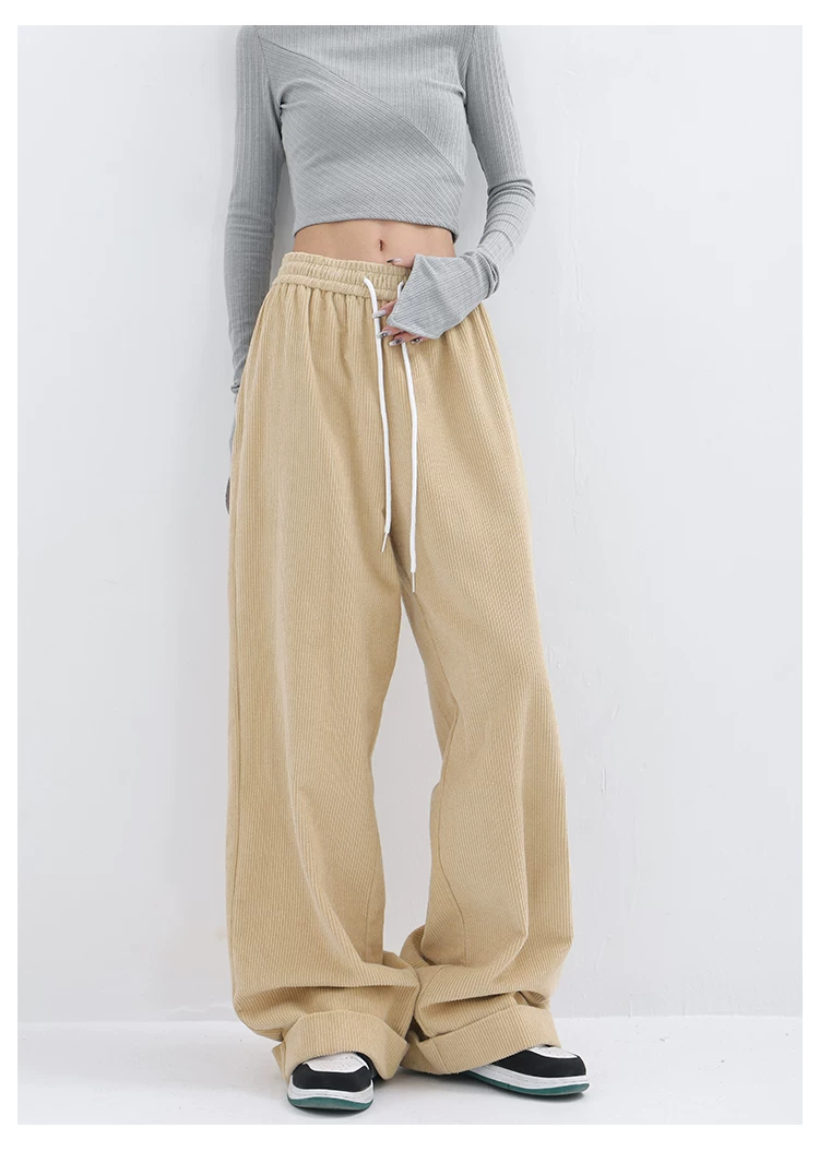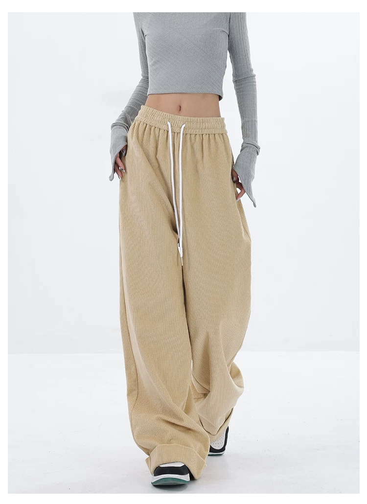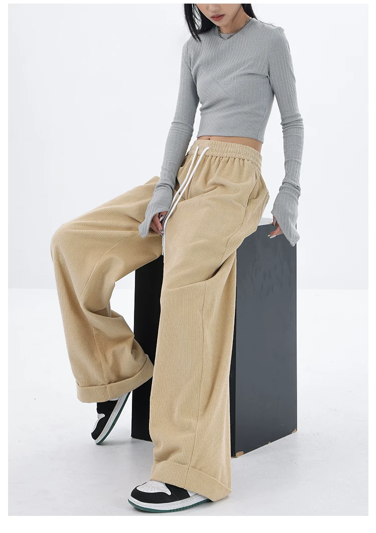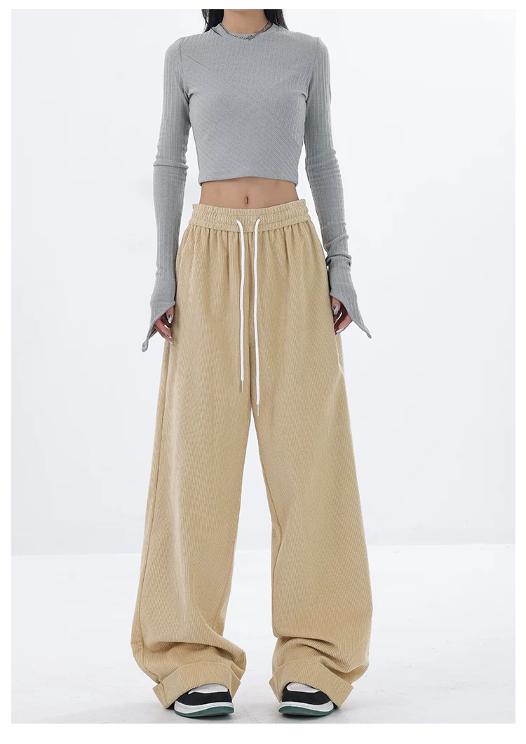 - Quần ống rộng bằng vải nhung KEN STUDIO dành cho nữ, quần thường ngày mùa đông mới, quần dài ống thẳng đa năng, dáng rộng.