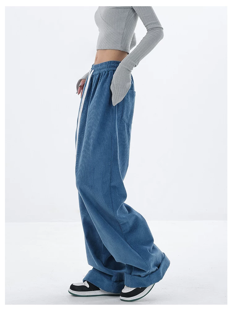 Quần ống rộng bằng vải nhung KEN STUDIO dành cho nữ, quần thường ngày mùa đông mới, quần dài ống thẳng đa năng, dáng rộng.