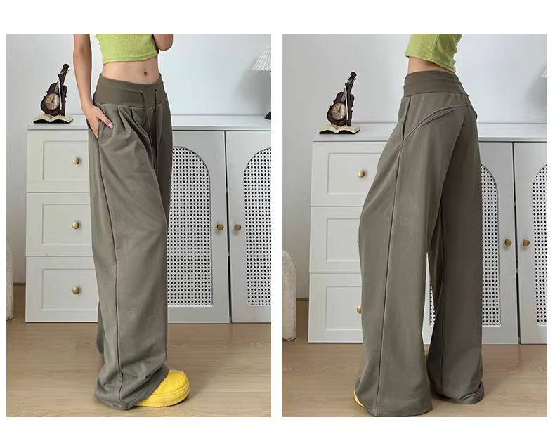 Quần ống rộng cạp cao màu xanh hải quân phong cách BF lười biếng dành cho nữ, cỡ lớn mùa thu, dáng rộng, quần thể thao giảm béo