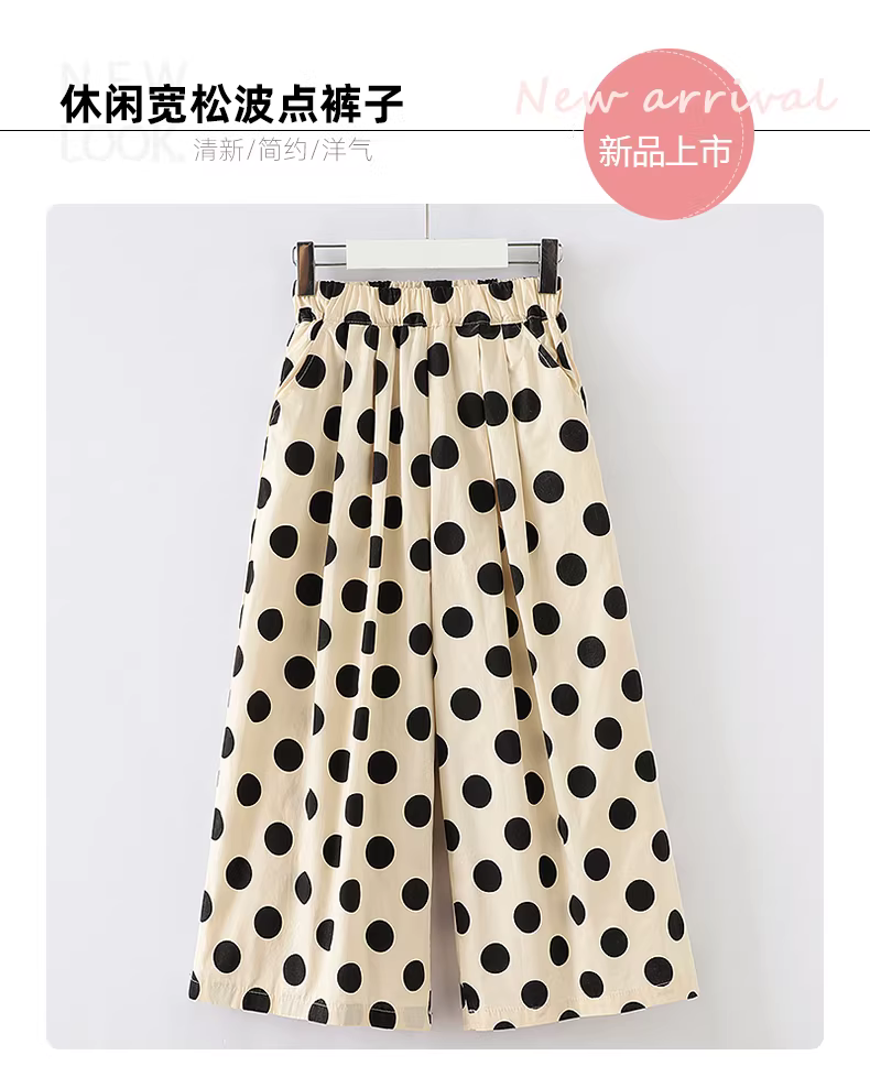 - Quần ống rộng chấm bi mùa hè cho bé gái, quần trẻ em mỏng nhẹ, quần suông kiểu mới hè 2025 cho bé gái