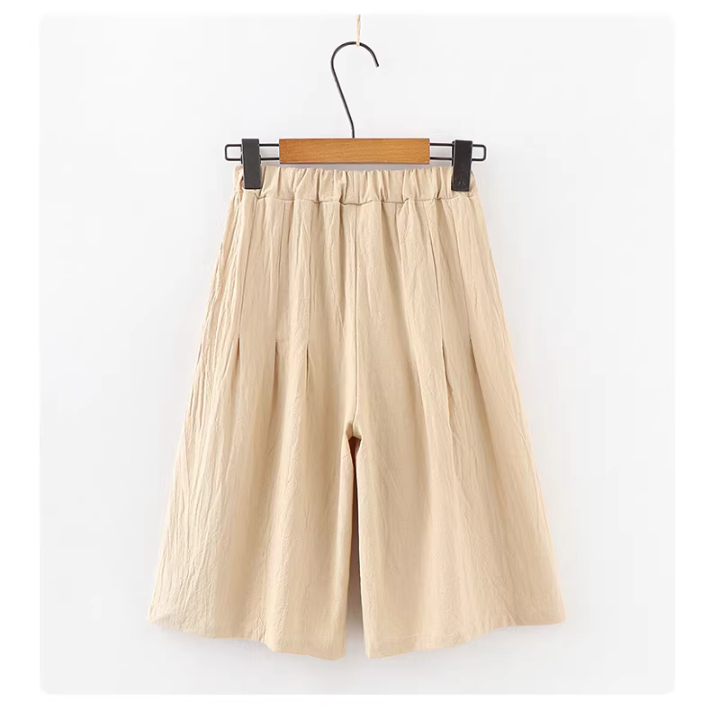 - Quần ống rộng cho bé gái, quần capri dáng rộng thông thường dành cho trẻ em, chất liệu cotton và vải lanh, dành cho bé gái mũm mĩm, quần váy trẻ em cỡ vừa đến lớn, quần short mùa hè