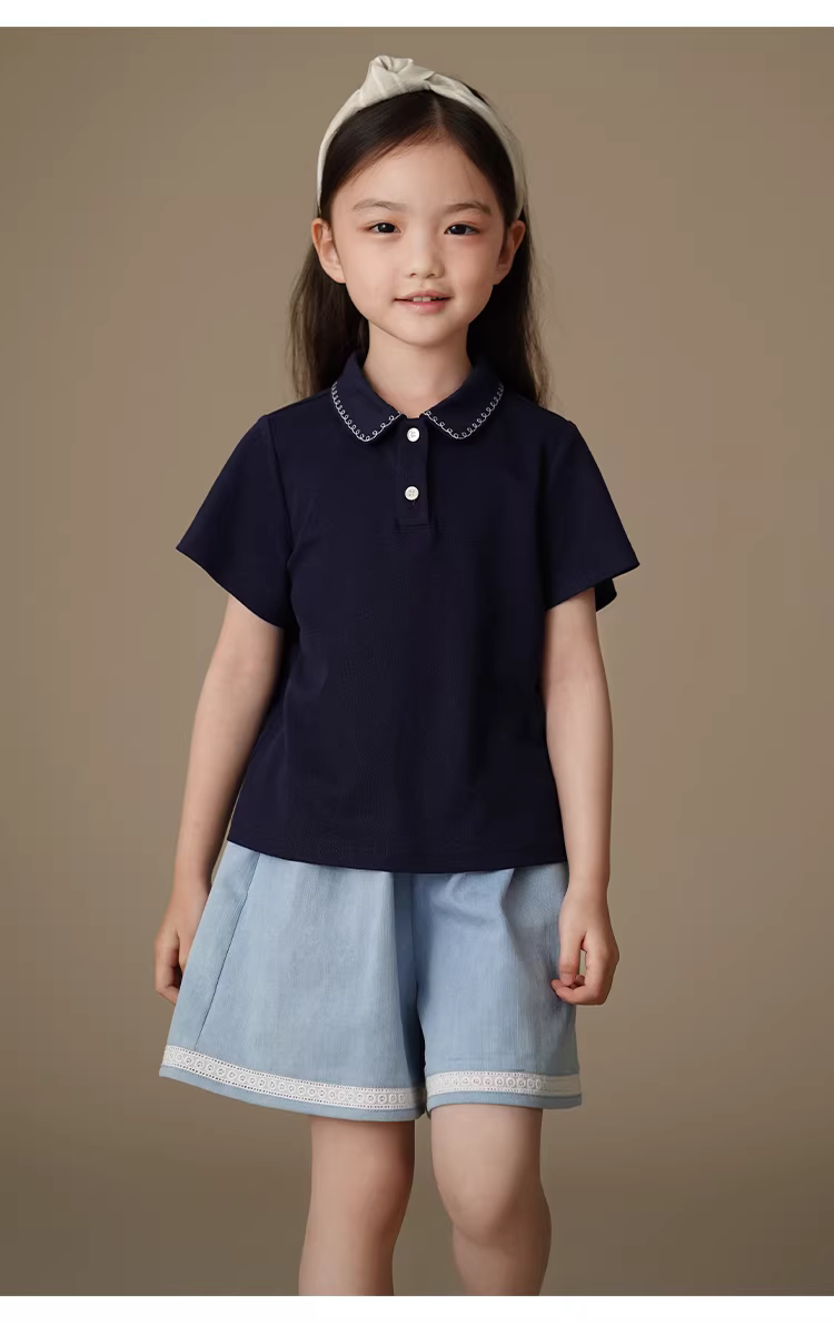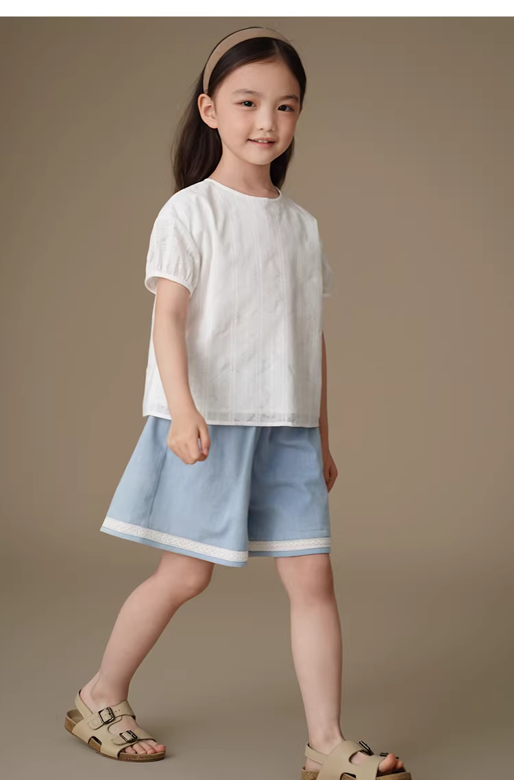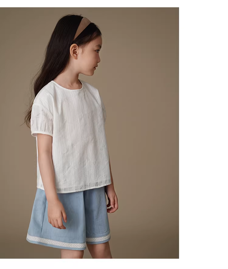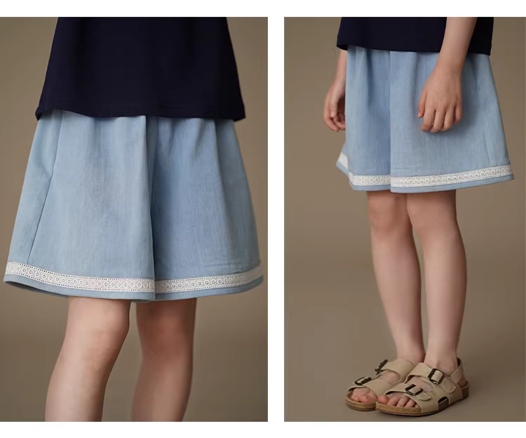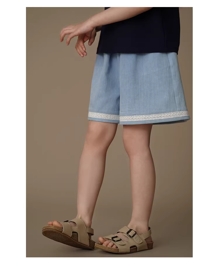 - Quần ống rộng mùa hè cho bé gái, quần short denim viền ren, quần rộng rãi, thoải mái.