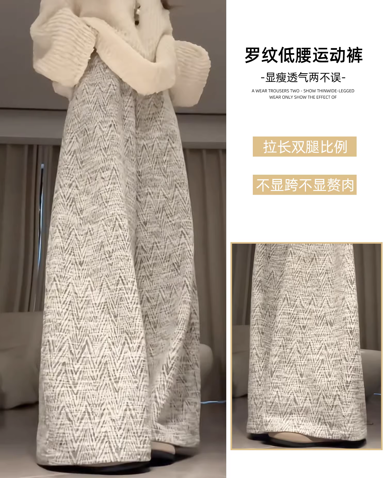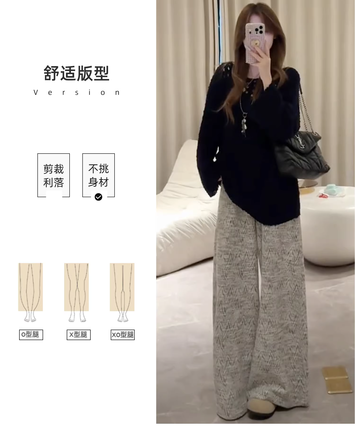 Quần ống rộng thông thường dành cho nữ theo phong cách Chanel lười biếng, bộ sưu tập mùa thu mới, cỡ lớn, lưng cao, dáng rộng, suôn mềm, quần ống đứng giúp thon gọn.