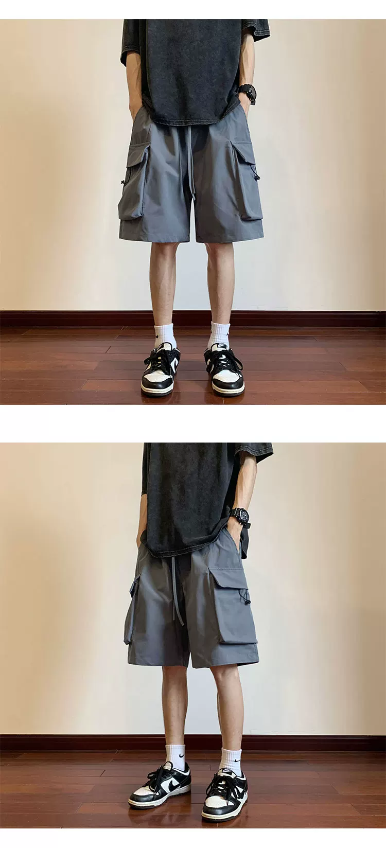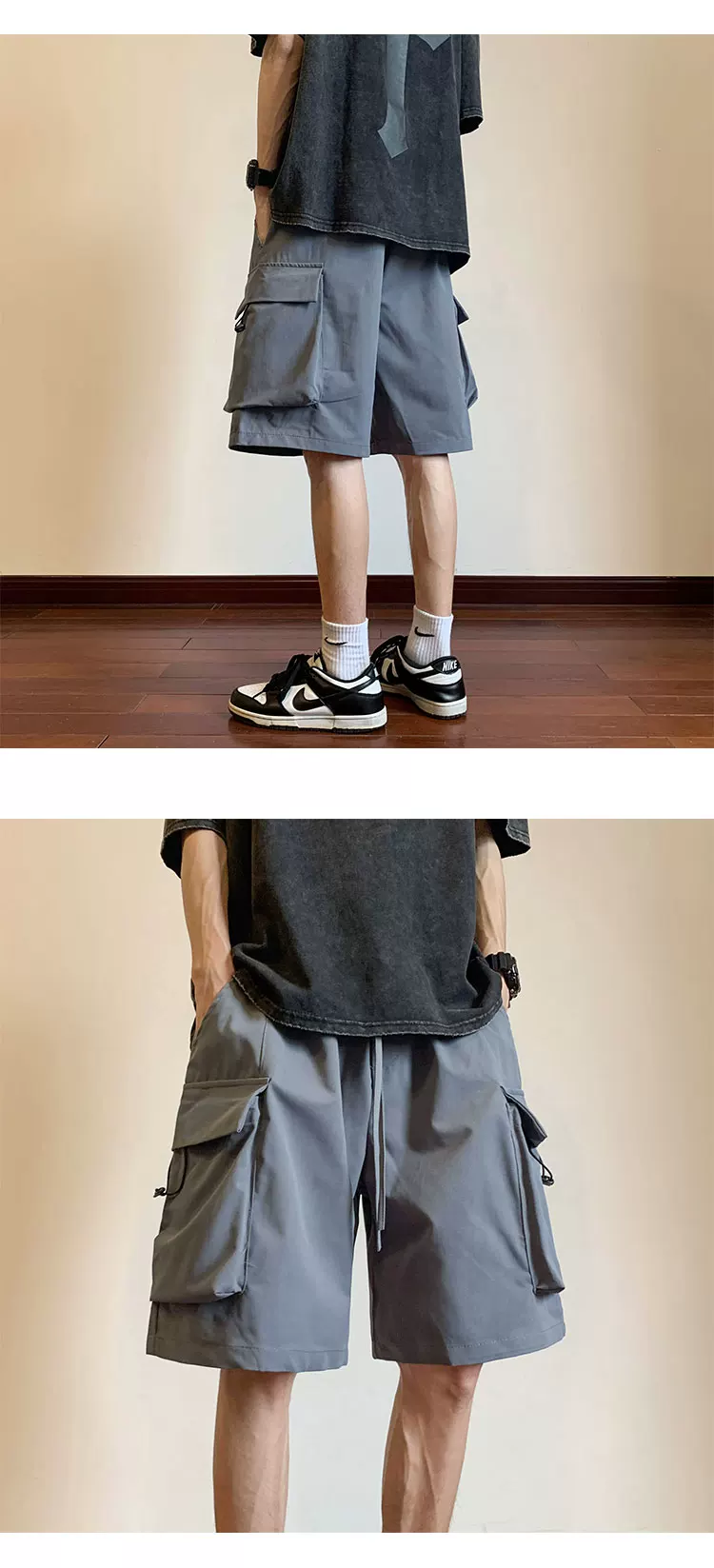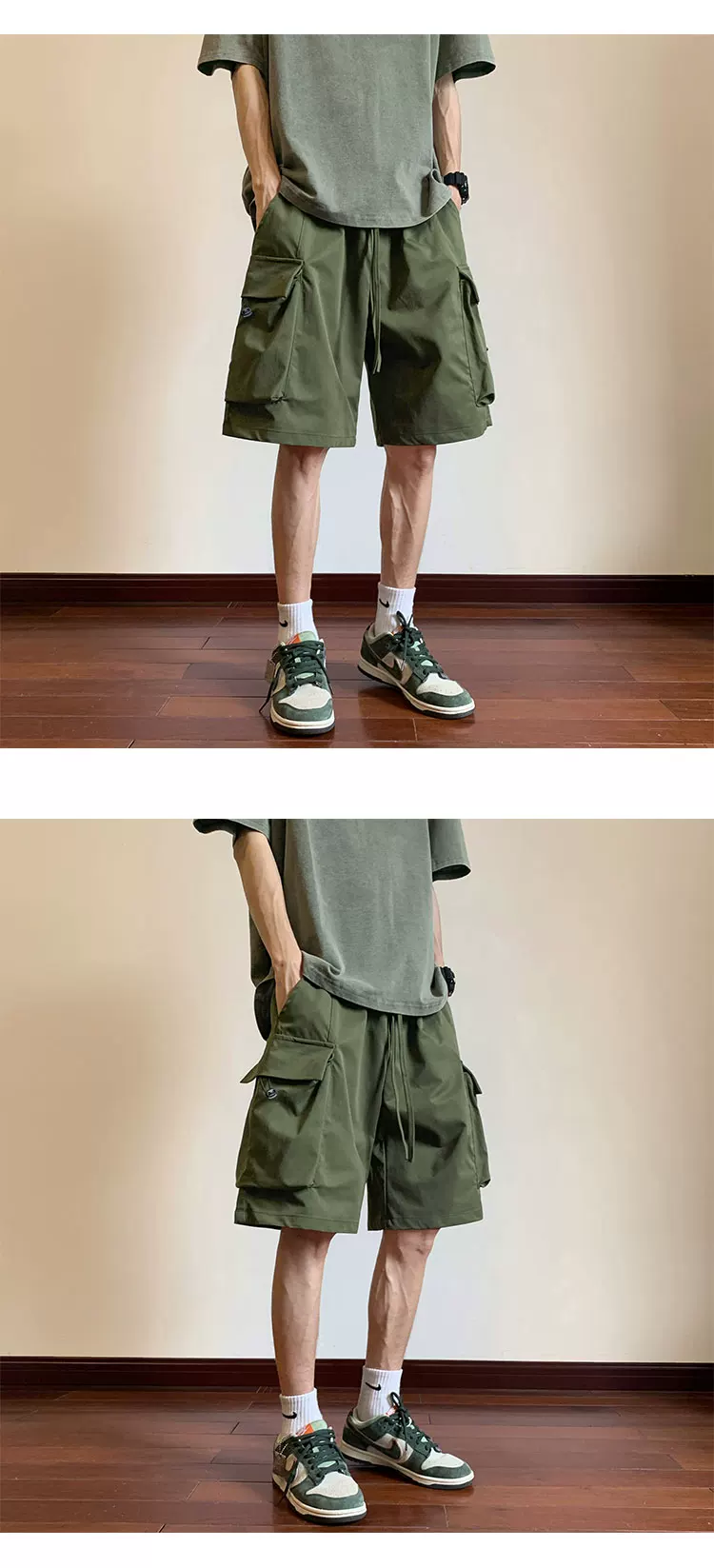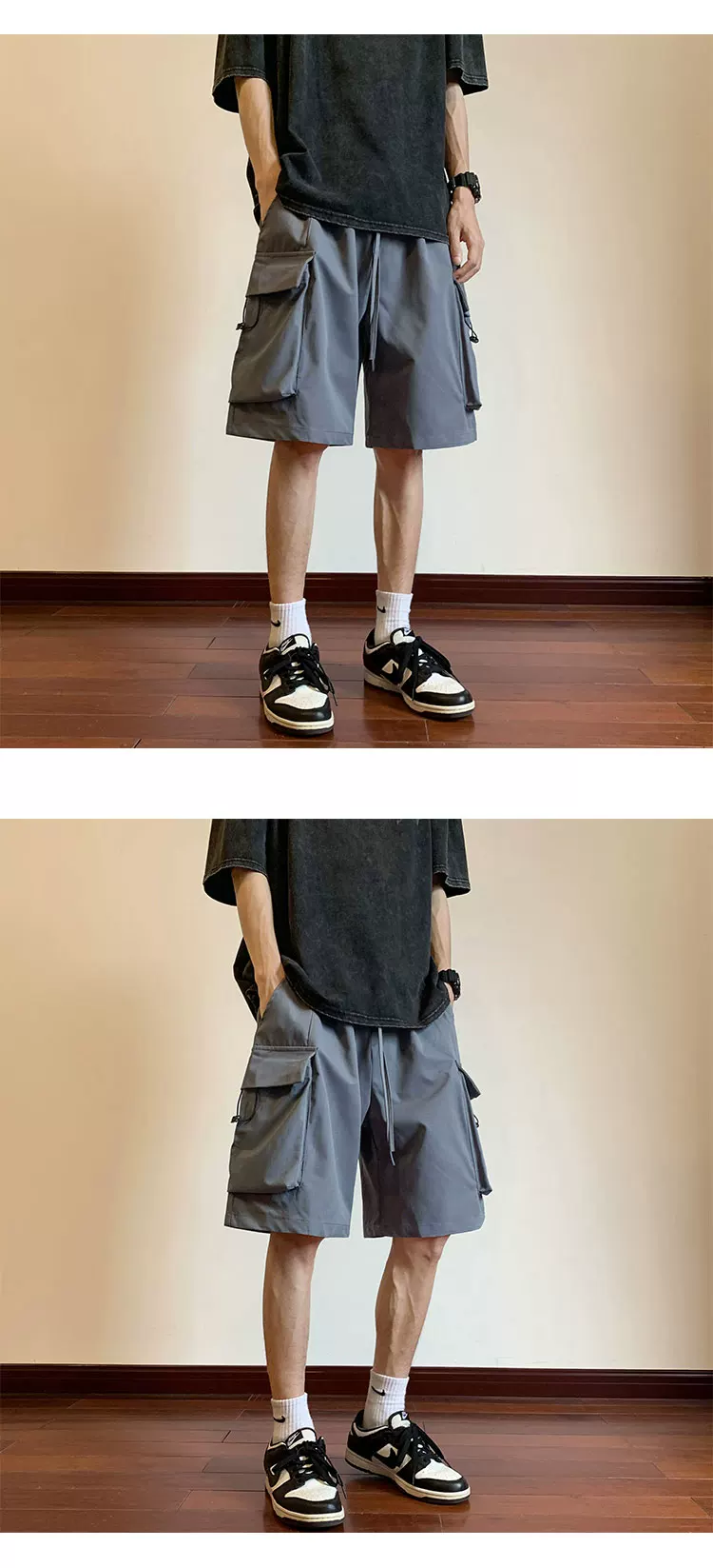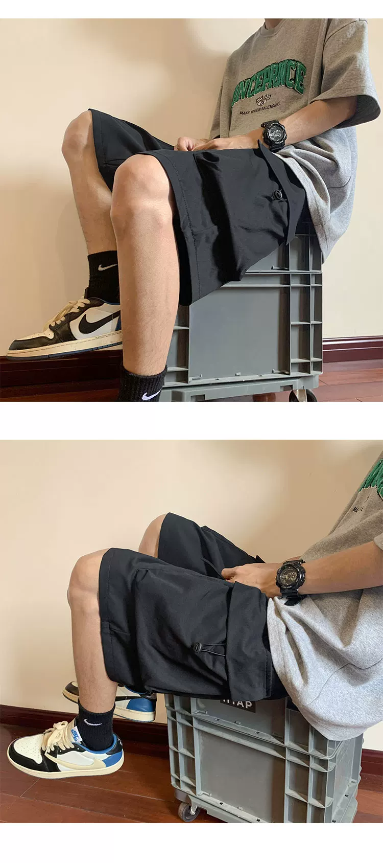 - Quần short công sở mỏng mùa hè dành cho nam, quần nhiều túi rộng rãi, phong cách BF thời thượng, quần short năm điểm kiểu Mỹ phong cách Hồng Kông.