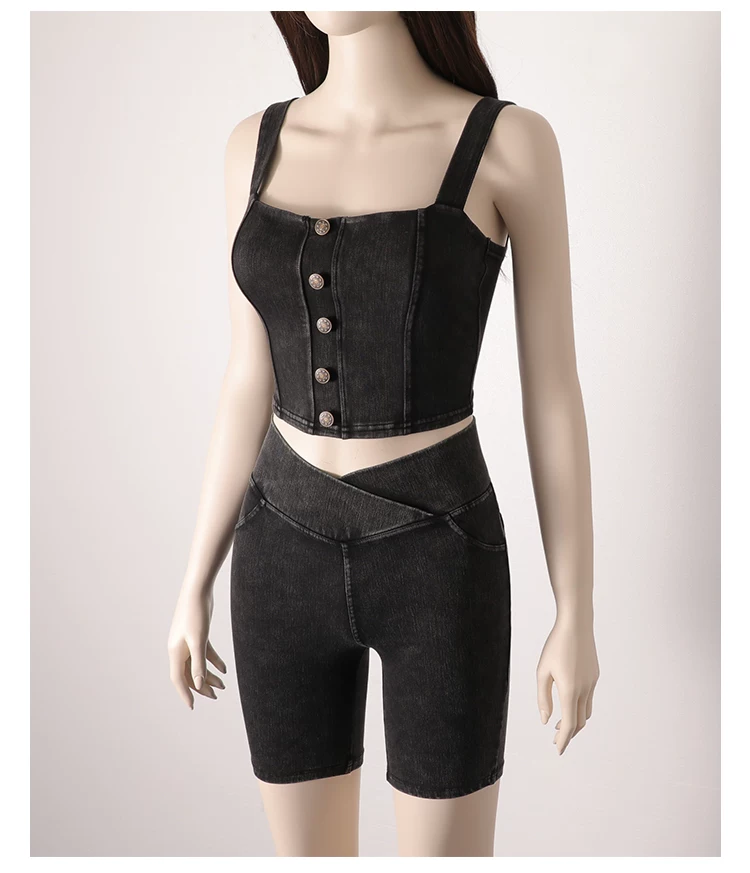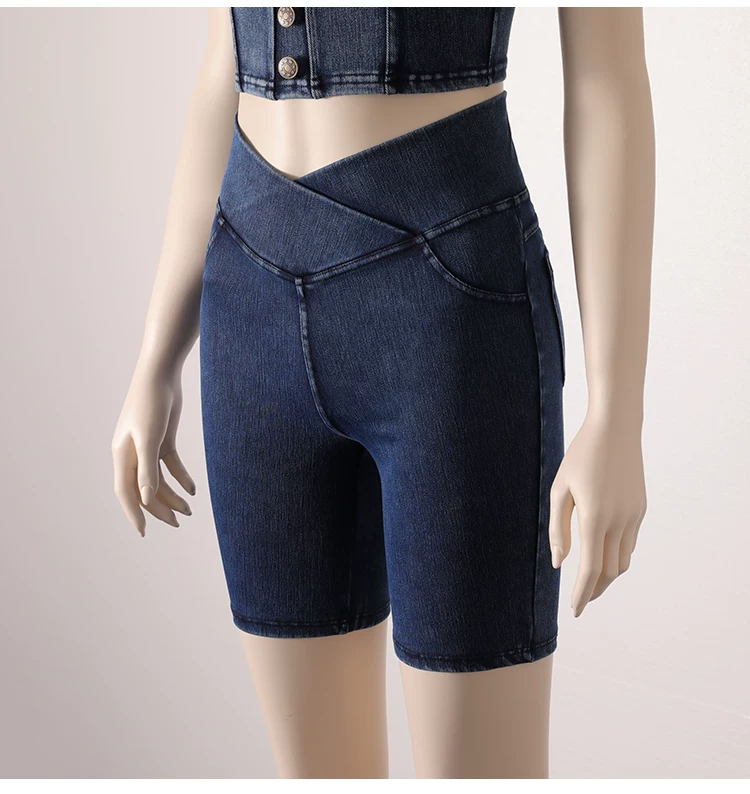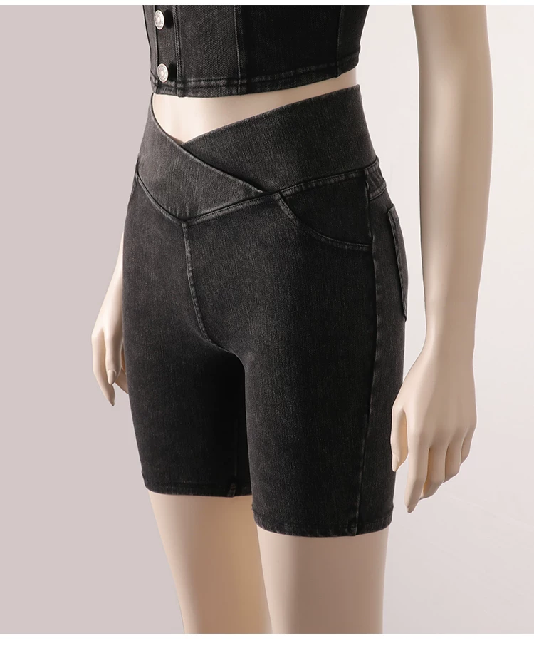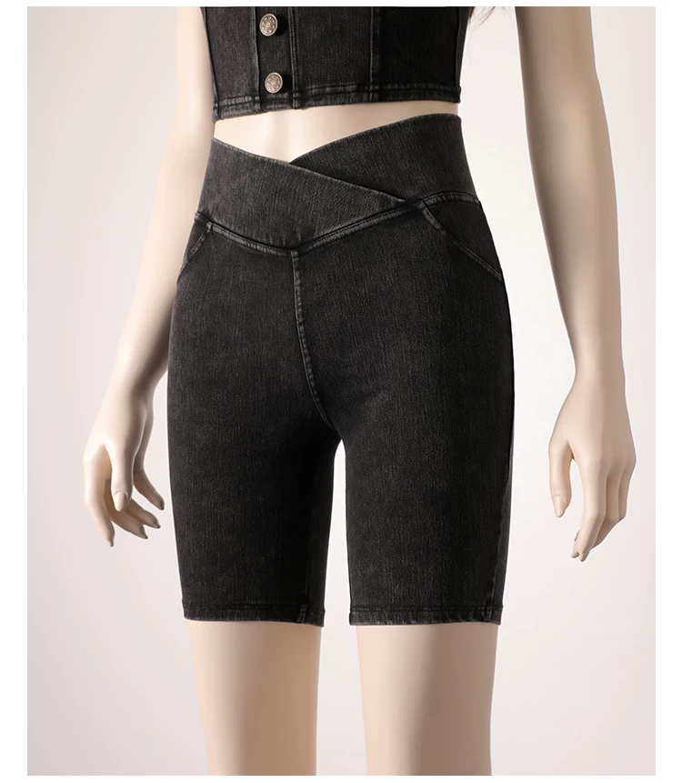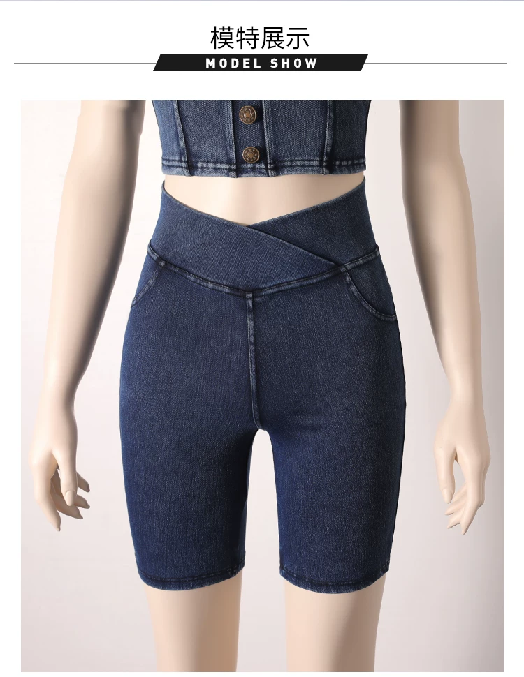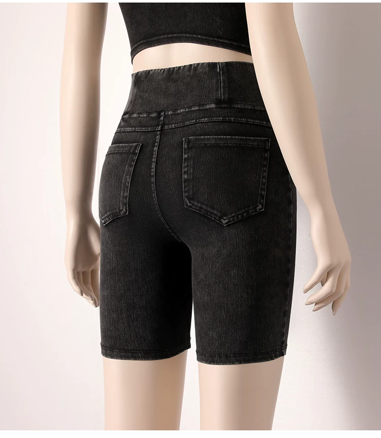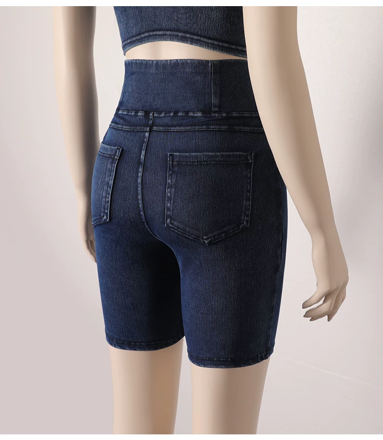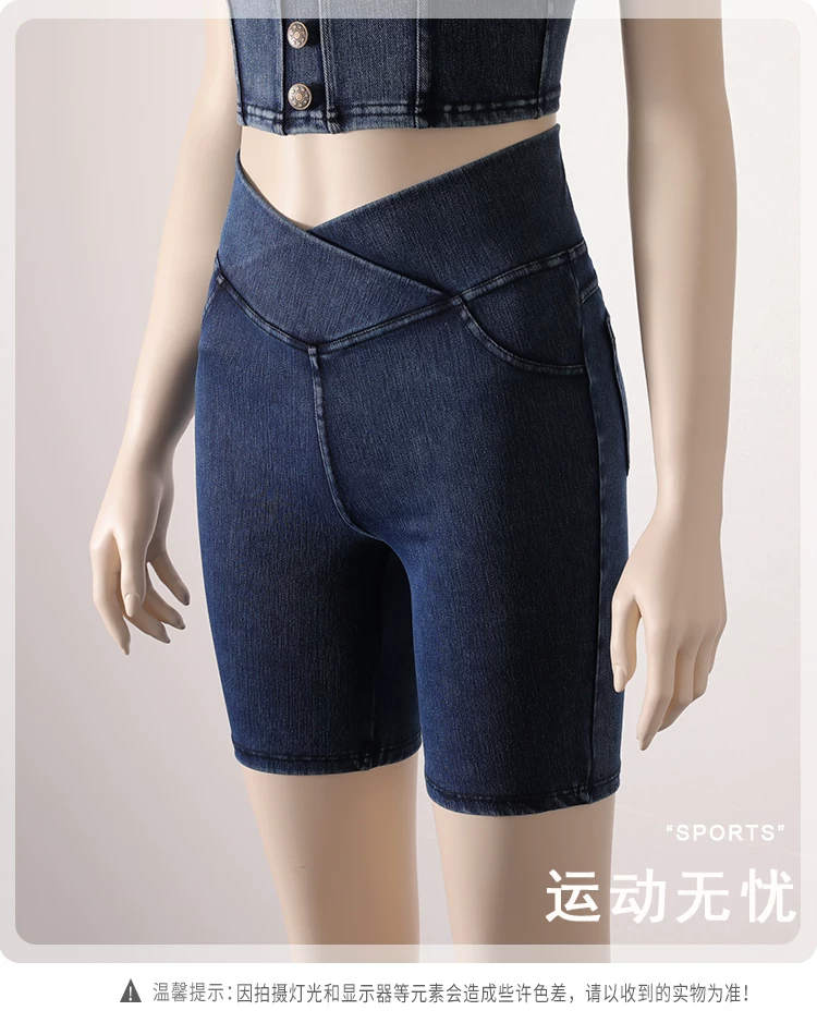 - Quần short denim cạp cao cho nữ, kiểu dáng mỏng mùa hè, mẫu mới 2026, ôm dáng, co giãn, tôn dáng, có túi, quần short đạp xe năm điểm.