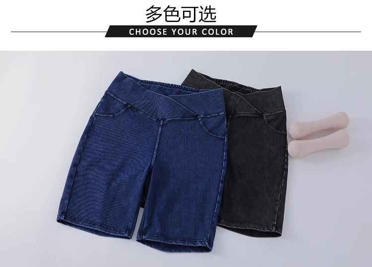 Quần short denim cạp cao cho nữ, kiểu dáng mỏng mùa hè, mẫu mới 2026, ôm dáng, co giãn, tôn dáng, có túi, quần short đạp xe năm điểm.