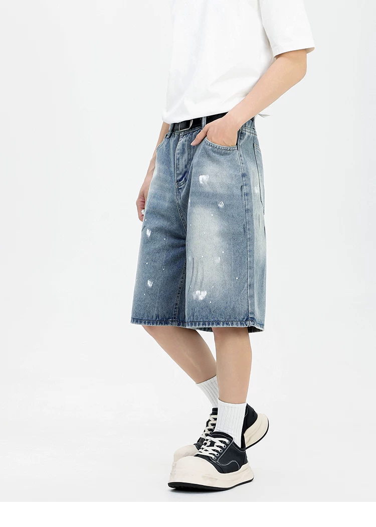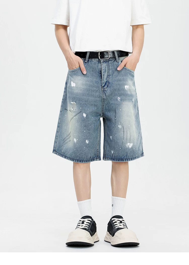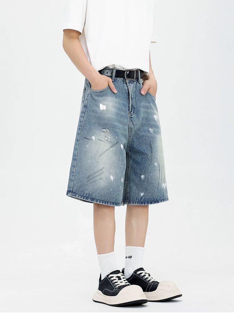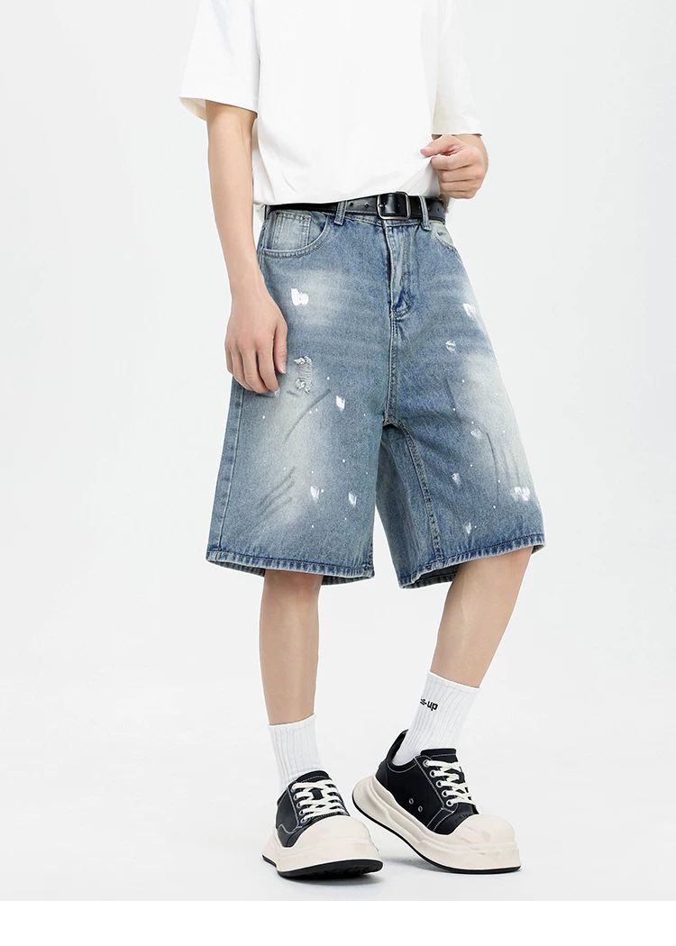 - Quần short denim kiểu Mỹ dành cho nam, quần ống rộng thoải mái hợp thời trang, quần ống đứng rách cá tính mùa hè.
