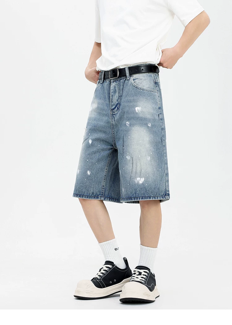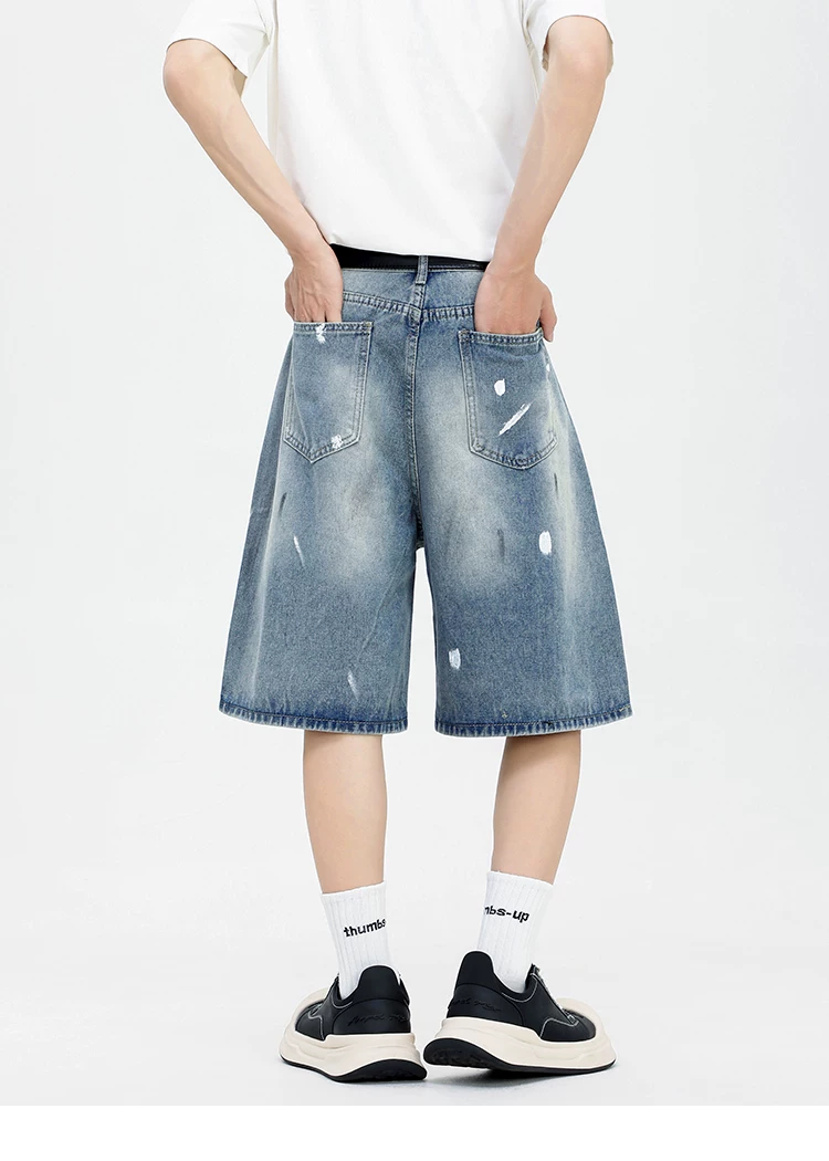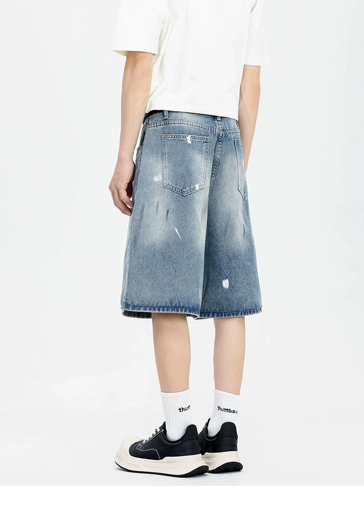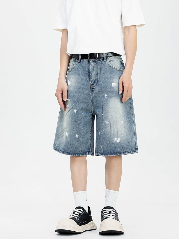 - Quần short denim kiểu Mỹ dành cho nam, quần ống rộng thoải mái hợp thời trang, quần ống đứng rách cá tính mùa hè.