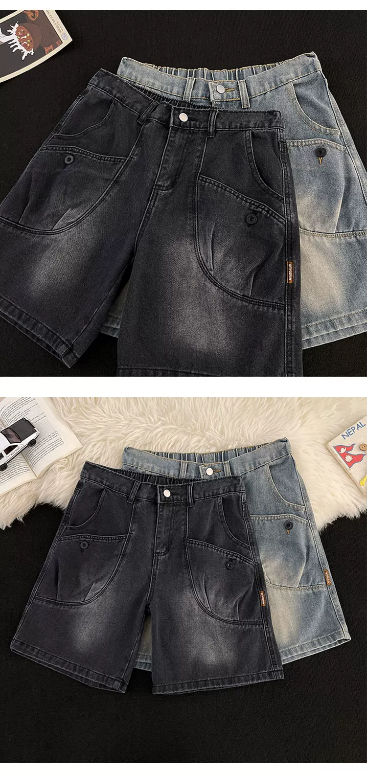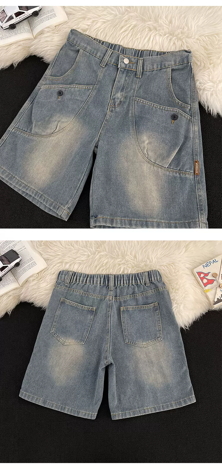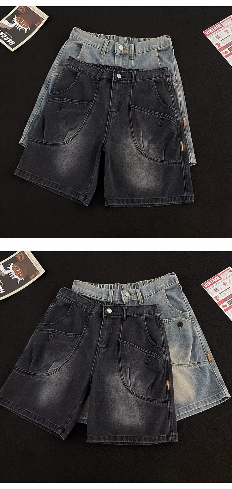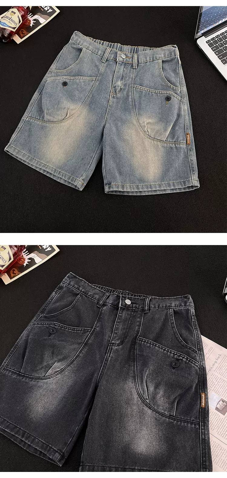 - Quần short denim ống đứng phong cách Mỹ cổ điển mới dành cho nam mùa hè, thiết kế có túi, quần short dài vừa phải hợp thời trang.